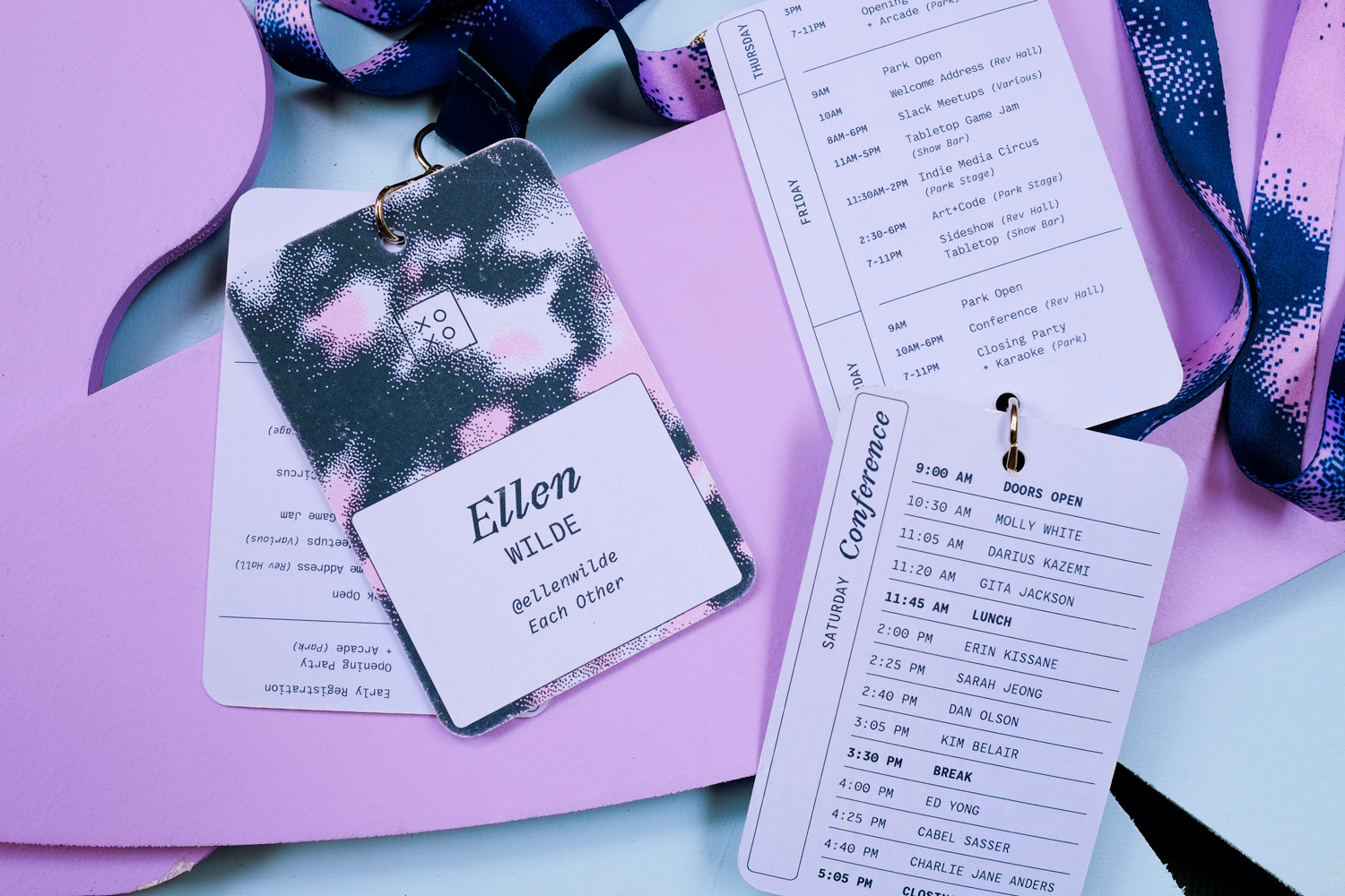 XOXO is an experimental festival for independent artists who live and work online. A robust and enthusiastic community has formed around the festival since it was first held in 2012. After a few years off, founders Andy Baio and Andy McMillan decided to hold one last XOXO. For this final year, Each Other created a visual identity to send them off, centered around the impressions it leaves behind, and the beauty of the community that has grown from it.