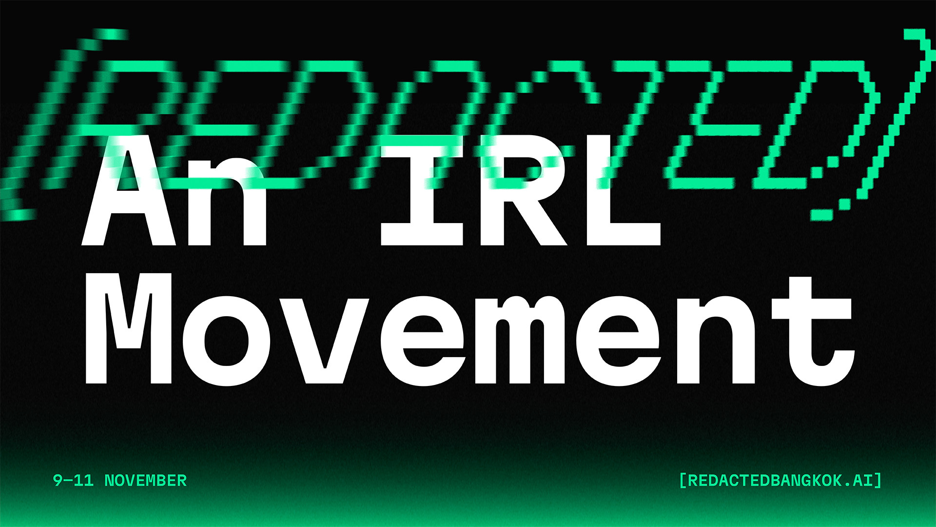 A galvanising force in the world of Web3, [REDACTED] is a movement responding to the increasing centralisation and monopolisation of technology by Big Tech corporations. Taking place online and IRL in Bangkok, Thailand, the event’s goal is multifaceted: to foster collaboration, drive innovation, and empower communities to shape a decentralised future. […] Their look […] embraces the nostalgia and activist spirit of the dark-mode lo-fi aesthetic. “It was about leaning into the passions of the real core Web3 and AI innovator audience,” notes Executive Creative Director Tom Munckton. “We exploit the joy of tech from different eras; 8-bit simplicity to Y2K clunkiness. All mixed with a glitchy, dystopian veneer to compel interest and action.” And, of course, how could you not include an homage to the iconic ‘Hacker Green’ colour?
