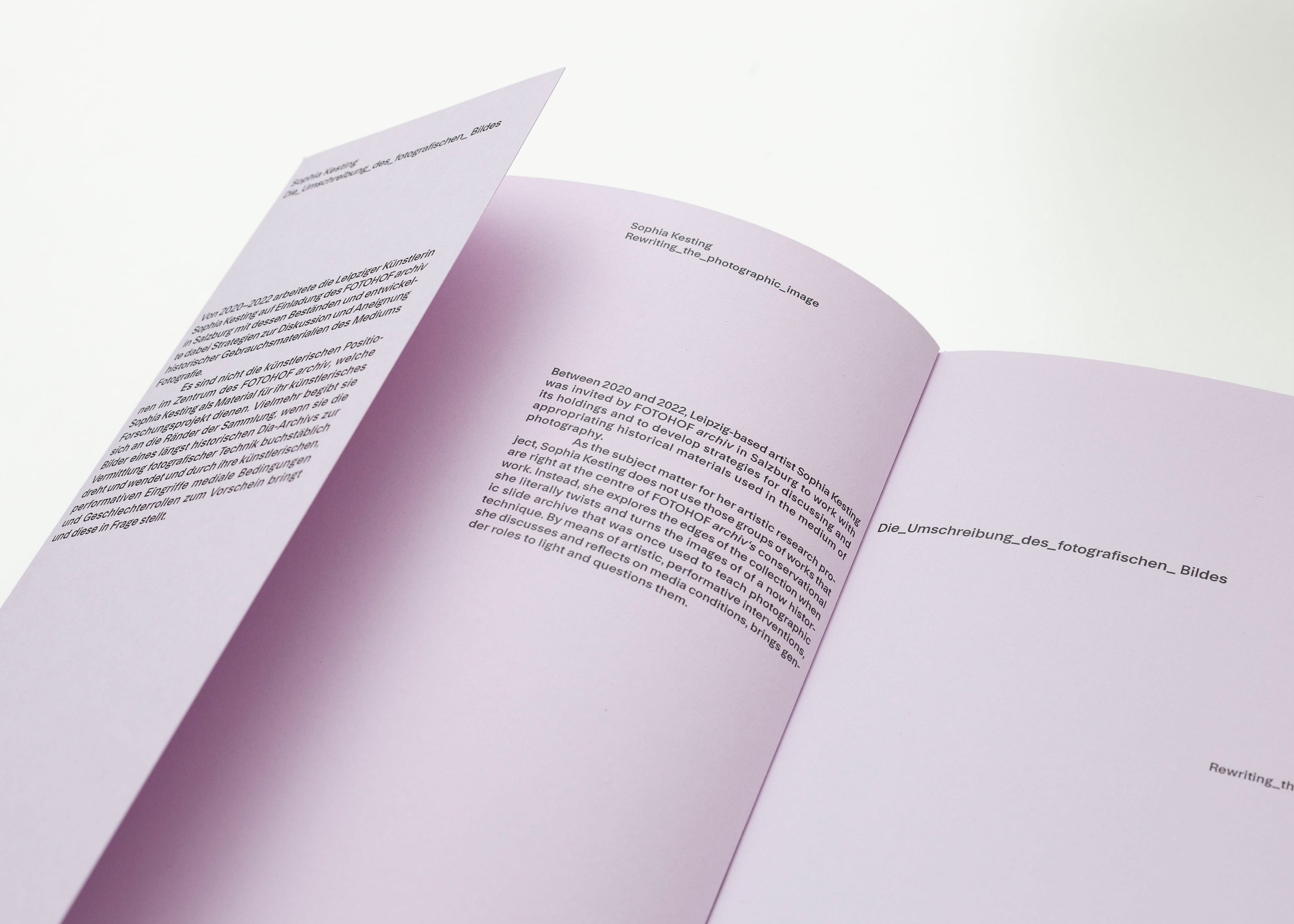 Between 2020 and 2022, Leipzig-based artist Sophia Kesting was invited by FOTOHOF archiv to work with its holdings and to develop strategies for discussing and appropriating historical materials used in the medium of photography.