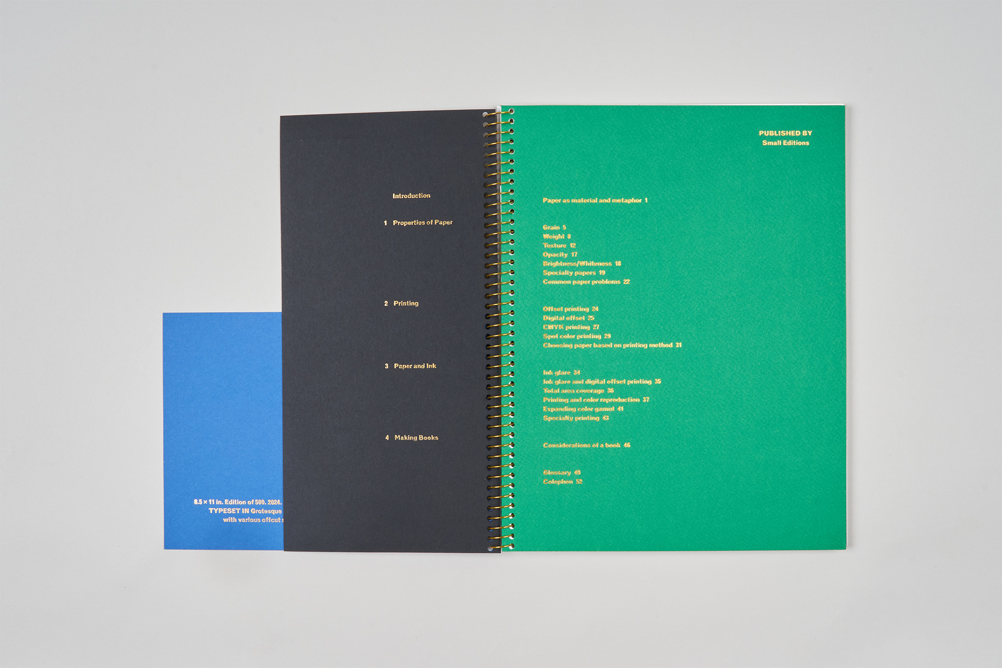 The entire edition is printed, collated, and bound by hand. Each book contains different swatches, meaning each book is unique and imperfect by nature.