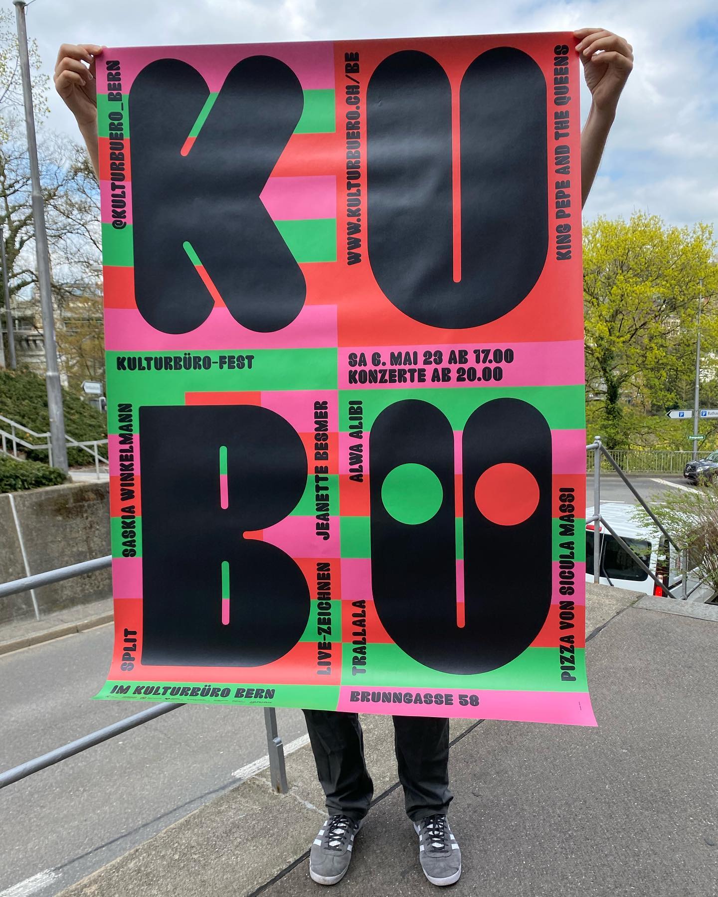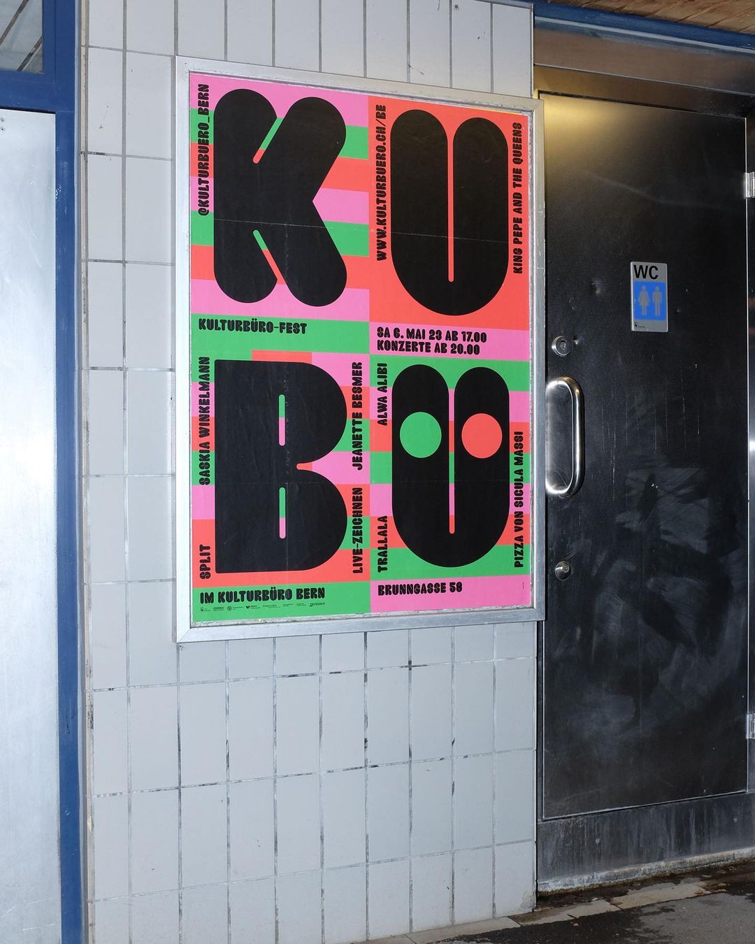 Tobias Bolliger designed this F4 poster announcing the open door event of Kulturbüro Bern a.k.a. KuBü (in English: “Cultural Office”) using Crack for all information.