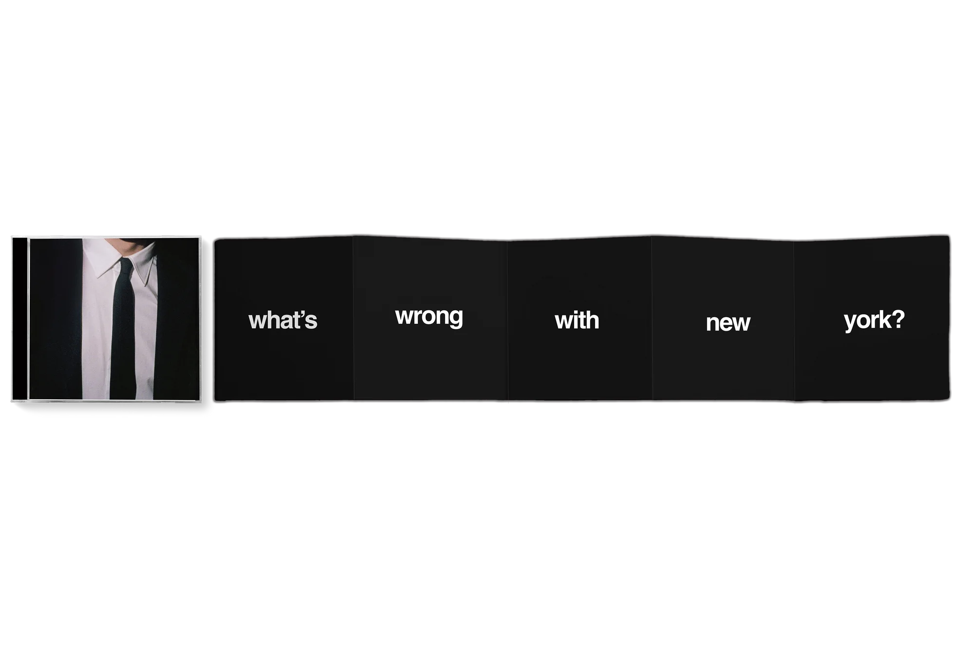 On September 6, 2024, The Dare released his debut album, What’s Wrong with New York? Branding for the website and album rollout materials, including the CD insert and vinyl cover, showcase a consistent use of Helvetica set in bold lowercase and in black and white.