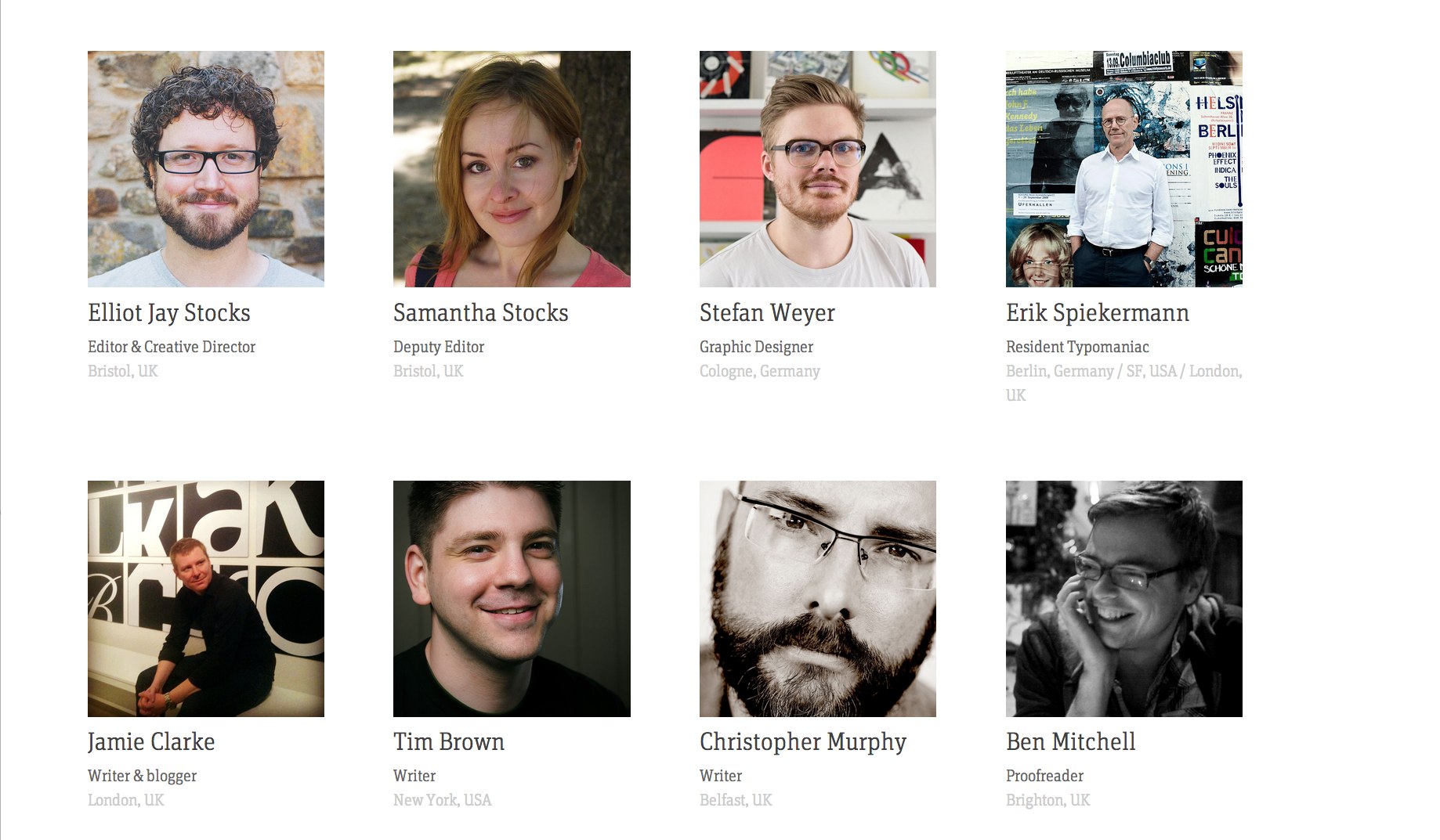 8 Faces was launched in 2010 by Elliot Jay Stocks, a UK based web designer and self-confessed type nerd. Since then it has grown steadily and has become a business in itself with an expanding list of contributors and a very active Tumblr community.