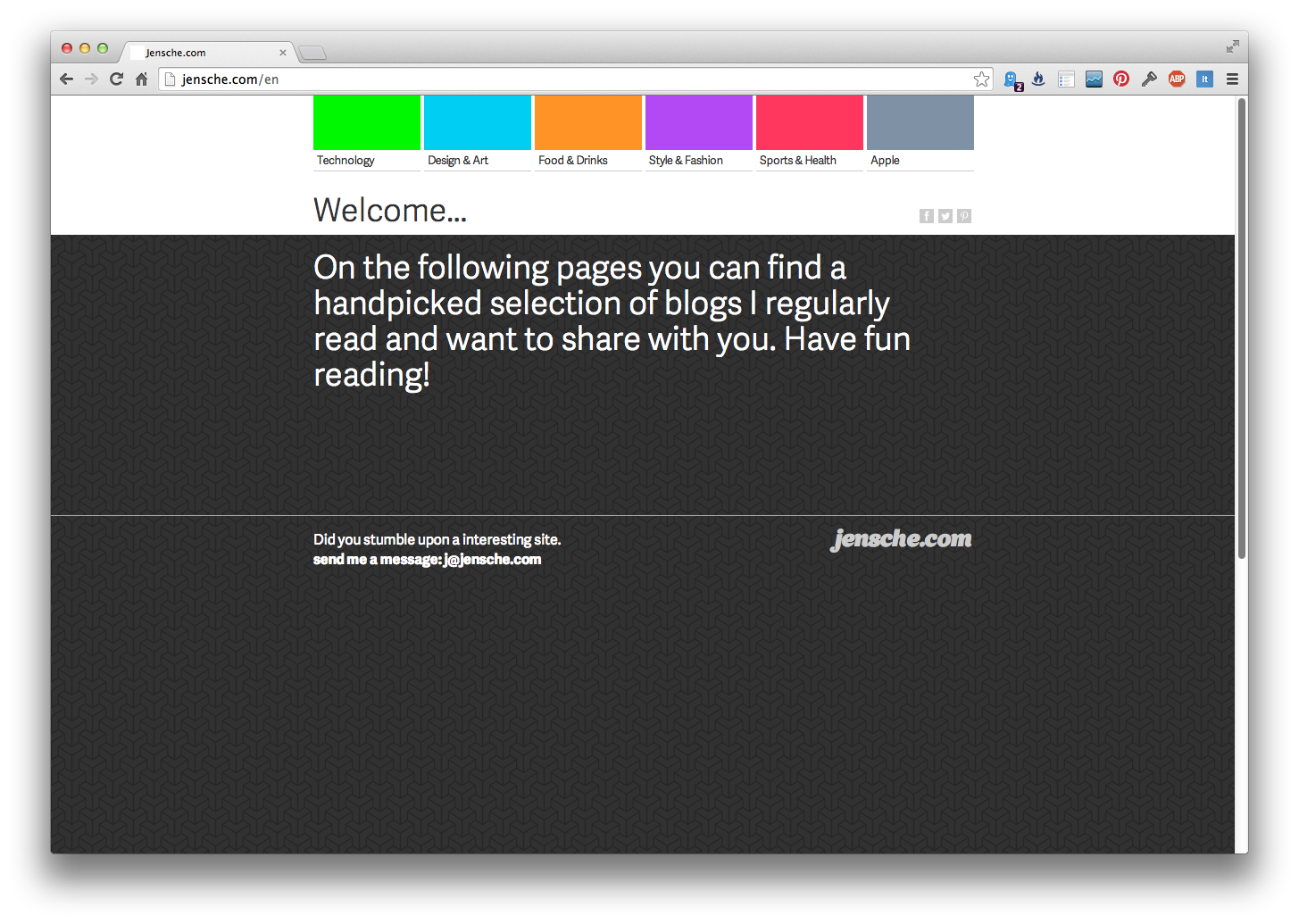 Jensche.com Contributed by Jens Riedweg on Apr 10th, 2014. Artwork published in 2014. Source: www.jensche.com © Jens Riedweg and the news source (RSS). License: All Rights Reserved. Source: www.jensche.com © Jens Riedweg and the news source (RSS). License: All Rights Reserved. Source: www.jensche.com © Jens Riedweg and the news source (RSS). License: All Rights Reserved. Typefaces More about Adelle SansGet Adelle Sans Formats Web (5570) Topics Social Media (266) Designers/Agencies Jens Riedweg (16) Tagged withblogs (121)RSS (1)personal websites (261)color coding (218)webfonts (449) Post a comment Name Email – will not be published Website Your response Submit Comment More Adelle Sans in use Řekni mi, kdo jsi! by Eva Kantůrková2012Jana VahalíkováStudio MarvilContributed by TypeTogether Staff Pick Diario Las Américas2013Cases i AssociatsContributed by TypeTogether Clarínc. 2016Cases i AssociatsGustavo LoValvoPablo RuizContributed by TypeTogether Sponsor More in Social Media Festival d’été de Québec 20212021GRDNLaurianne PoirierStudio Nord EstContributed by Kilotype Staff Pick It’s Nice That Review of the Year 20192019Elsa MüllerJohannes SchnatmannContributed by Laura Csocsán Staff Pick Pinterest.com (2013 redesign)2013Jason WilsonContributed by Stephen Coles Indiegogo Branding (2012)2012TRÜFContributed by Stephen Coles More in Web General Projects2025NewTerritoryContributed by Sandrine Nugue Korelu website redesign2022Lisa EngelContributed by Lisa Engel N-Proc. 2017DynamoContributed by Swiss Typefaces Staff Pick C.M.Eldershaw2018PolytechnicContributed by Polytechnic Staff Pick More Fonts In Use Van Dyck: The Anatomy of Portraiture2016Susan MarshContributed by Tamye Riggs Staff Pick Den Lille Steinen2021Arve BåtevikContributed by Store Norske Skriftkompani Staff Pick Støtteaksjon for å bevare Y-blokka2018Saralinn Hembre SingstadMandag StudioContributed by Frode Helland (Monokrom Skriftforlag) Staff Pick Météorites. Entre ciel et terre2017Fanette MellierContributed by 205TF Staff Pick