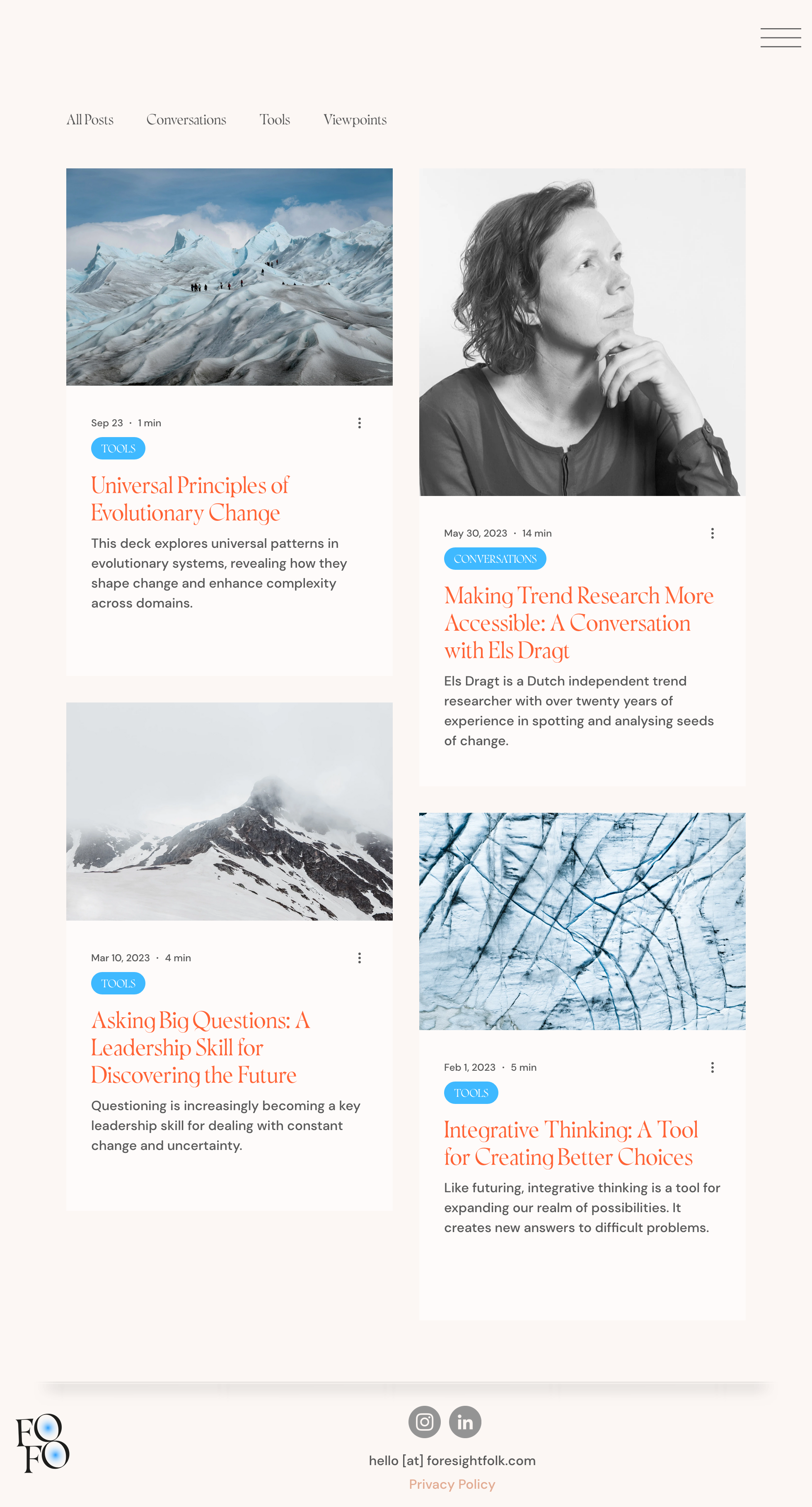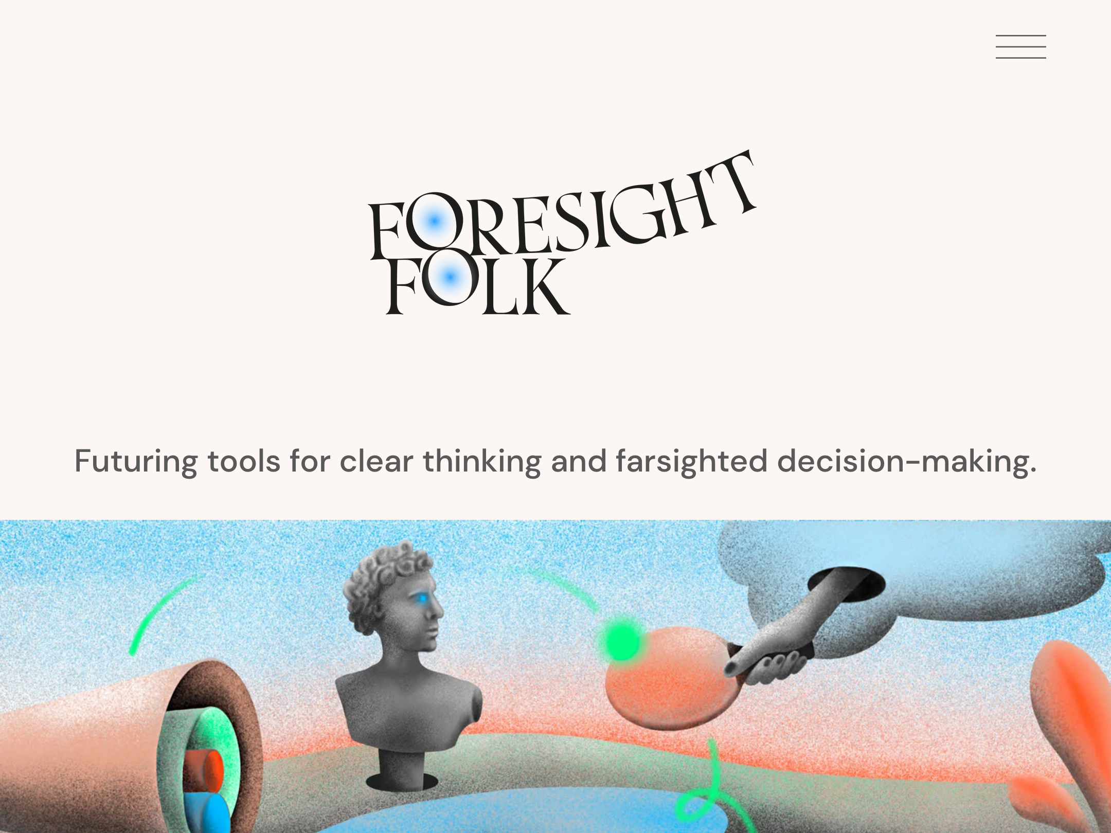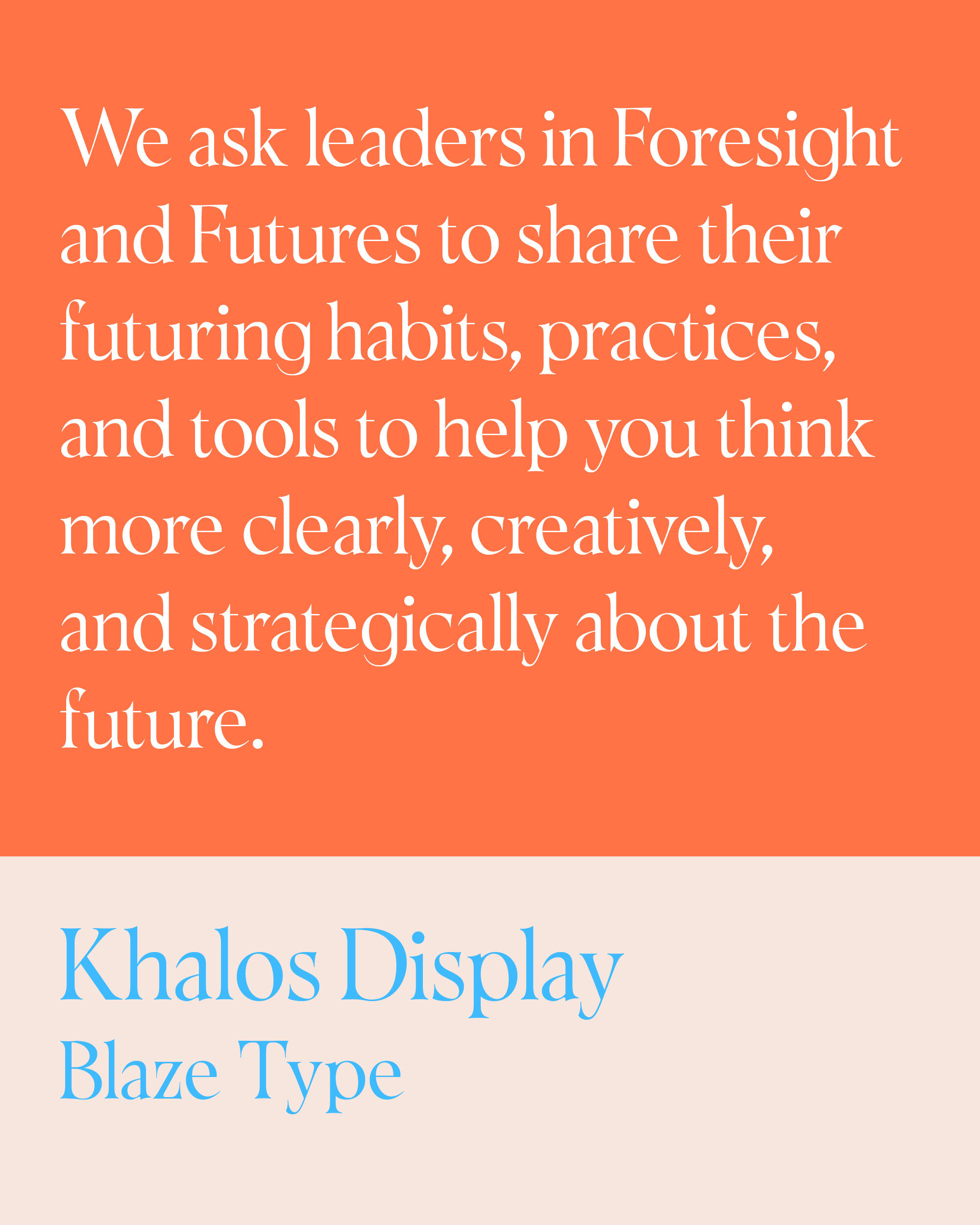 Kristina Wedel recently unveiled the corporate identity for Foresight Folk, a platform dedicated to providing and discussing futurist tools for clear thinking and farsighted decision-making. The project involved creating four illustrations, both long and short versions of the logo. The elegant typography pairs Khalos by Matthieu Salvaggio (available from Blaze Type) and DM Sans from Colophon.