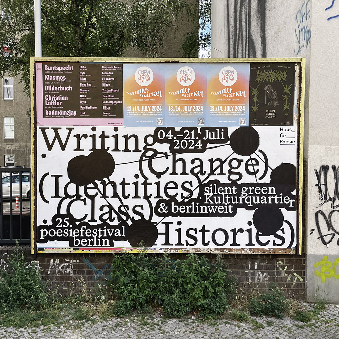 Berlin’s Poesiefestival 2024 took place from July 4th to July 21st, 2024, at silent green Kulturquartier in Berlin-Wedding, as well as other secondary locations throughout the city. AG Grafik (Philip Jursch and Lennart Lofink) created the visual identity for the festival’s organizer Haus für Poesie, typeset in HAL Timezone by HAL Typefaces.