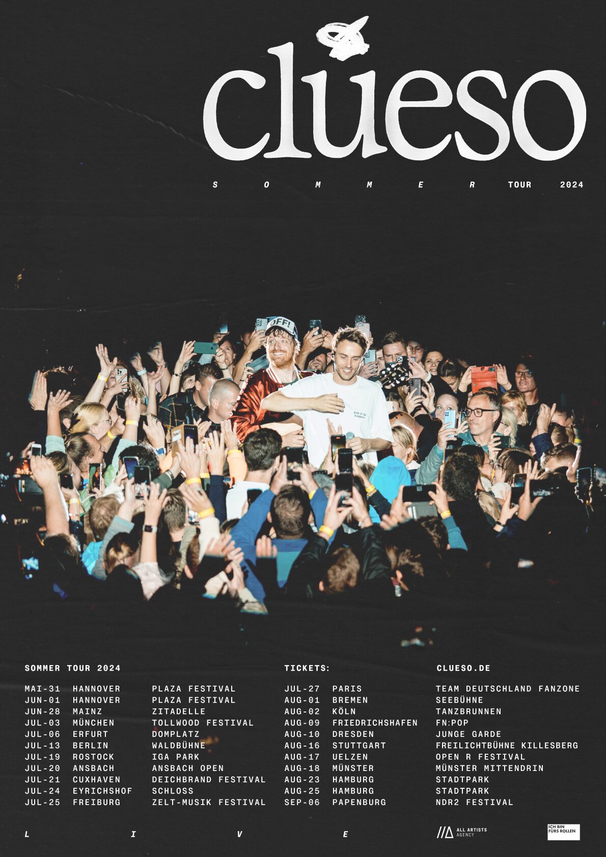 Swizzy Mono and DaVinci are used for the posters advertising Clueso’s 2024 tour.