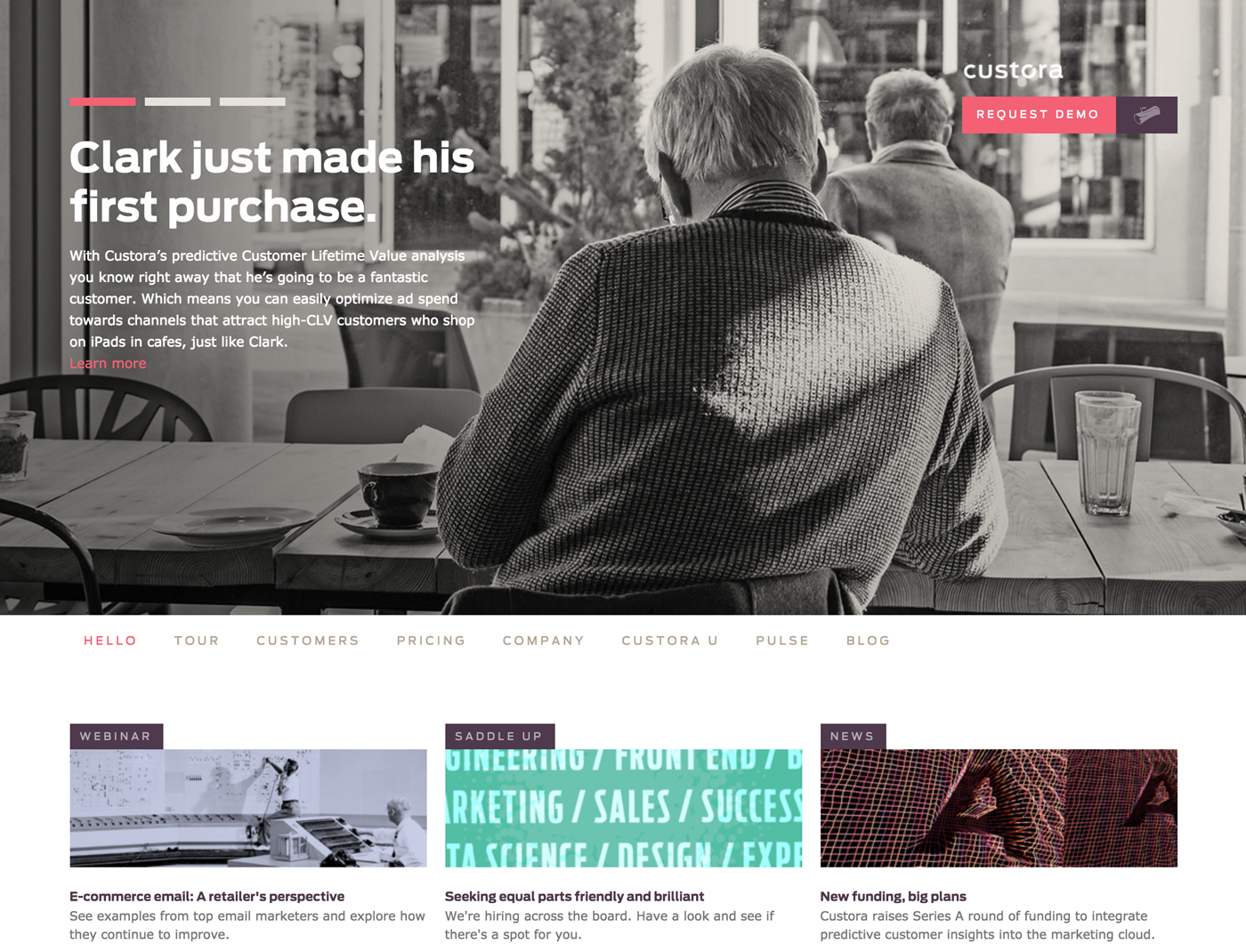 Custora website Contributed by Webtype on Apr 2nd, 2014. Artwork published in 2014. Source: www.custora.com License: All Rights Reserved. Custora is a web analytics company specialized in e-commerce marketing and customer relation building. They are using Antenna bold and regular for navigation, text and branding, as well as Verdana for small body copy. Source: www.custora.com License: All Rights Reserved. Source: www.custora.com License: All Rights Reserved. Source: www.custora.com License: All Rights Reserved. Source: www.custora.com License: All Rights Reserved. Source: www.custora.com License: All Rights Reserved. Source: www.custora.com License: All Rights Reserved. Typefaces More about AntennaGet Antenna Formats Web (5714) Topics Services (1578) Technology (1507) Designers/Agencies Custora (1) Tagged withwebsites (3653)webfonts (449)Webtype (73)analytics (11)illustrations (5)beige (72) Artwork location United States (10055) New York City (2973) In SetsWebtype (Webtype) (241) Post a comment Name Email – will not be published Website Your response Submit Comment More Antenna in use Bond Strategy and Influence Website2011Vector Media GroupJordan CoopermanContributed by Webtype Sports Illustrated covers, 2008–20102009Contributed by Font Bureau Gravitate Digital Marketing and Design Agency2013Contributed by Webtype Sponsor More in Services SALT.2022Middle NameContributed by Oliver Shilling Oliwia Baginska visual identity2022Oliwia BaginskaContributed by Markus Abts Sacha Lordc. 2024MadeByShapeContributed by MadeByShape Möbel-Oestmann, Berlinc. 1980unknownContributed by Florian Hardwig More in Web Écrans Urbains2023Notter + VigneAbout BlankContributed by WELTKERN® Typefaces Staff Pick Unto olive oil2021Studio BerginiContributed by Studio Bergini Staff Pick The Atlantic website (2016)c. 2016The Atlantic Media CompanyPaul SpellaZachary BickelContributed by Stephen Coles Staff Pick Flowing2025Alexandre CréquerContributed by Alexandre Créquer More Fonts In Use Electric Lady Studios logoc. 1969John StorykContributed by Reybach C Staff Pick Olipop2018Break MaidenContributed by Gareth Hague Staff Pick The Stars at Noon by Denis Johnson1986R.D. ScudellariContributed by Florian Hardwig Staff Pick f8 Conference Badges2010Ben BarryContributed by Stephen Coles Blog
