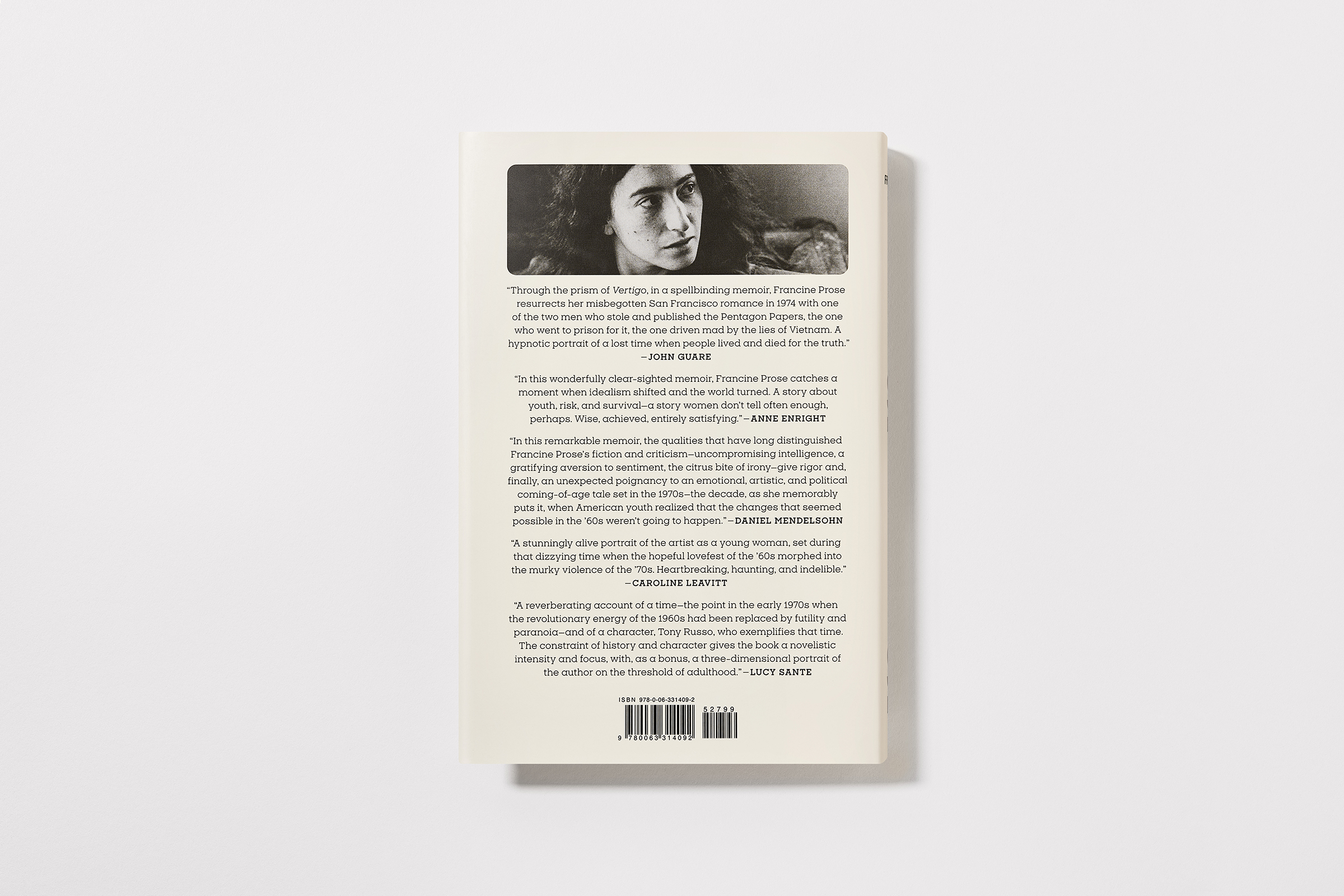 We worked directly with Prose on the book design to capture the layered poignancy of youthful idealism fading into the backdrop of 1970s disillusionment. The narrative is framed around the nights she spent with Russo driving manically around San Francisco, listening to his stories—and the disturbing and dramatic end of that relationship in New York.