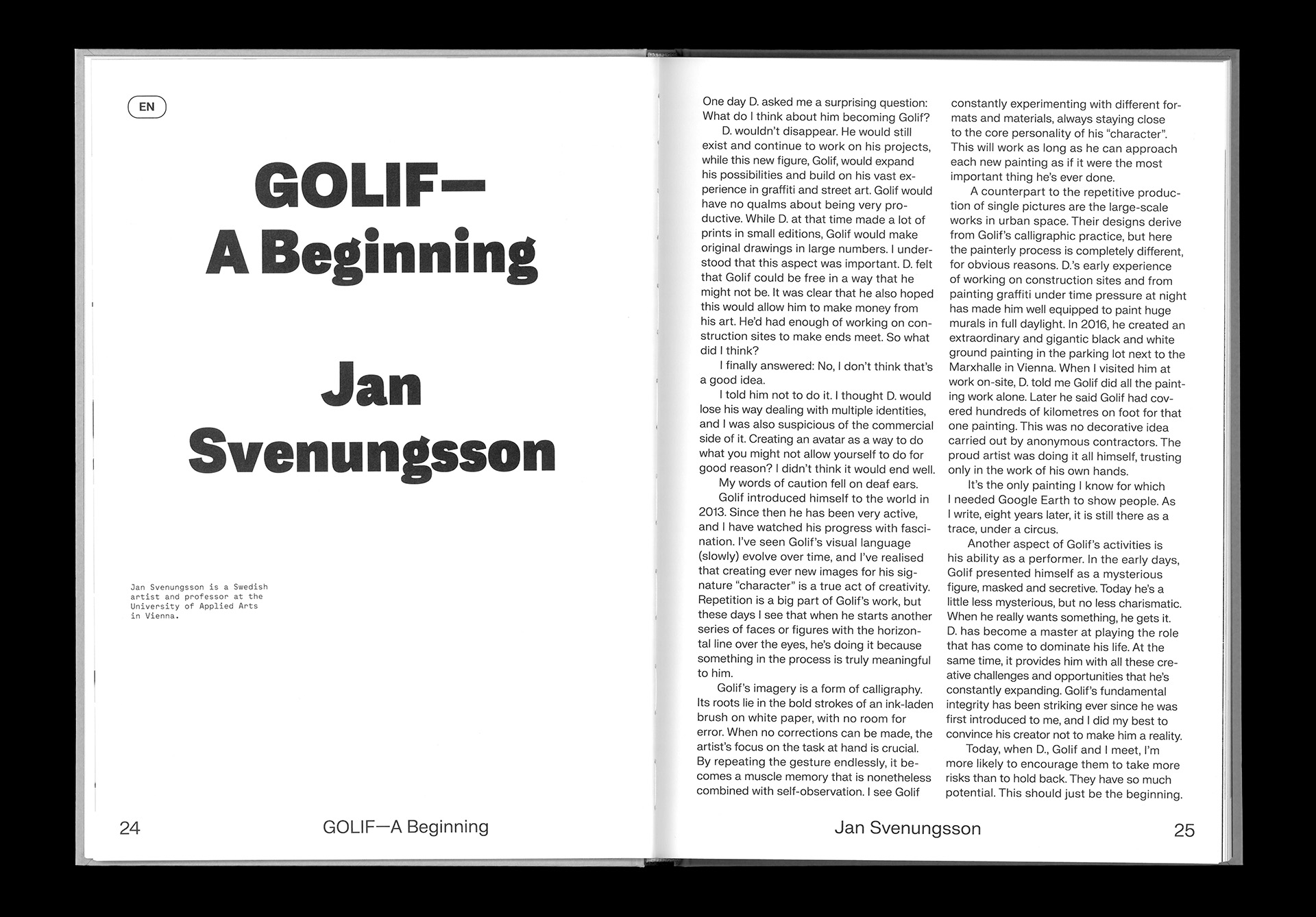 Monograph for the artist GOLIF, presented as follows on the back cover: