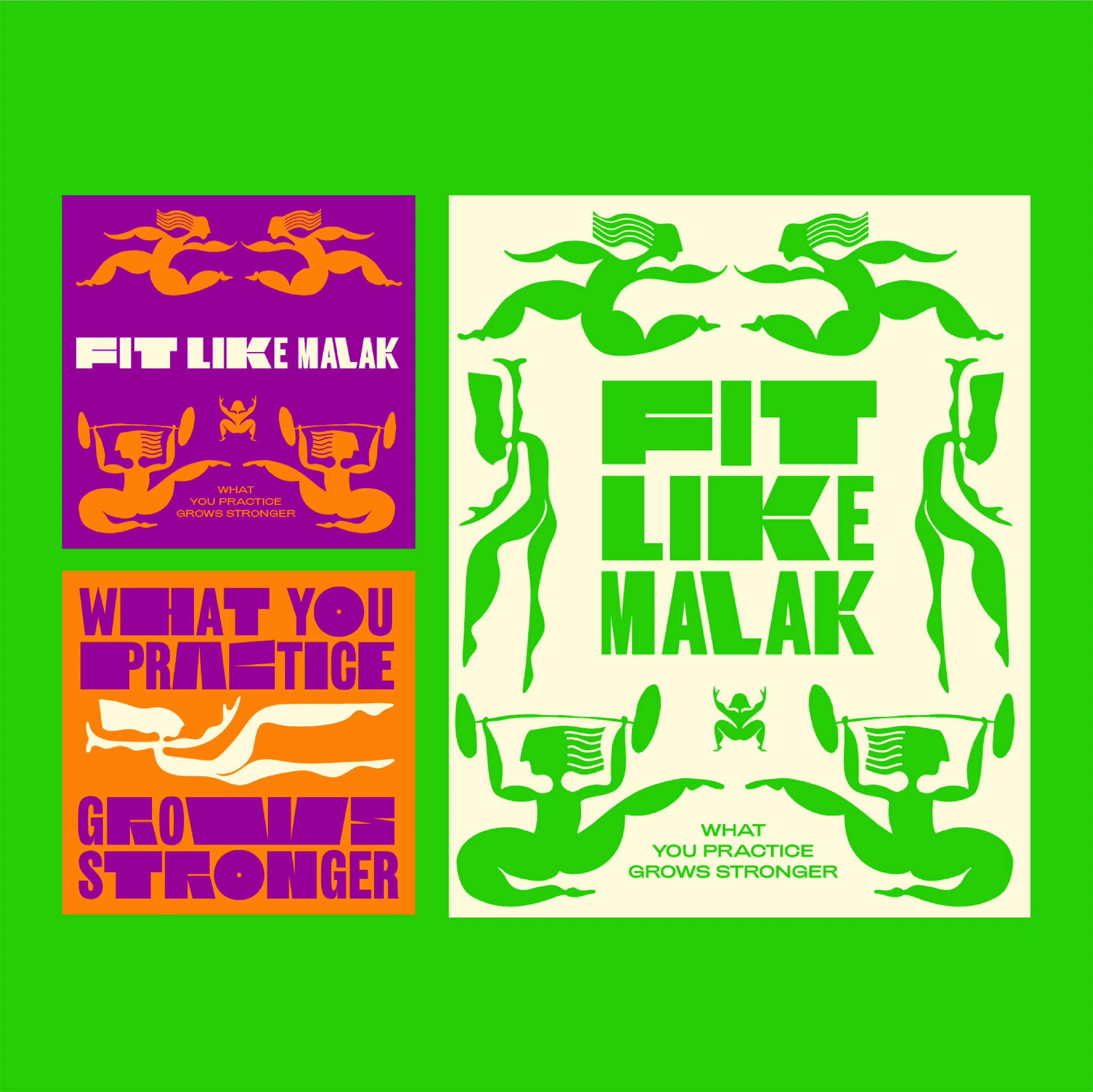 Omar Mobarek designed a vibrant visual identity for fitness influencer Malak El Ayouty’s latest training programme, Fit Like Malak. Malak develops a suitable training course for every body type she works with. To capture this aspect, the Cairo-based graphic designer approached the project by drawing a variety of figurines with a broad range of bodies in motion. The main figurine, which functions as the icon of Fit Like Malak, is shown in the fitness influencer’s favourite stance of the squat, shaping the first letter of her name (M).