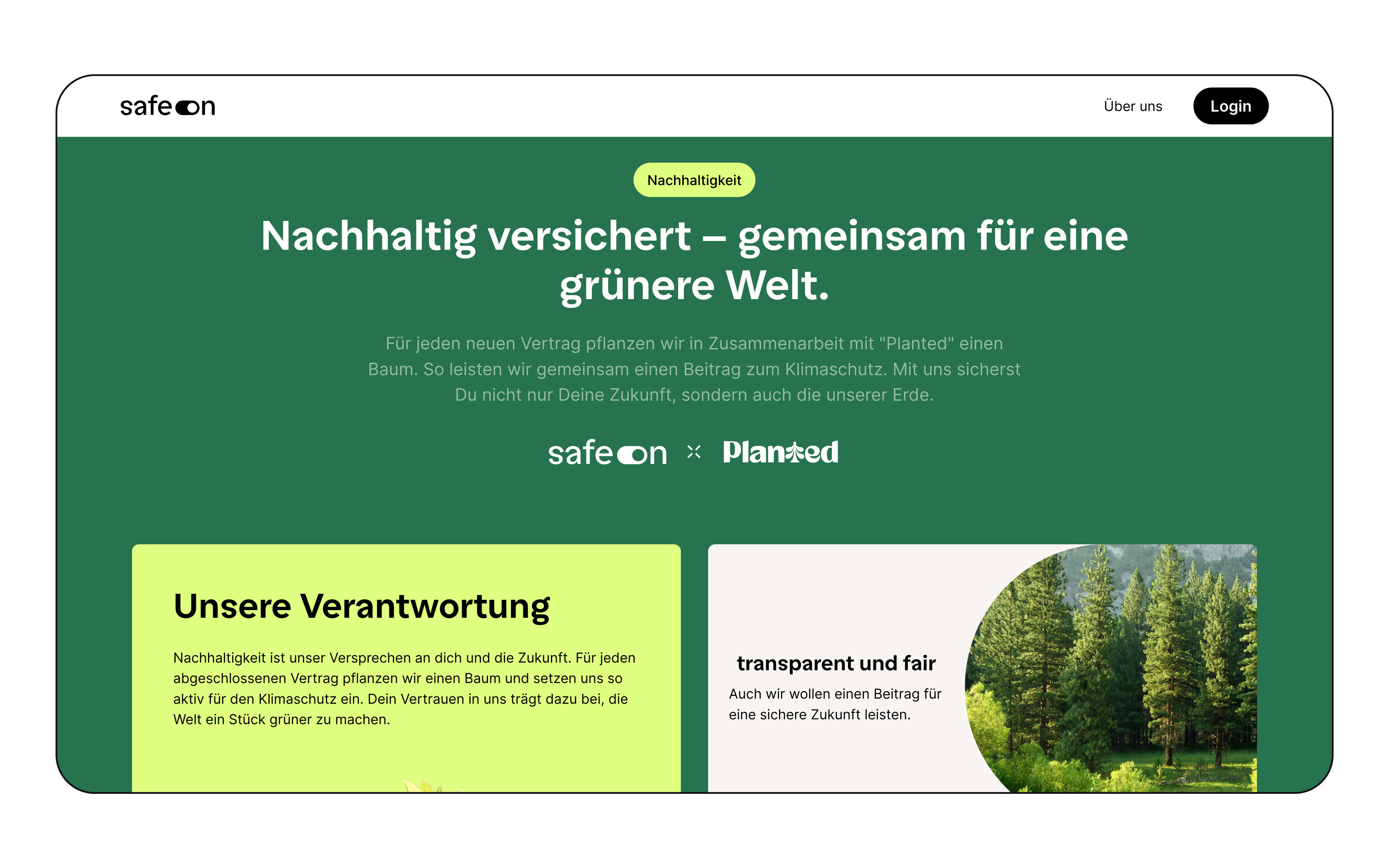 safe:on is an independent insurance broker that specializes in advising civil servants, teachers, and students. They offer advice on private health insurance, disability insurance and pension plans. In partnership with Planted, they are committed to sustainability and planting a tree for every new policy taken out.
