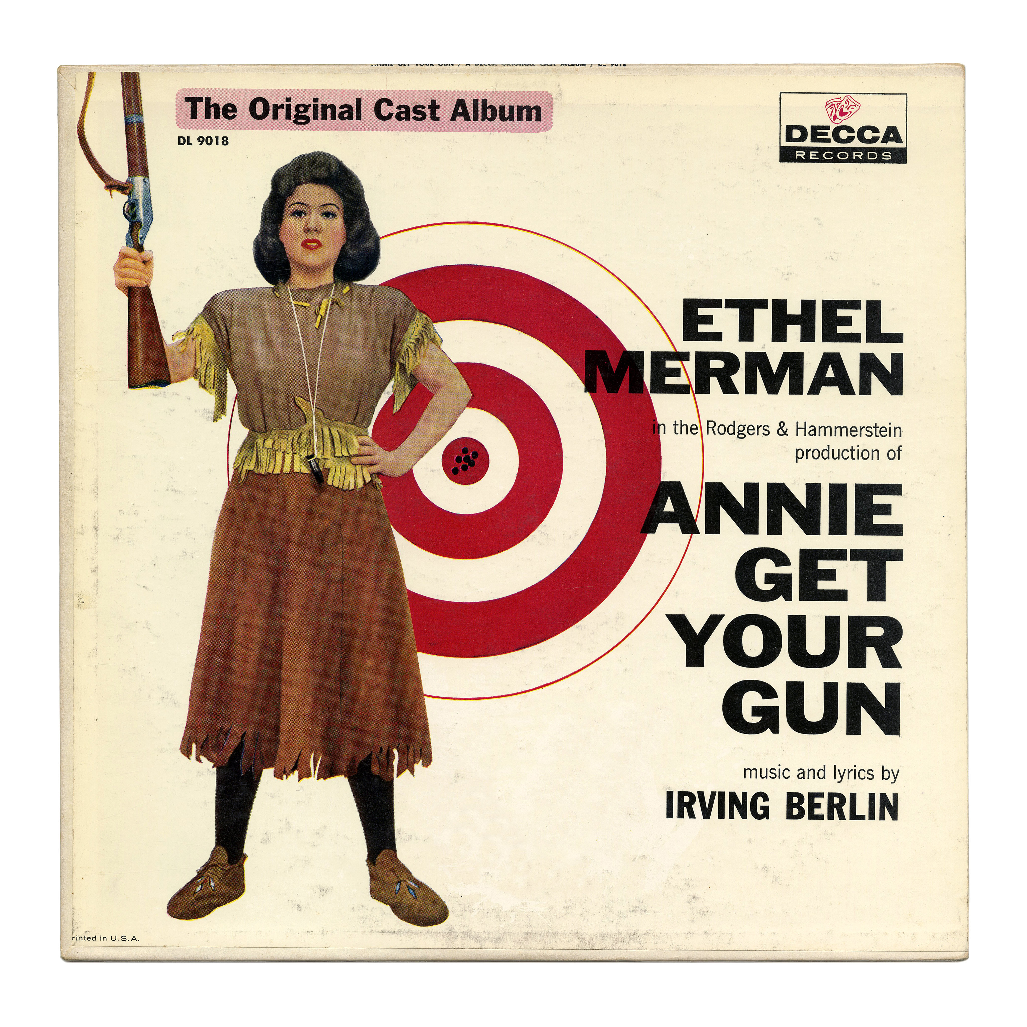 Annie Get Your Gun is a musical with lyrics and music by Irving Berlin. In the original 1946 Broadway production by Rodgers & Hammerstein, Ethel Merman (1908–1984) played Annie Oakley (1860–1926), a sharpshooter who starred in Buffalo Bill’s Wild West, and her romance with sharpshooter Frank E. Butler (1847–1926), who is played by Ray Middleton (1907–1984).