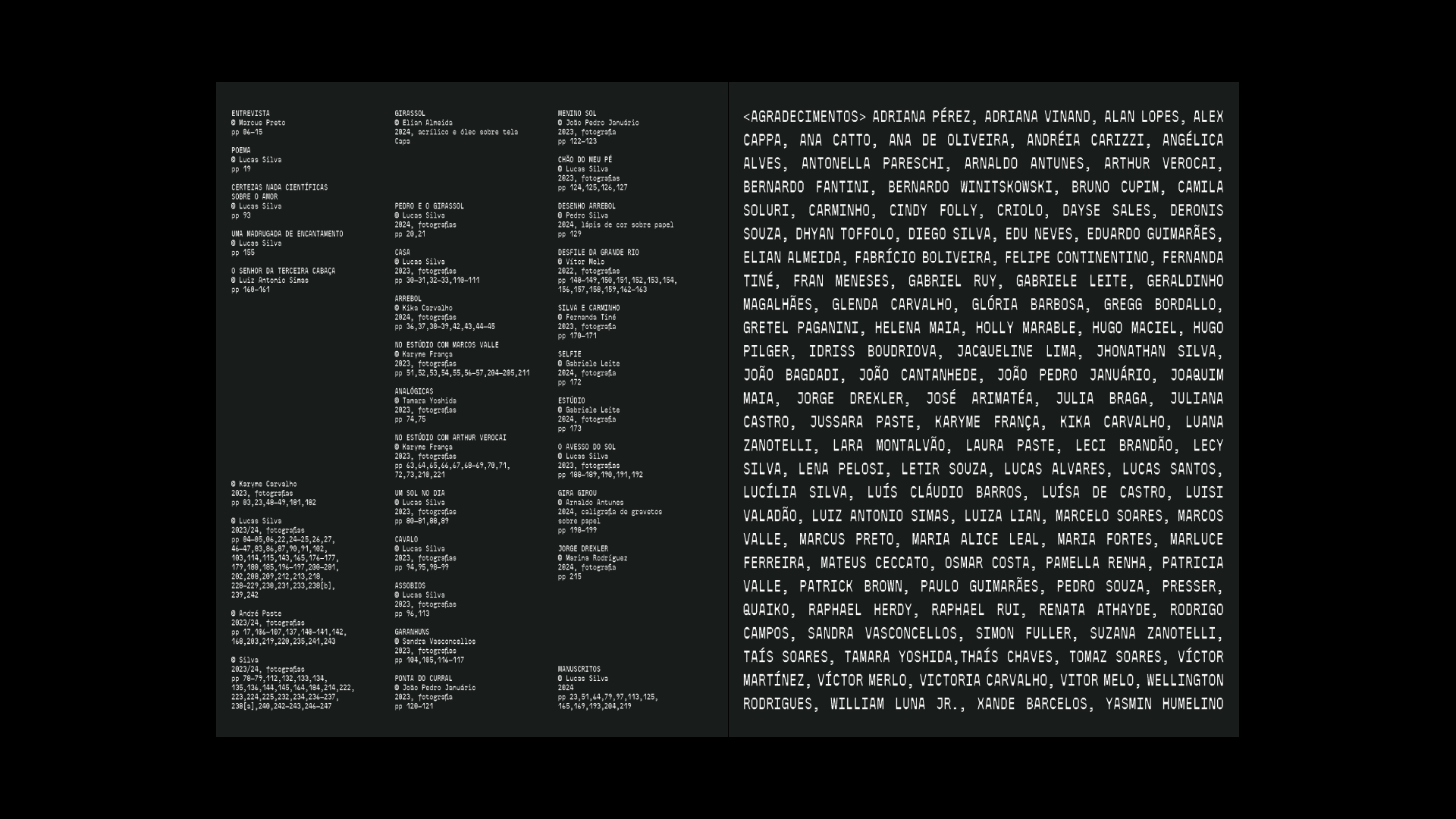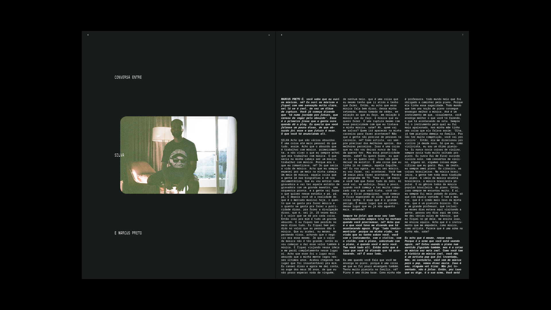 Silva – Encantado album art, book, campaign Contributed by ESTUDIO CRU on Oct 23rd, 2024. Artwork published in March 2024. Source: www.estudiocru.com ESTUDIO CRU. License: All Rights Reserved. Encantado is the new album by Brazilian singer-songwriter Silva. We were invited to develop its identity and a homonymous publication that is the tactile soul of the album, bringing together details of his creative process. [More info on Discogs] Source: www.estudiocru.com ESTUDIO CRU. License: All Rights Reserved. Source: www.estudiocru.com ESTUDIO CRU. License: All Rights Reserved. Source: www.estudiocru.com ESTUDIO CRU. License: All Rights Reserved. Source: www.estudiocru.com ESTUDIO CRU. License: All Rights Reserved. Source: www.estudiocru.com ESTUDIO CRU. License: All Rights Reserved. Source: www.estudiocru.com ESTUDIO CRU. License: All Rights Reserved. Source: www.estudiocru.com ESTUDIO CRU. License: All Rights Reserved. Source: www.estudiocru.com ESTUDIO CRU. License: All Rights Reserved. Source: www.estudiocru.com ESTUDIO CRU. License: All Rights Reserved. Source: www.estudiocru.com ESTUDIO CRU. License: All Rights Reserved. Typefaces More about OT 2049Get OT 2049More about TT InterphasesGet TT InterphasesMore about RosmertaGet Rosmerta Formats Books (6602) Branding/Identity (8533) Posters/Flyers (5815) Album Art (4273) Topics Music (6400) Designers/Agencies ESTUDIO CRU (14) Tagged withSilva (1)Música Popular Brasileira (MPB) (21)singer-songwriters (30)album records (2846)campaigns (374)tour posters (125)track listings (1271)book covers (5931)book spines (1633)book interiors (3717)social media (1109)stretched type (553)center-aligned text (1931)sunflowers (6)concert & gig posters (515)monospaced (1259)typeface combinations (3988) Artwork location Brazil (563) Rio de Janeiro (66) In Setsmusic (miguel anønimo) (62)TypeType (TypeType) (221)BR (Lucas Bevilaqua) (92)Pairings (Lucas Bevilaqua) (578)Branding (maria fernandez) (4)Style (Edoardo Compiani) (41)ba (Gabriel Weimer) (14)PHANTA (Leonardo de la Fuente) (285)tipog tfg (Casilda Ortiz) (7)BRASIL (JOZÁ) (9)IDENTITY (Joel Mojica) (9)RADIOGIAPPANESE (Leonardo de la Fuente) (2878) Post a comment Name Email – will not be published Website Your response Submit Comment More TT Interphases in use Rodolfo Sarno websitec. 2025Rodolfo SarnoContributed by Nikolas Wrobel WRK2023Studio 28KContributed by TypeType Skyguide2021NoordContributed by TypeType Sponsor More in Music Israeli Folk Dances (Third Series, Israel Music Foundation) album art1957unknownContributed by Florian Hardwig Video Age 2019 tour poster2019Aaron Lowell DentonContributed by Bryson Stohr Shirley Scott – Mystical Lady album art1971Maurer ProductionsContributed by Florian Hardwig A Salute To The Great Band Leadersc. 1960Photo(s) by Bart Solenthaler on Flickr. More in Books Un Punto Fijo Para Orientarse / A Fixed Point to Be Oriented2023Clara SanchoContributed by Clara Sancho Book Jackets & Record Sleeves by Kurt Weidemann (ed.)1969Kurt WeidemannContributed by Florian Hardwig Revolutionäre der Typografie2022icona baselContributed by icona basel Black Power book2018Cristóbal RiescoContributed by Cristóbal Riesco More Fonts In Use Beursschouwburg 2018 program2018Atelier BrendaAmélie BakkerContributed by Jérémy Landes (Studio Triple) Staff Pick Valley of the Dolls, Bantam edition1967unknownContributed by Stephen Coles Staff Pick Amis! Protégez! poster1993Roman CieślewiczContributed by Florian Hardwig Staff Pick Free Your Funk: La Nuit Prince2019République StudioContributed by Altiplano Typefaces Staff Pick