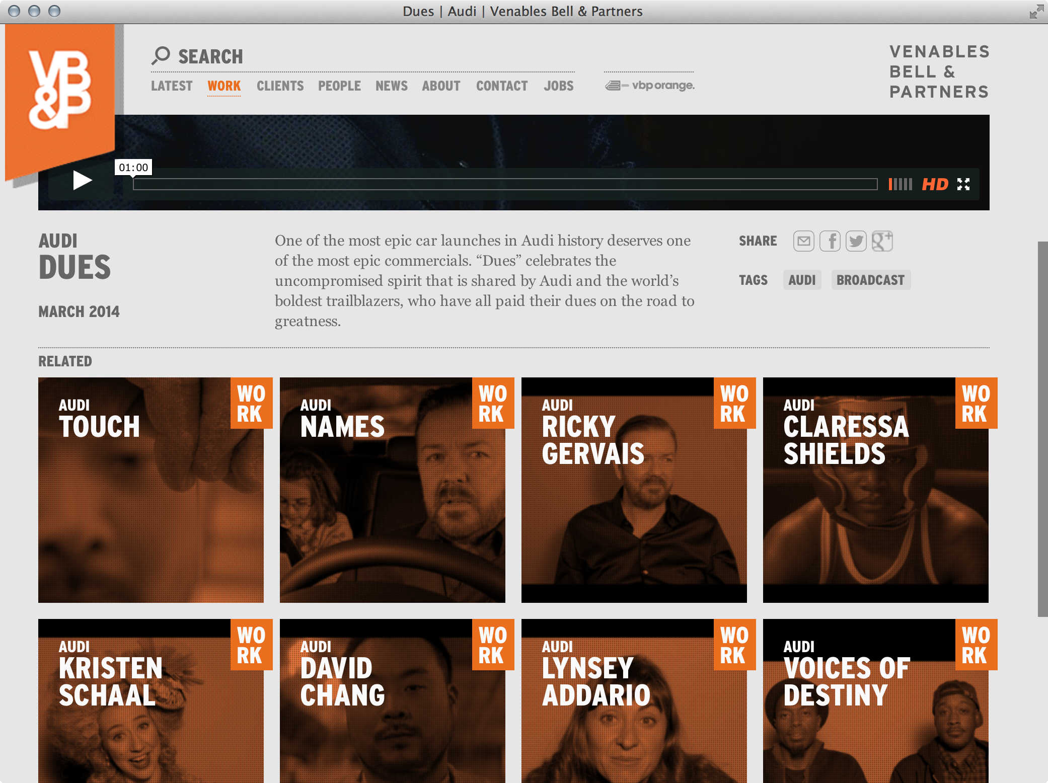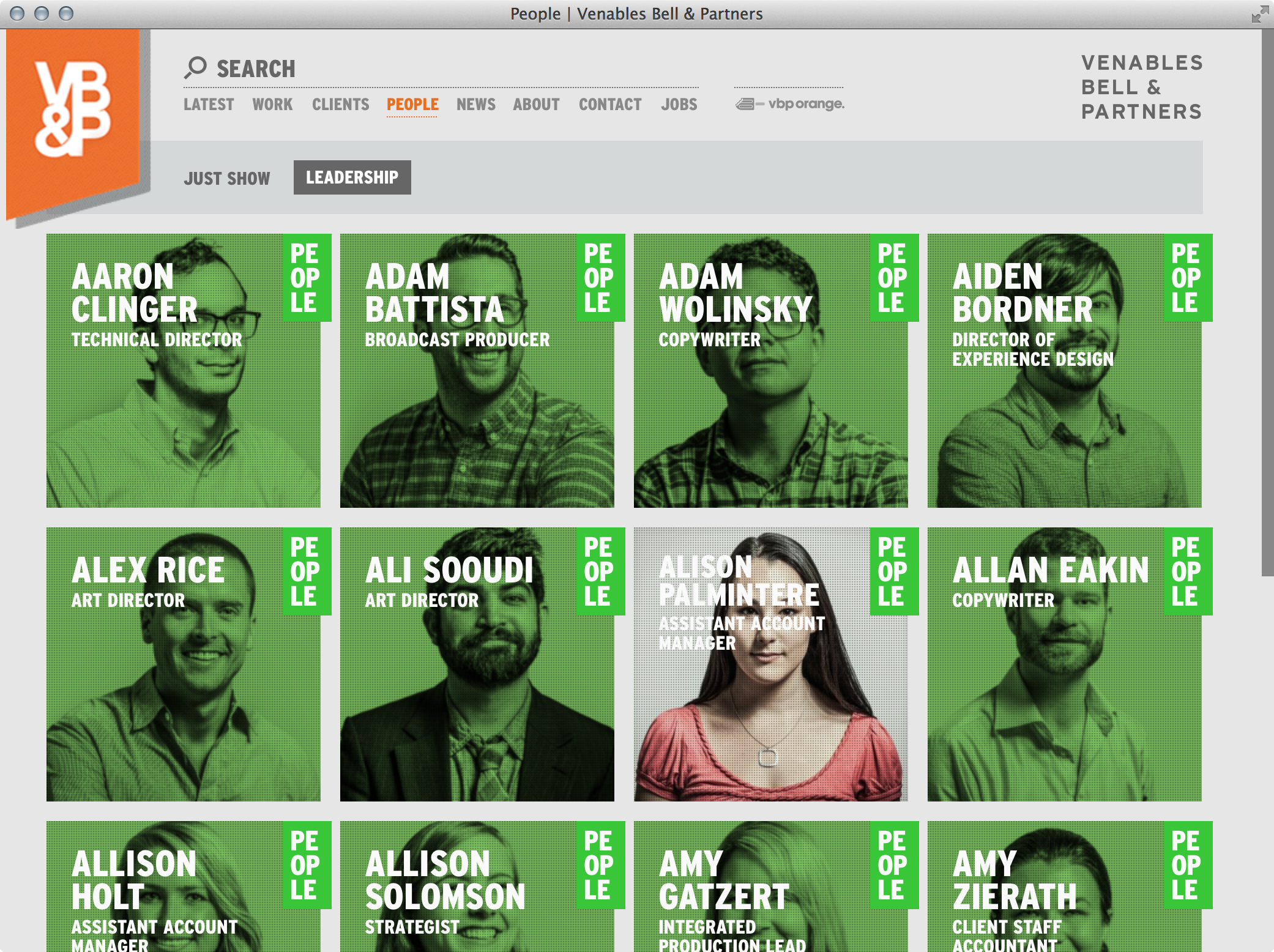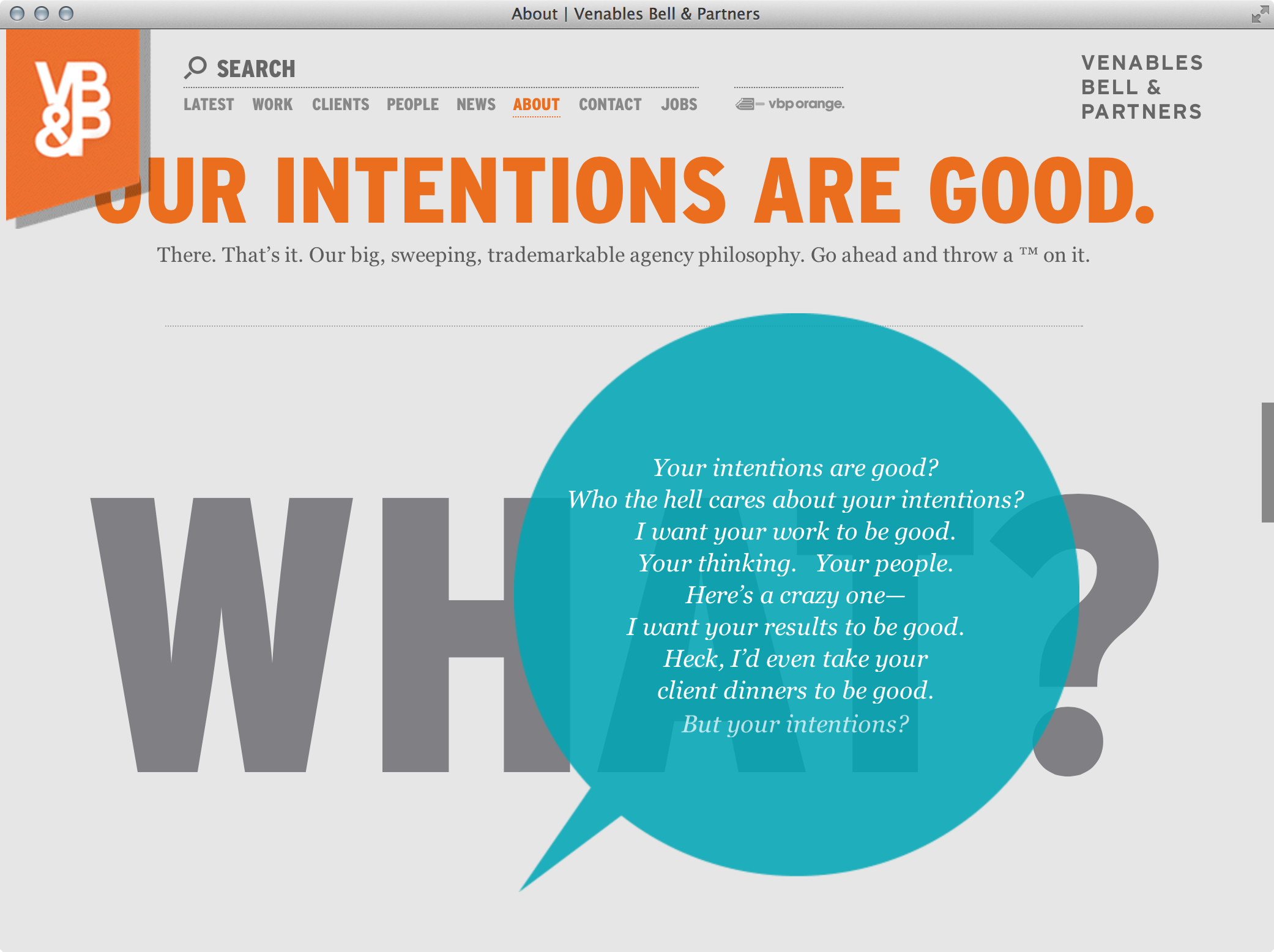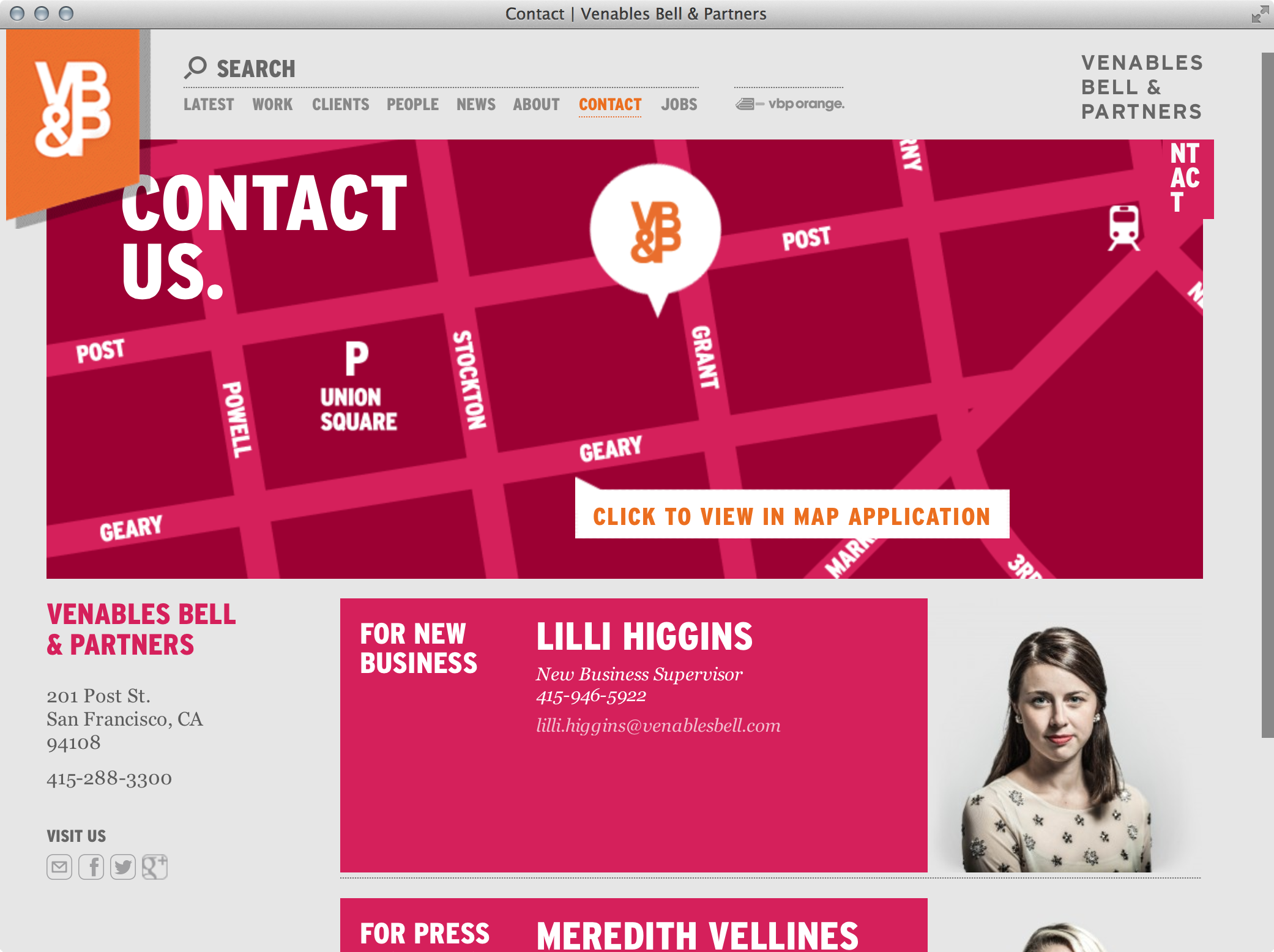 VB&P Venables Bell & Partners is an advertising agency in San Francisco with a very appealing modern website. The design is inspiring but not overloaded. Interstate Bold and Black Condensed is used for headlines and navigation, as well as good old Georgia for small body copy, which looks elegant and appropriate next to the strong caps on the subdued grey backround.