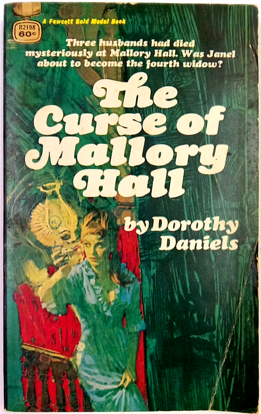 Fawcett Gold Medal Books published The Curse of Mallory Hall, a novel by Dorothy Daniels (1915–2001), in two cover variants. One (shown above) exclusively features Oz Cooper’s Cooper Black Italic (1926). The other (below) goes a little harder: here, the title is set in the italic style of Benguiat Cooper Black Swash, a variant by Ed Benguiat that adds extra weight and swagger.