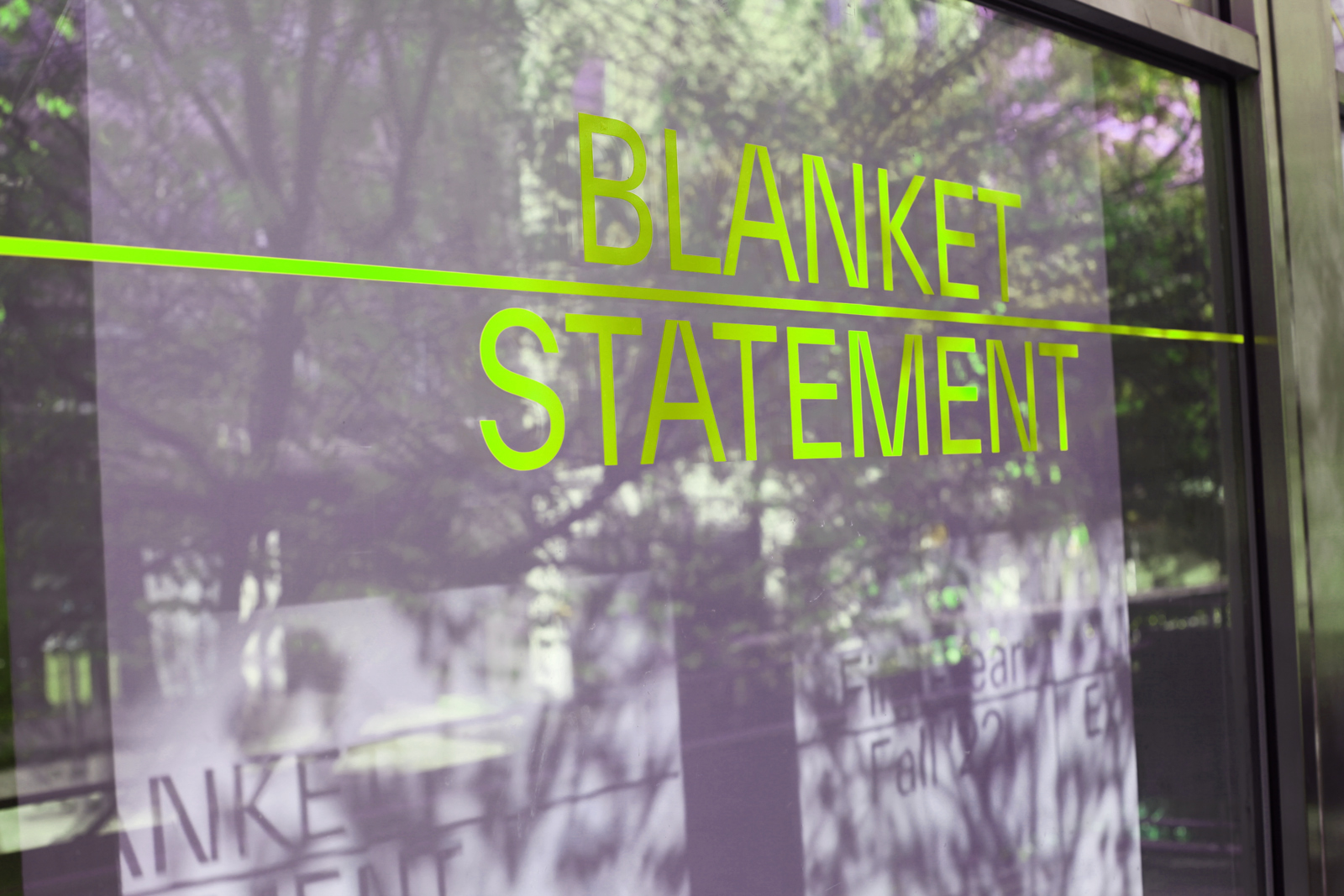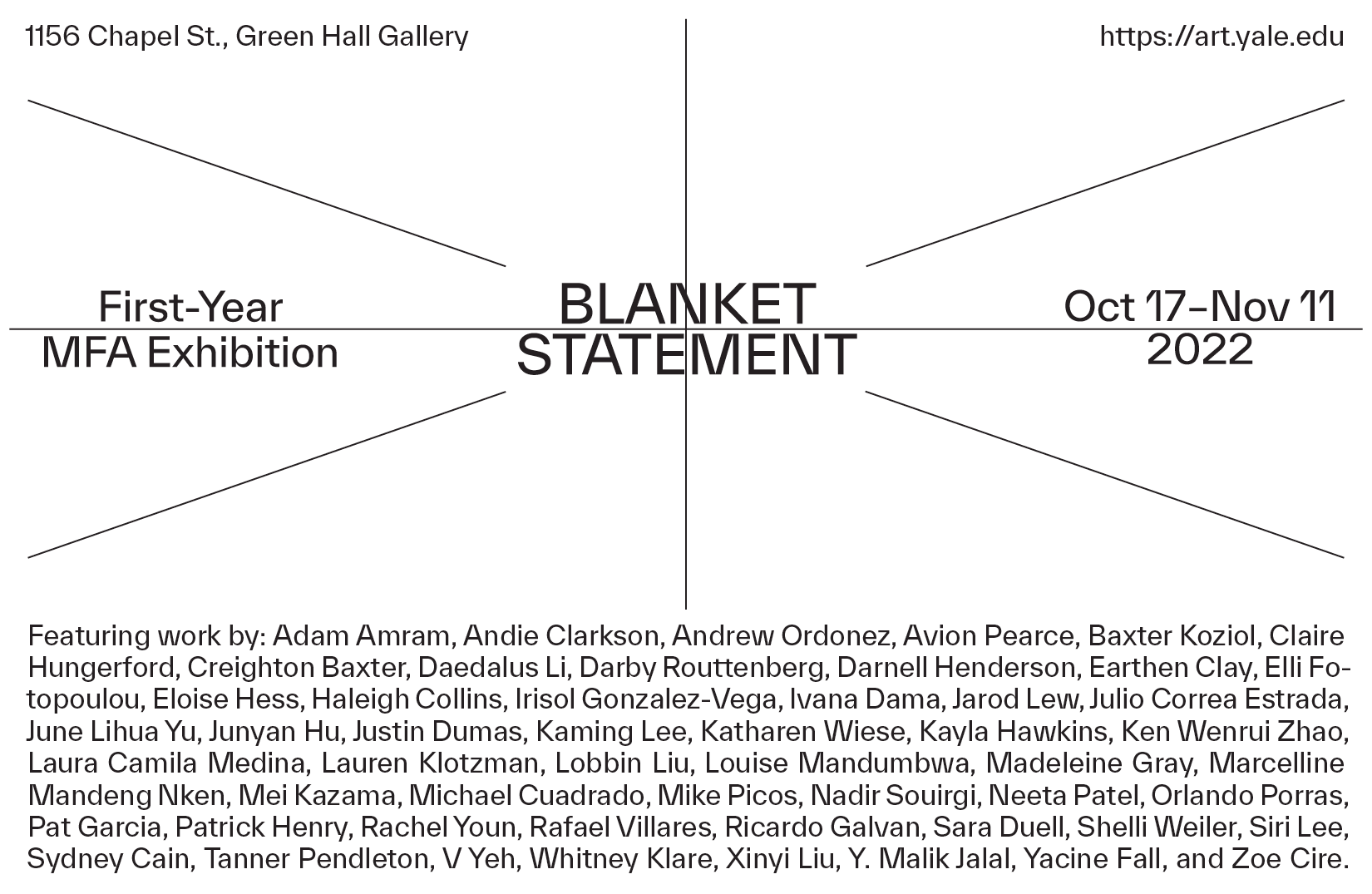 The fall exhibition of the first-year MFA students of the Yale School of Art 2022 was held under the name Blanket Statement. The visual identity and the exhibition were designed by then-students Osvald Landmark in collaboration with M.C. Madrigal, using TWK Everett Regular by Nolan Paparelli throughout. From Osvald Landmark’s website:
