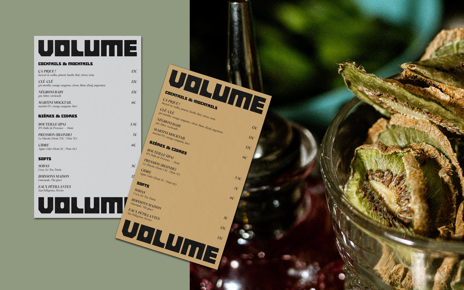 For the graphic design of “Volume,” a new pop-up blending music and mixology, typography played a central role in shaping the visual identity. The chosen typeface, Victor Montet’s Bonto from Blaze Type, stands out for its bold and modern character, perfectly aligning with the contemporary and cutting-edge spirit of Volume.