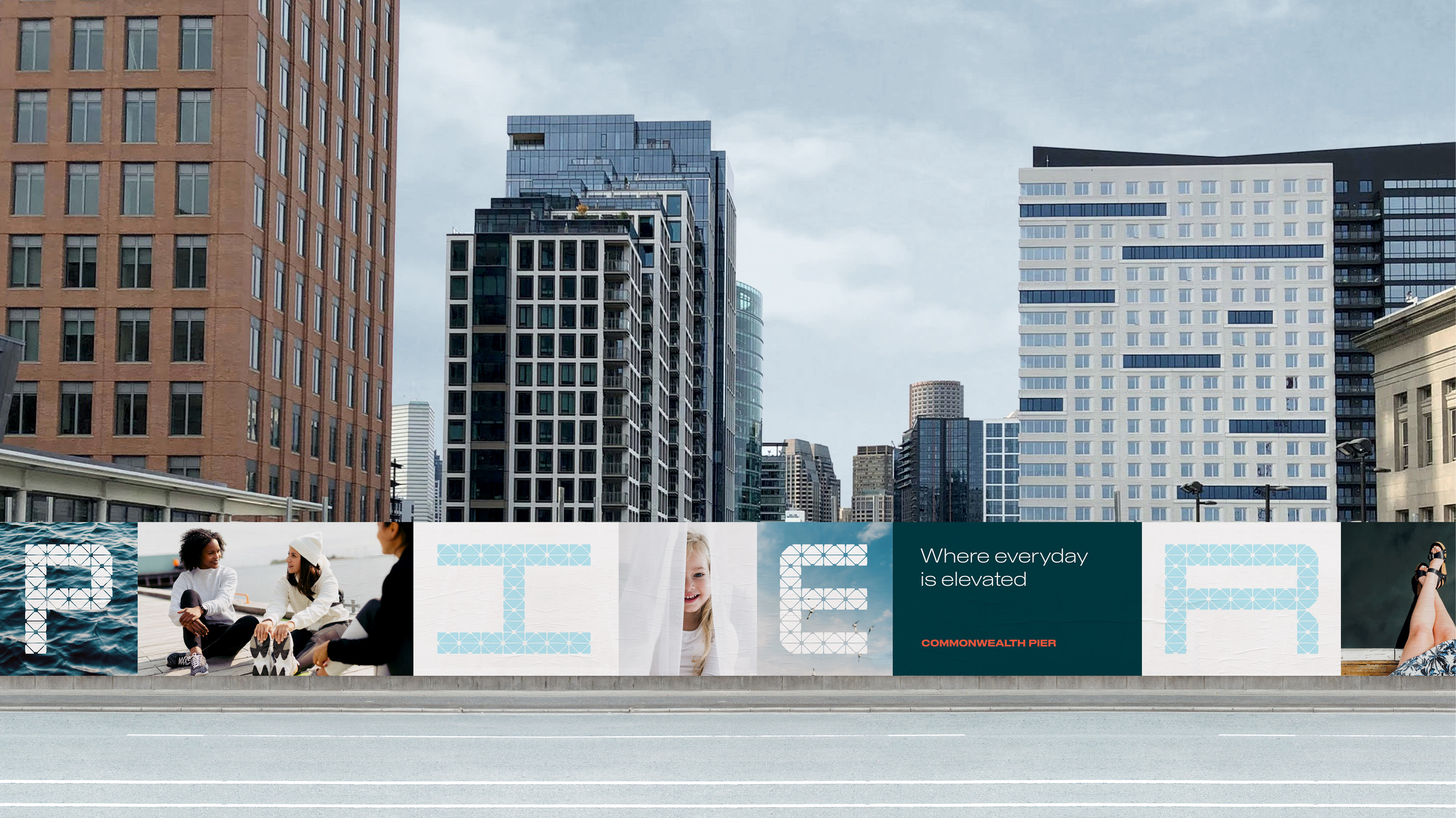 SSPier takes inspiration from turn-of-the-century architectural elements found throughout the pier structure that stretches out into Boston Harbor. The building has industrial origins, originally functioning as a railway shipping hub. The bespoke modular typeface draws inspiration from the ornate trusses and columns unearthed during its renovation.