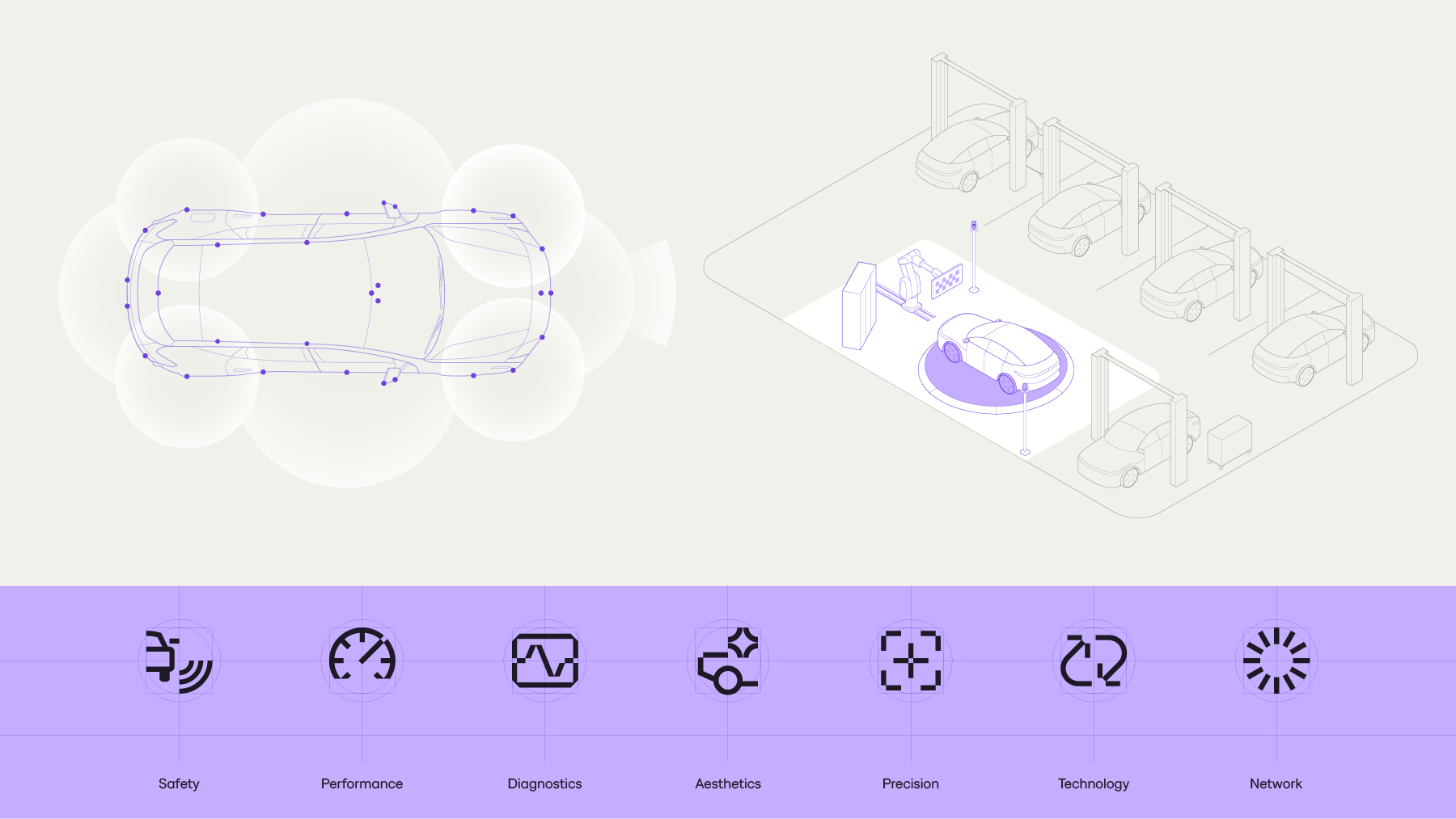 The complimentary visual system – including illustration, iconography, animation, photography, and video – pays homage to the innovative solutions the team is developing to facilitate an effortless transition to the modern age of mobility for dealerships, independent and national repair shops, fleets, and OEMs.