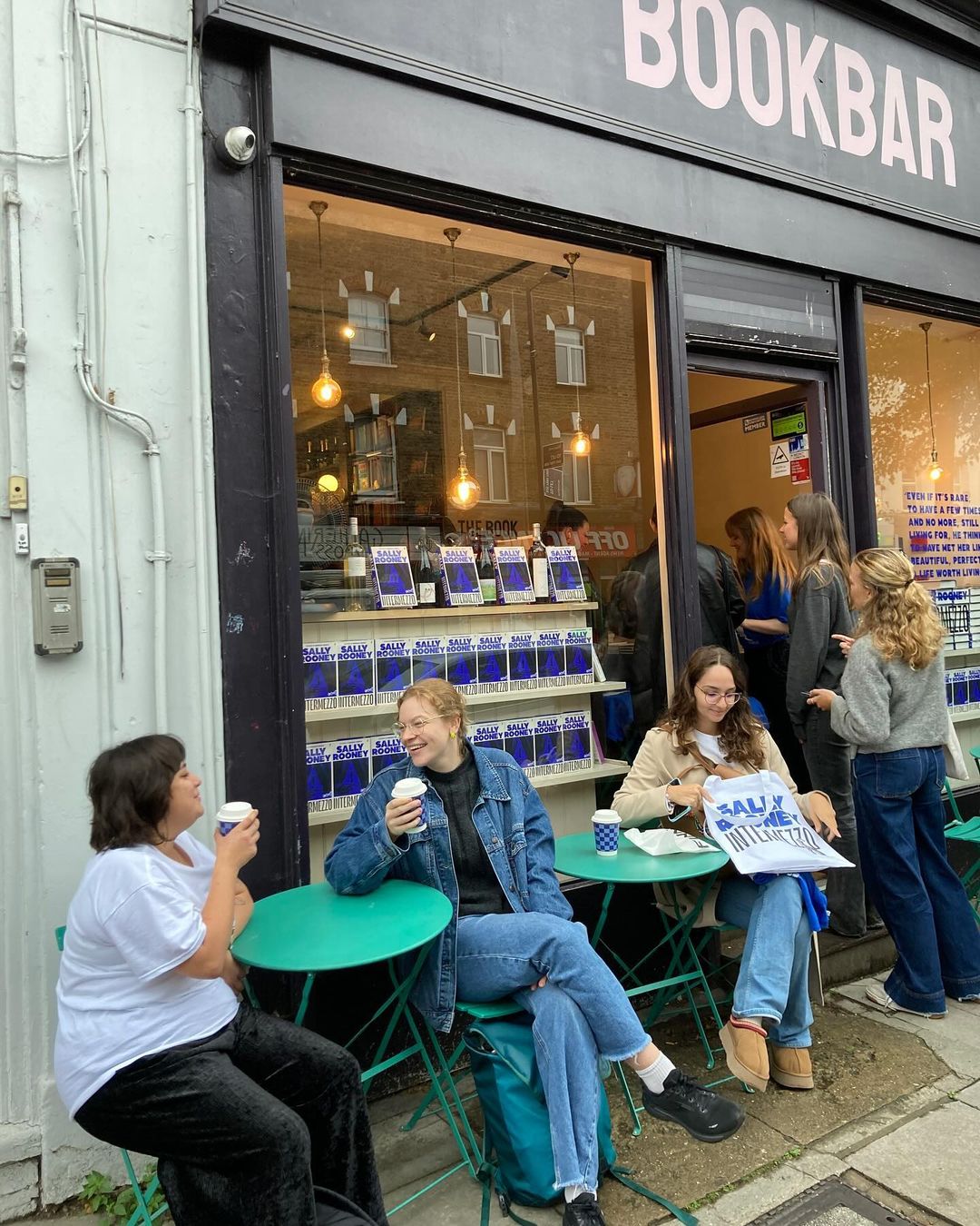 The whole communication makes thorough use of the typeface duo and of the blue-white-black trichromy; on posters, tote bags, the dedicated website, coffee cups, enamel pins, stickers, T-shirts, etc. The publisher even organized live jacket design events where illustrators (Yuk Fun, Maria Ines Gul and Nänni-Pää) would draw custom designs onto jackets that were printed out with the illustrated square left blank.