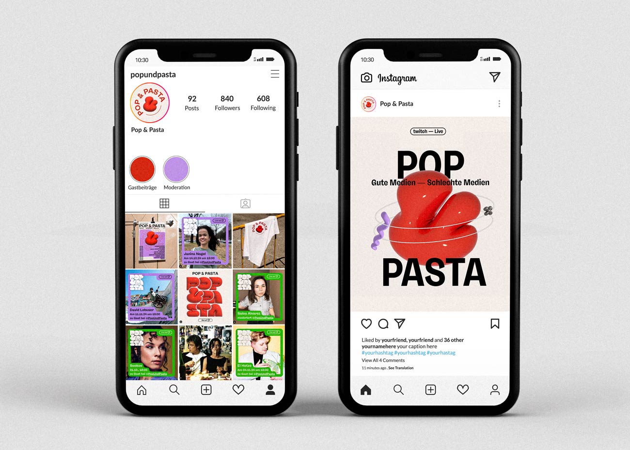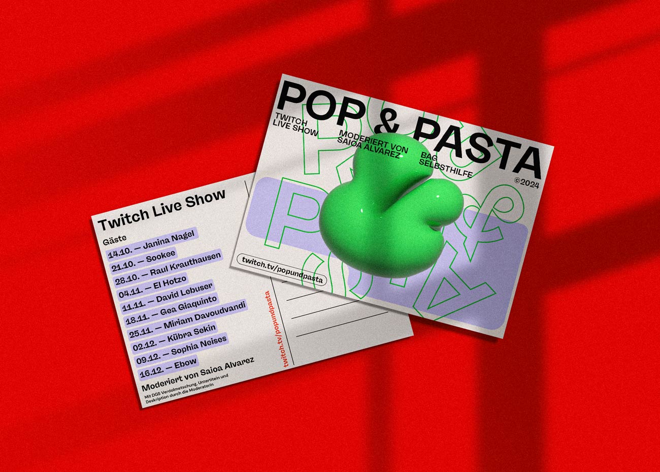 Pop & Pasta is an inclusive live show on Twitch. studiokwi worked on the project design, corporate identity, and Canva templates.