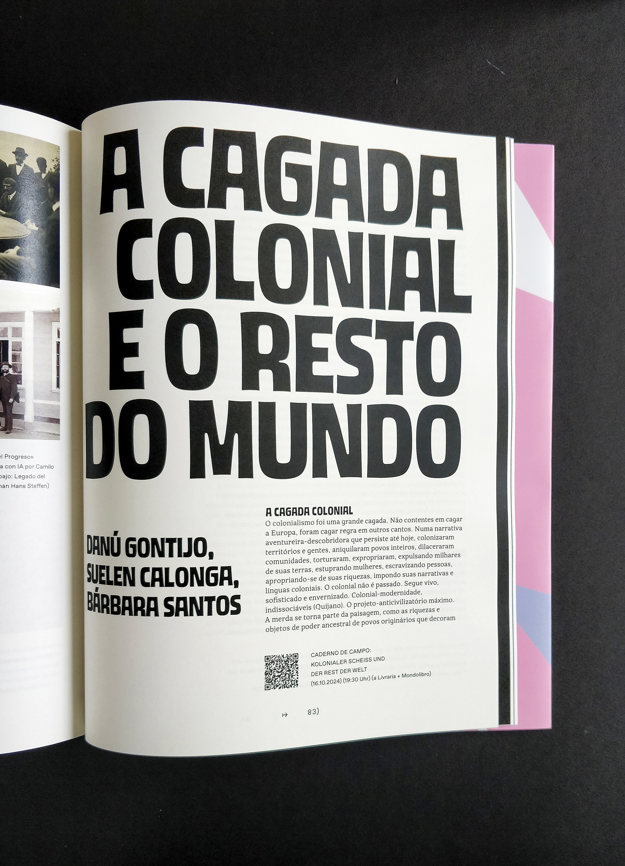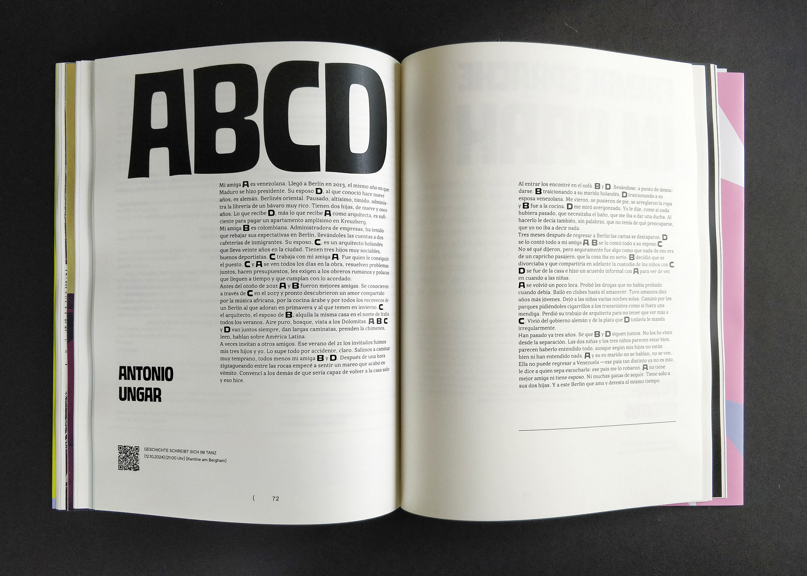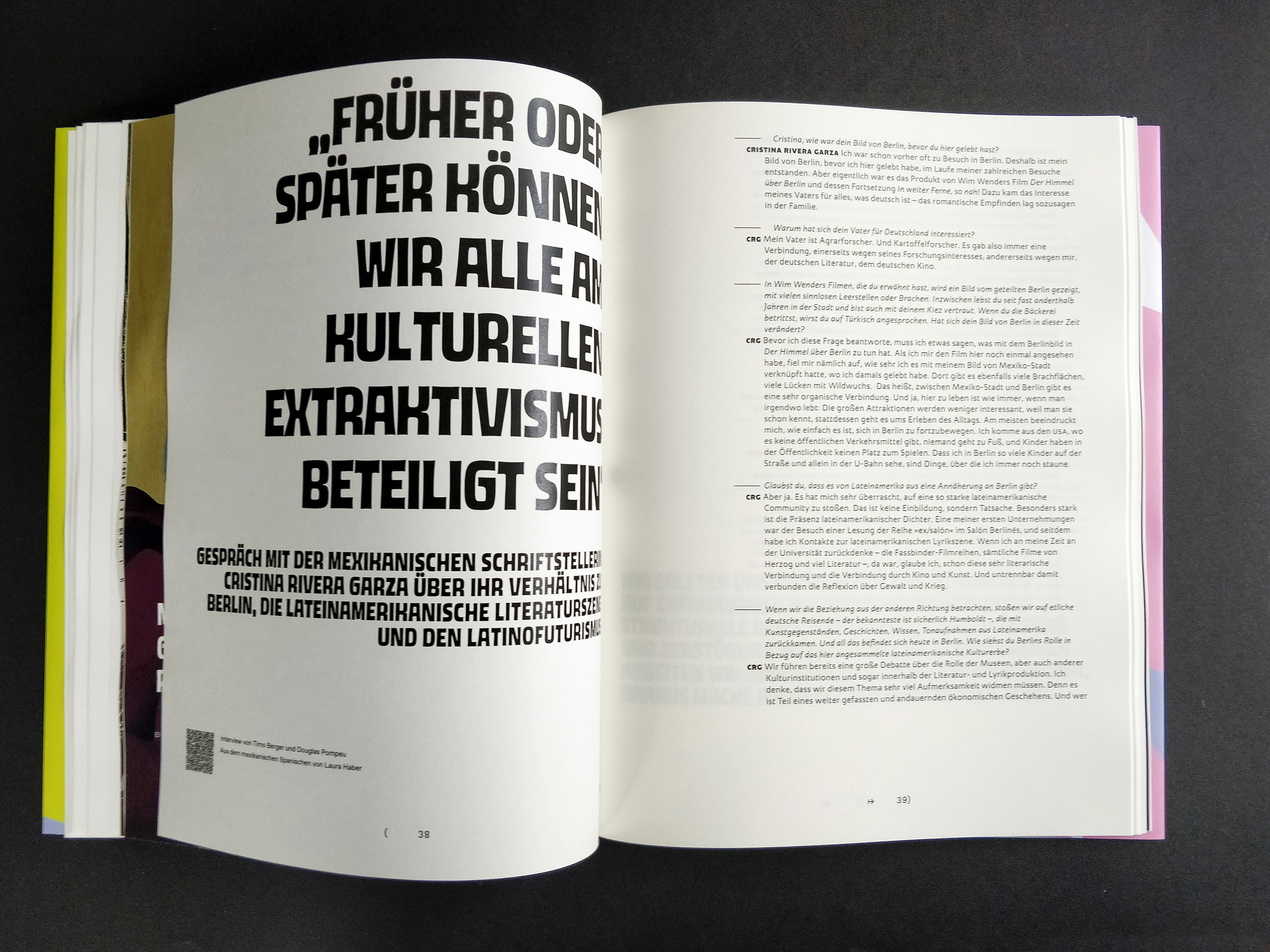 Barrio (Bairro) Berlin was a Latin American literature festival held in October 2024. Barrio is the certainty that Berlin is just another neighborhood of Latin America; it’s the reorganization of Berlin into Latin American neighborhoods. The catalog brings texts from literature, poetry, illustrations, and type from Latin American to this city that welcomes them. It opens the door to thinking about other structures (the jacket, the cover, the index, editorial text, title page, manifesto, frontispiece, body text, impressum, save page, back cover), other languages where there are no languages (in plural), but rather an immense desire to communicate. The boundary between languages dissolves because other codes and agreements emerge from this coexistence.
