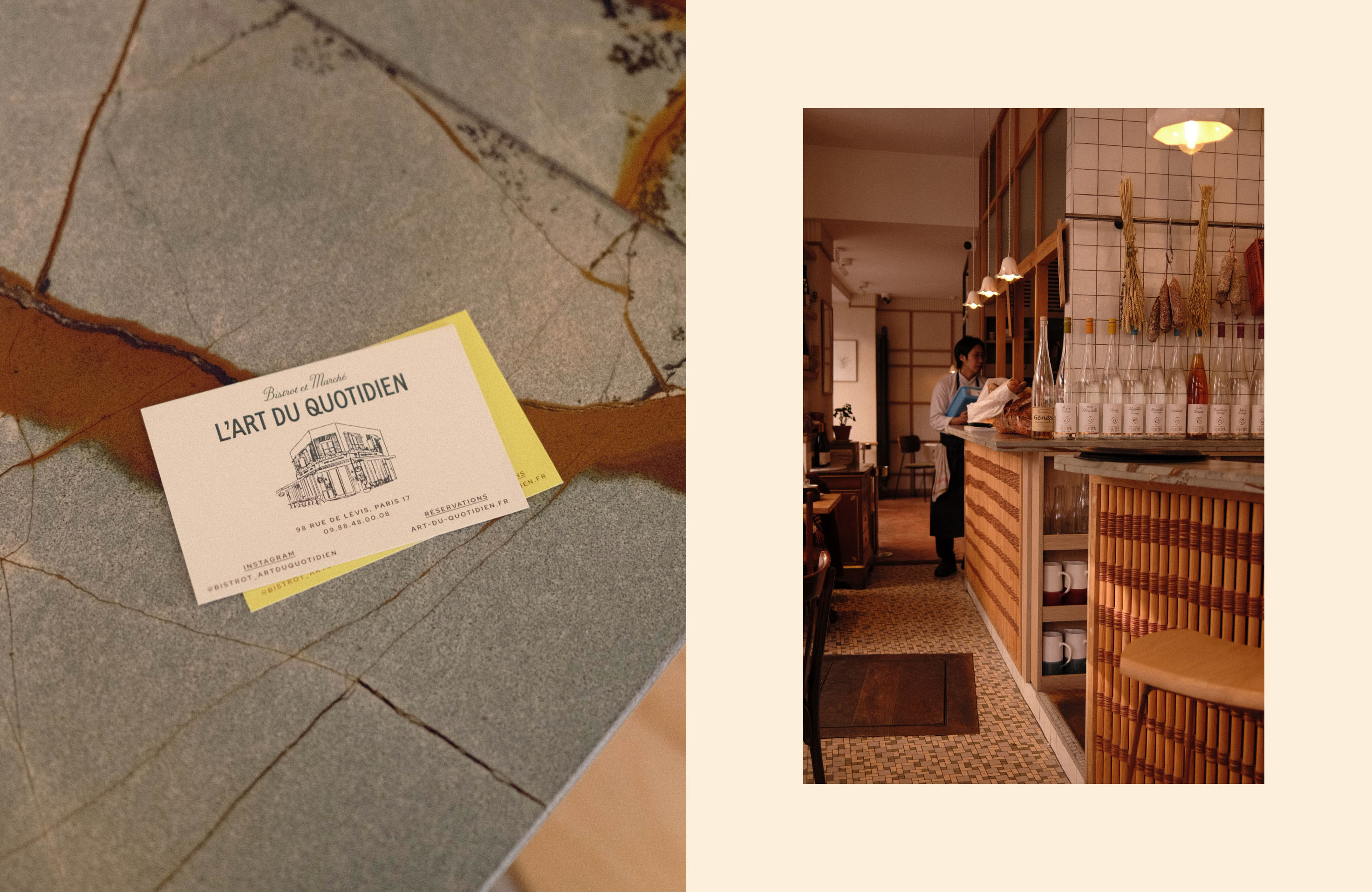 L’Art du Quotidien is a hybrid living space, fully integrated into its neighborhood in Paris, centered around a seasonal bistro and a marketplace. The offerings are exclusively products from small local producers committed to traditional and organic farming methods.