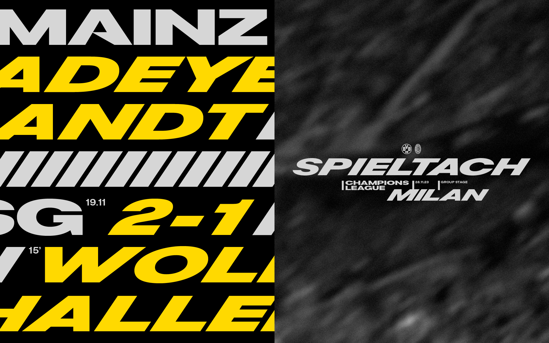 The new identity highlights the iconic “Gelbe Wand” (“The yellow wall”), a symbol of the deep ties between fans and the club. It is evoked by a diagonal shape, based on the 34 degree angle of the standing terrace at Signal Iduna Park, and used as a central axis throughout the entire visual system.