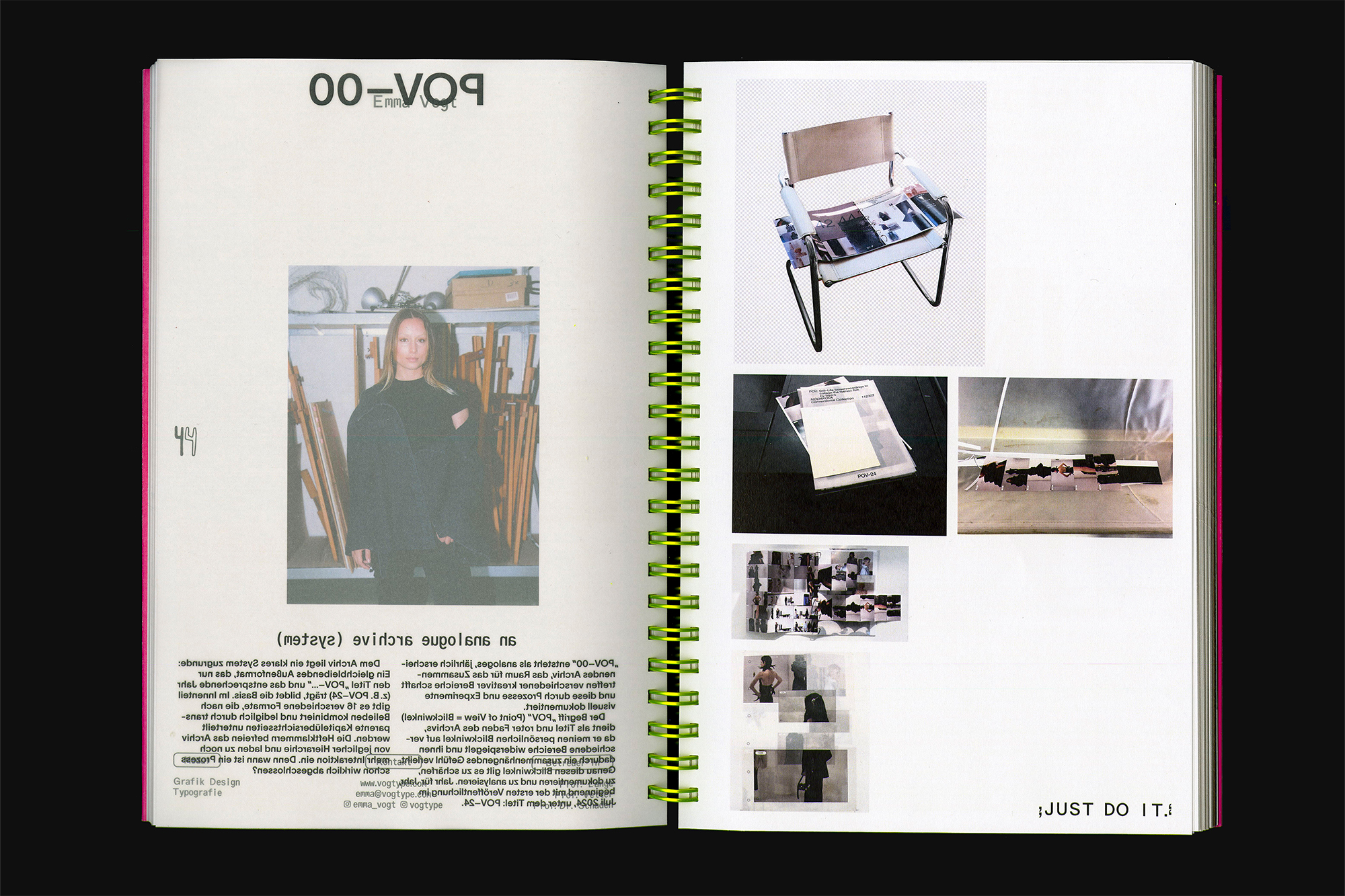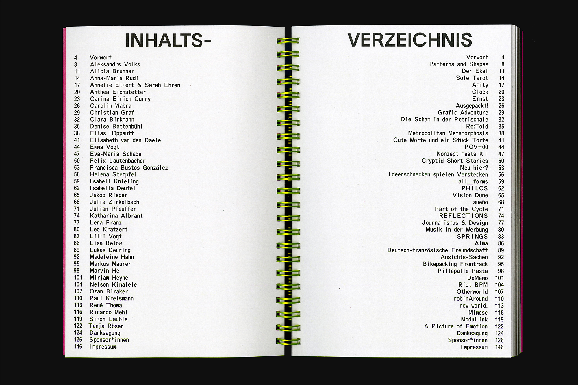 Concept, design and layout by Nele Linsmaier and Philip Förster. We chose a combination of ABC Oracle Triple by Dinamo and TWK Lausanne by Weltkern. The pages are numbered with hand-drawn lettering.