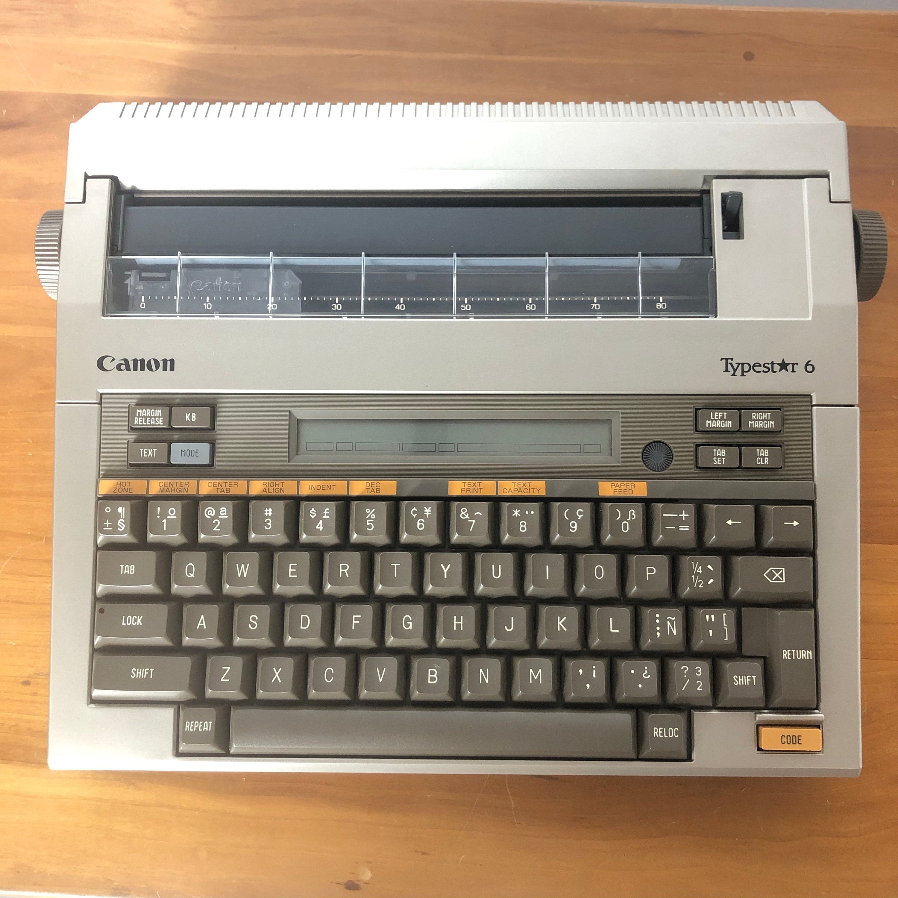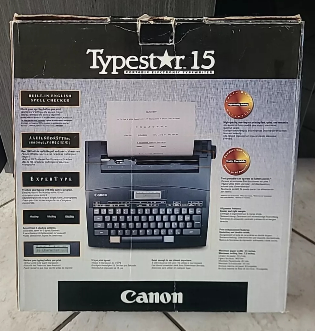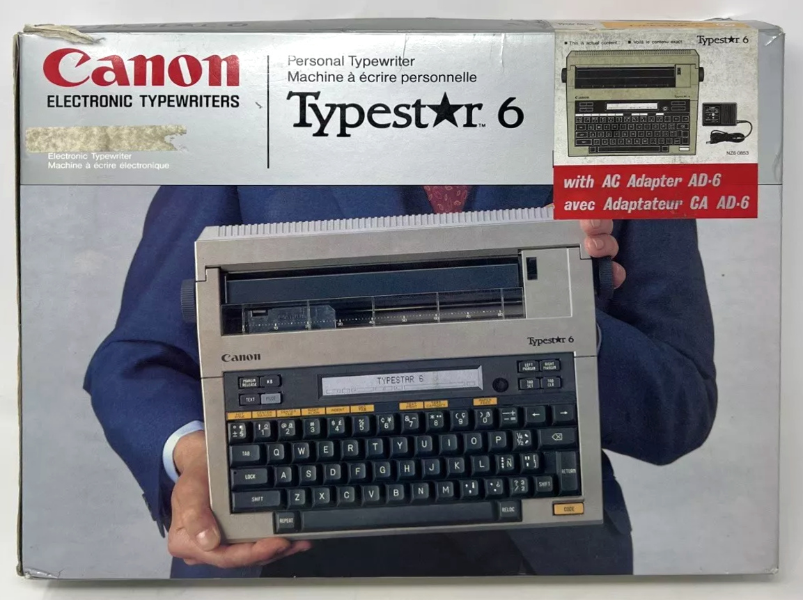 The Typestar was Canon’s series of compact personal electronic typewiters. The portable, optionally battery-powered word processor was described as a cross between a notebook computer and a typewriter. In 1985, Canon advertised it as follows: