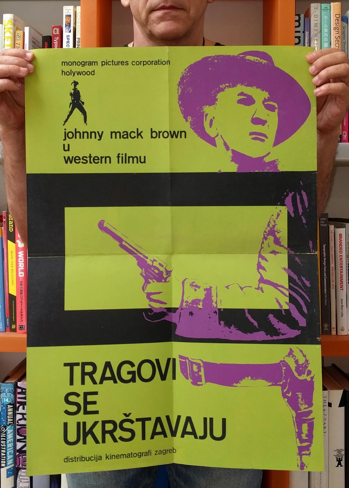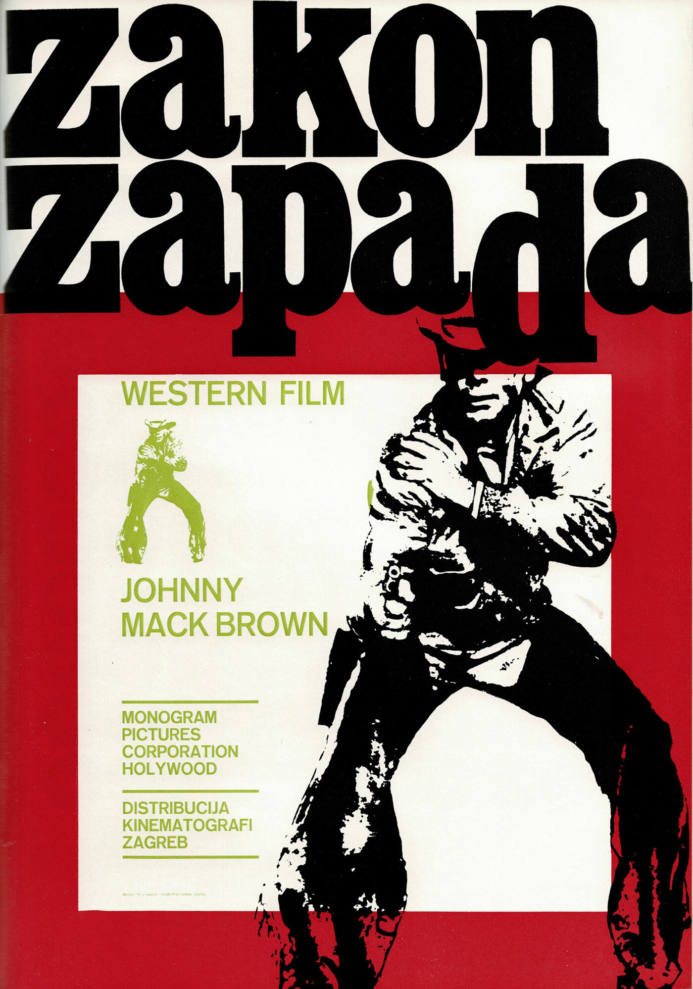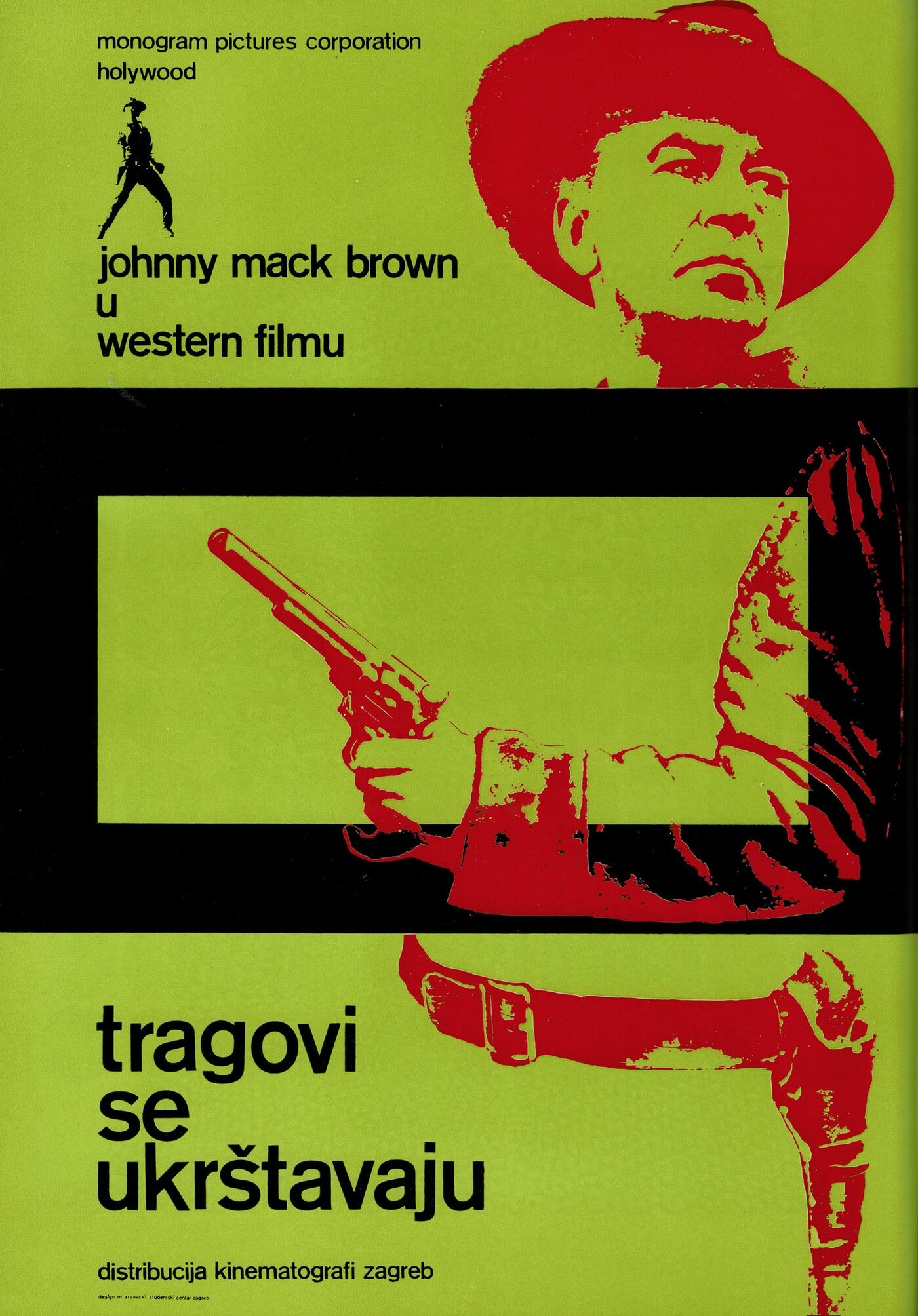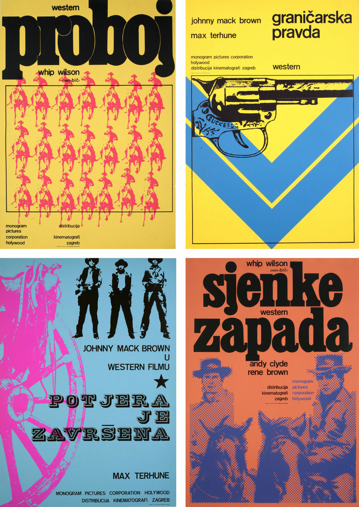 In 1966, Mihajlo Arsovski designed a series of silkscreened movie posters for local distributor Kinematografi Zagreb. It promoted a collection of late 1940s American Westerns produced by the Poverty Row studio Monogram Pictures, starring the actors Johnny Mack Brown and Whip Wilson.
