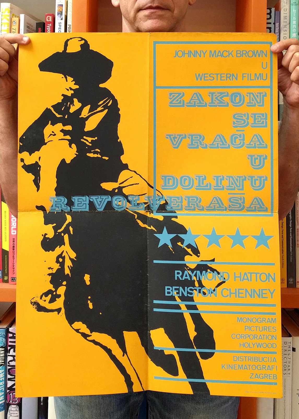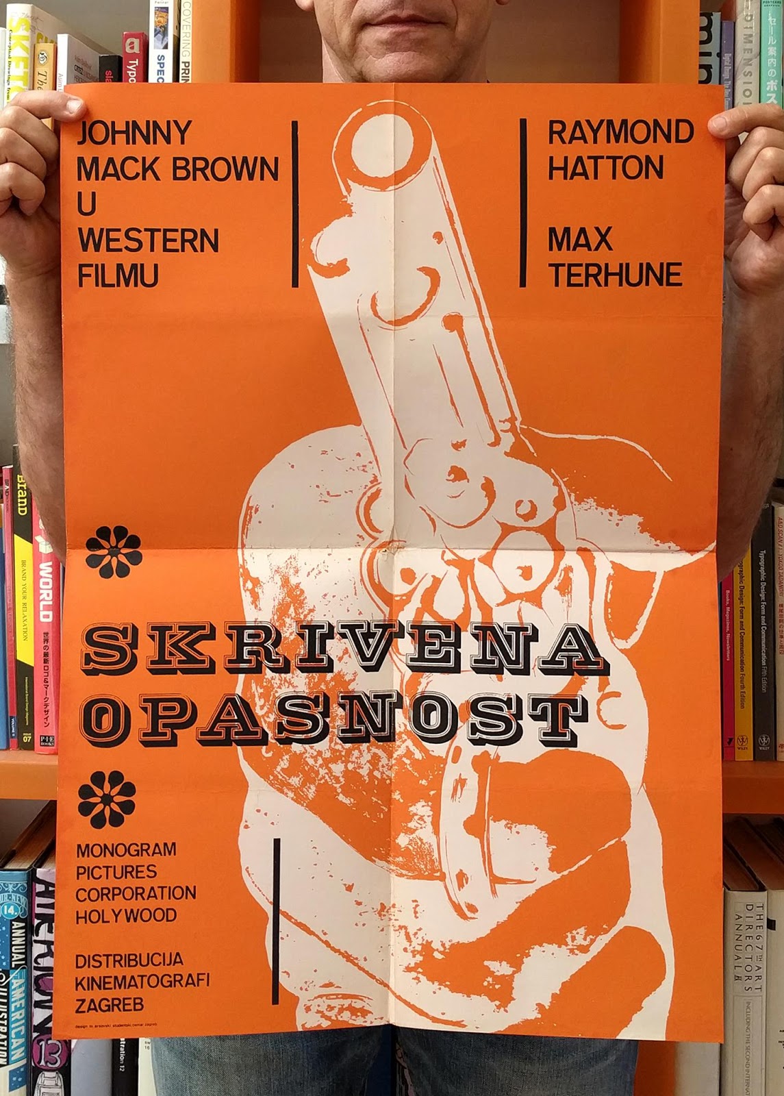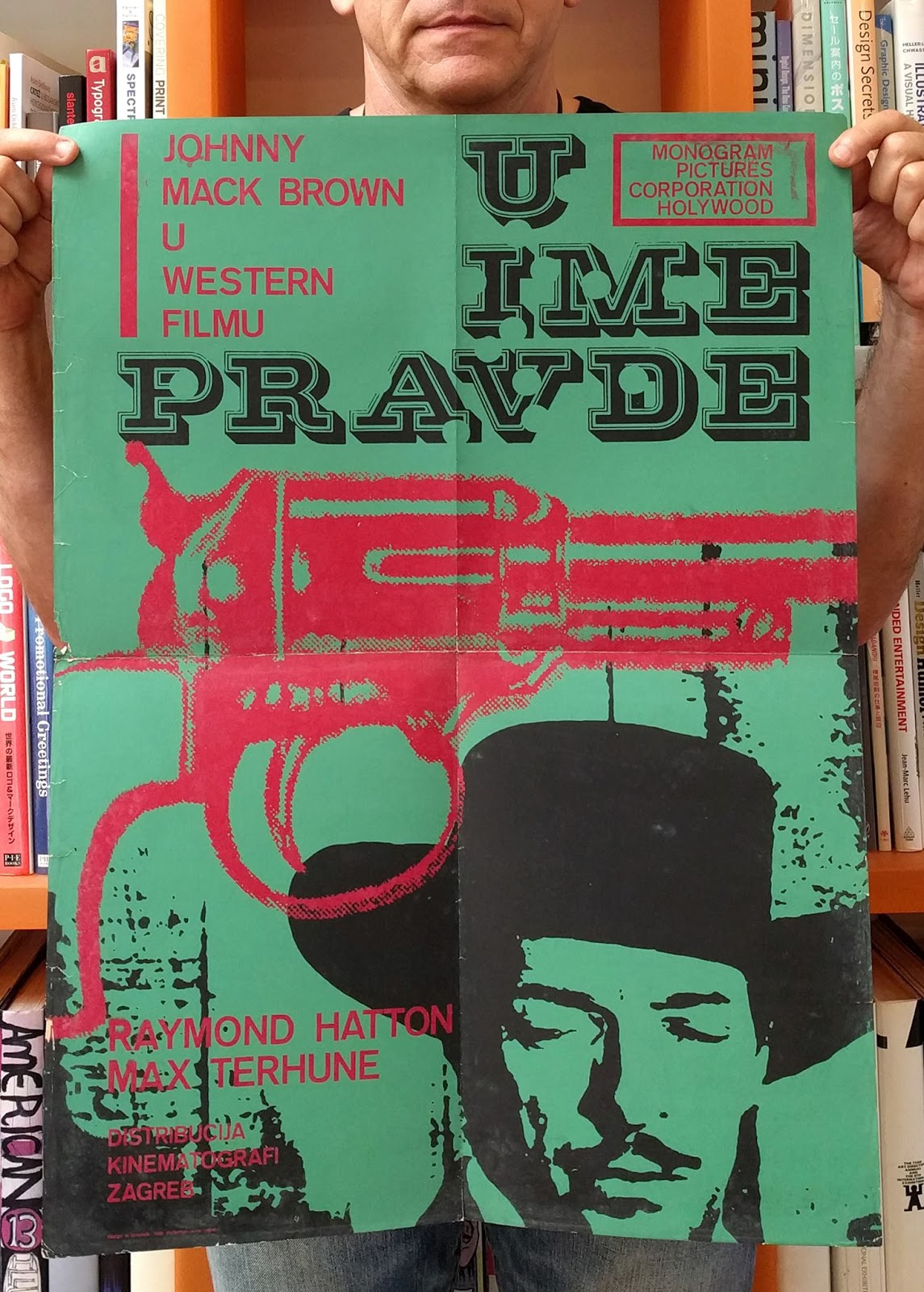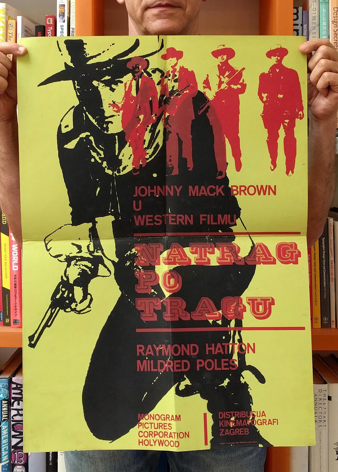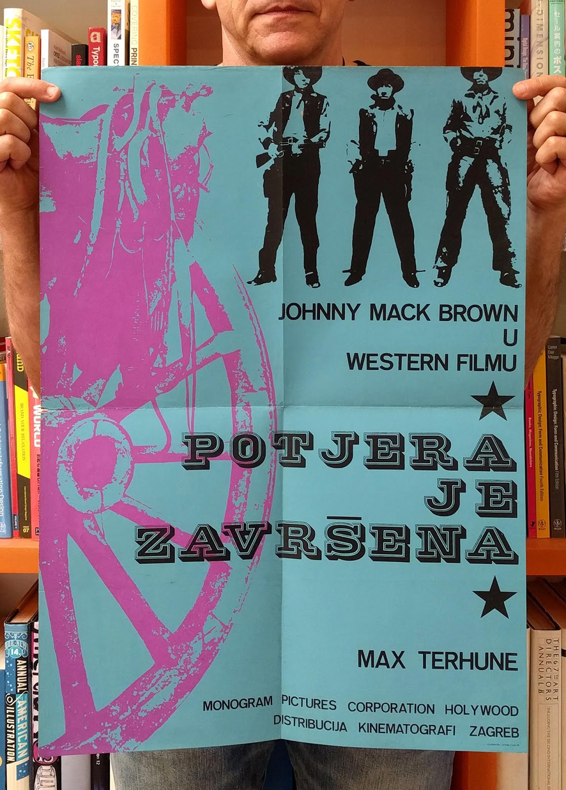 In 1966, Mihajlo Arsovski designed a series of silkscreened movie posters for local distributor Kinematografi Zagreb. It promoted a collection of late 1940s American Westerns produced by the Poverty Row studio Monogram Pictures, starring the actors Johnny Mack Brown and Whip Wilson.