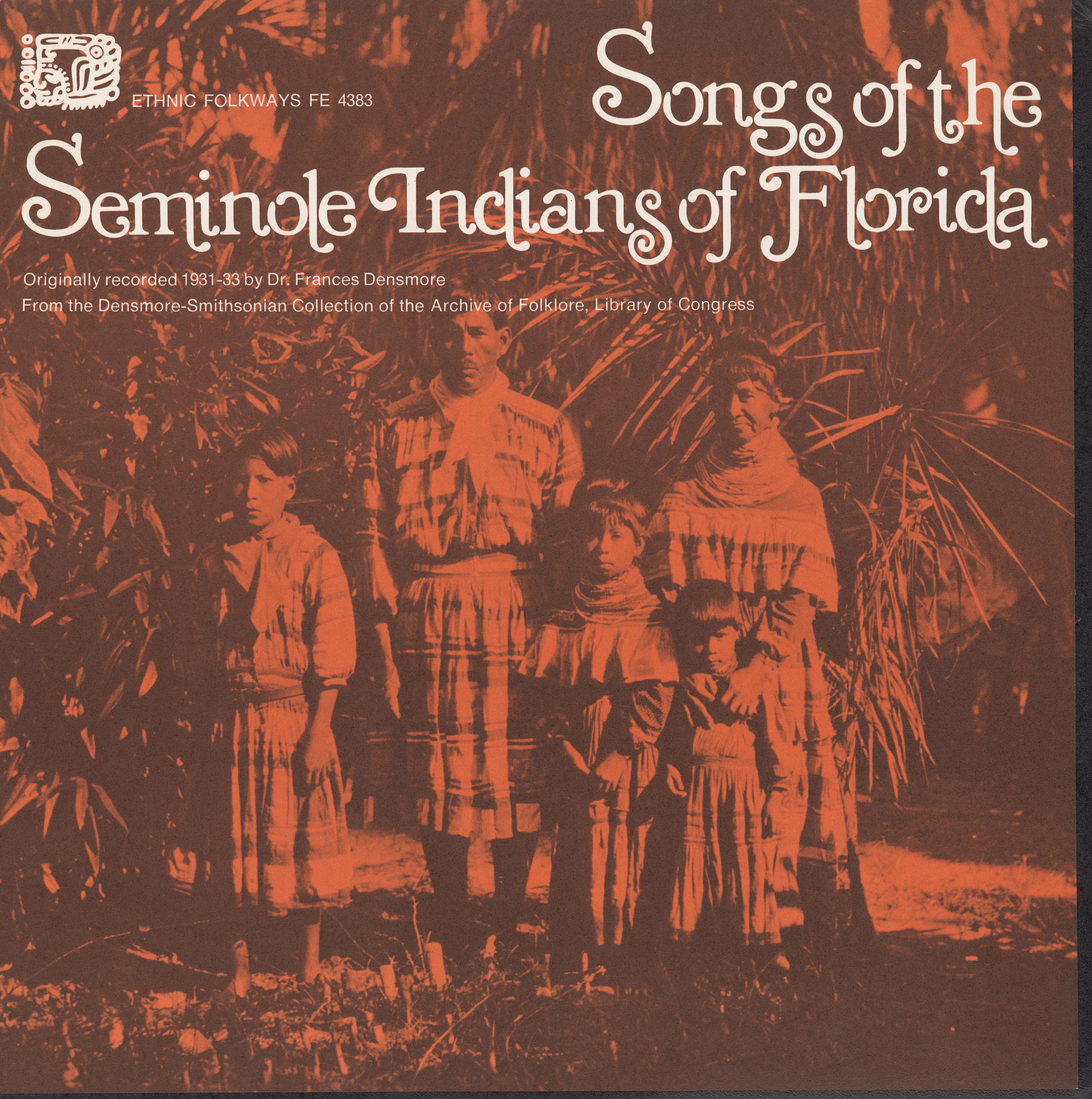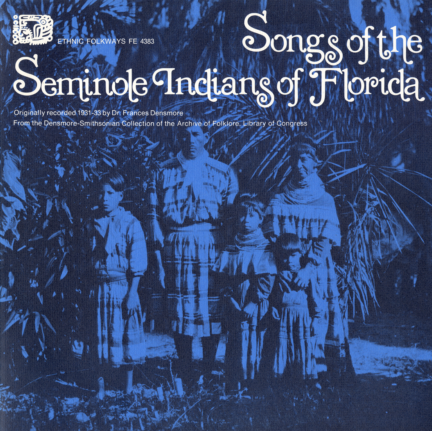 Weakened by war and disease, Native peoples of Florida banded together with members of other tribes whom Europeans had forced southward from their homelands to form the Seminoles in the 18th century. Though a large number of Seminoles were relocated to Oklahoma, many stayed in Florida, especially in the Everglades. Dr. Frances Densmore (1867–1957) collected these recordings from 1931 to 1933 on repeat visits to two reservations in Florida. Densmore spent most of her life studying and recording American Indian music, an unlikely career path for a woman at a time when it was unheard of for a proper lady even to travel to “wild” areas.