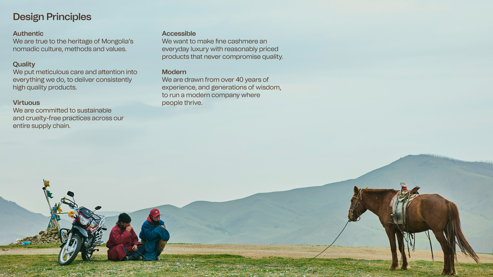They approached Mucho to help tell this unique story to the world. Established over 40 years ago, and the largest cashmere company in Mongolia they wanted to reposition themselves, and appeal more to the US, european and global marketplace as a leader within the cashmere and fashion industry.
