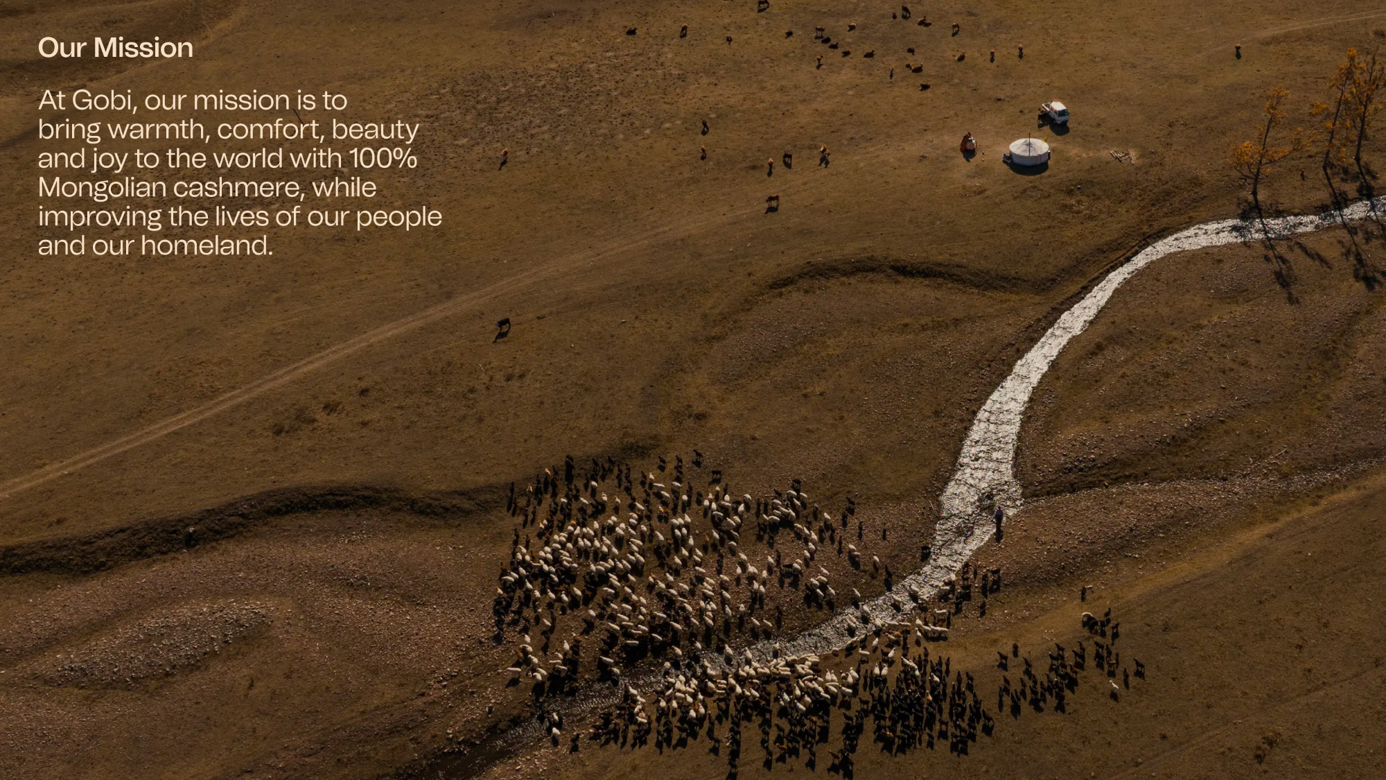 GOBI is a 100% Mongolian cashmere brand, combining centuries-old craftsmanship with modern manufacturing expertise and styles designed for comfort and longevity. From working closely with local herders to manufacturing exclusively at their one facility in Ulaanbaatar, every garment is sustainably produced in Mongolia, by Mongolians.
