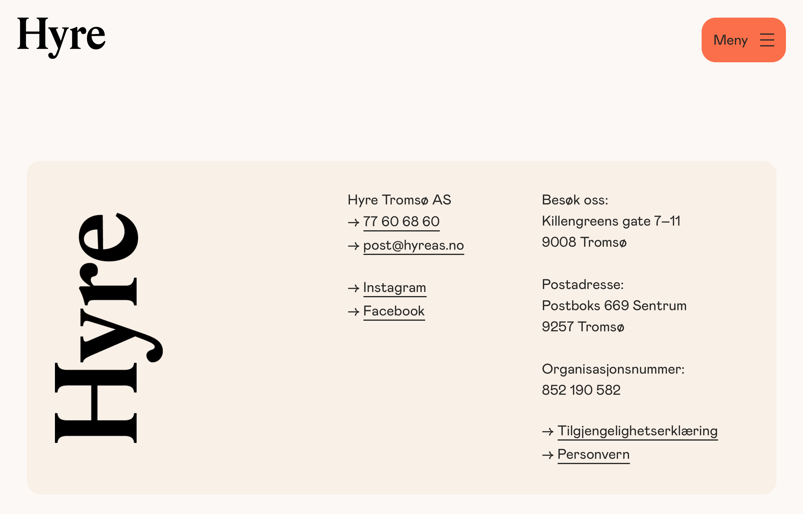 Hyre website Contributed by Store Norske Skriftkompani on Dec 2nd, 2024. Artwork published in November 2024. Source: hyreas.no License: All Rights Reserved. Tank Design Tromsø has designed a new website for Hyre Tromsø. Hyre is a company dedicated to helping people on disability benefits who have the ability to work, to find employment. The typefaces used are Mabry from Colophon and Store Norske Leif from Skriftkompani. Source: hyreas.no License: All Rights Reserved. Source: hyreas.no License: All Rights Reserved. Source: hyreas.no License: All Rights Reserved. Source: hyreas.no License: All Rights Reserved. Source: hyreas.no License: All Rights Reserved. Typefaces More about Store Norske LeifGet Store Norske LeifMore about MabryGet Mabry Formats Web (5781) Topics Services (1593) Designers/Agencies Tank Design Tromsø (2) Tagged withdisabilities (26)employment (4)websites (3716)menus (UI) (598)round corners (292)Norwegian (language) (161)big type (1754) Artwork location Norway (312) Tromsø (5) In Setstyy (Anna) (4)Zeustate (Richelle Cai) (12)Inspo (Saman Deriss Sam) (106) Post a comment Name Email – will not be published Website Your response Submit Comment More Store Norske Leif in use Real Mushrooms2025Real MushroomsContributed by Store Norske Skriftkompani India’s restaurant, Stockholm2024Famous Last WordsContributed by Store Norske Skriftkompani Magazine magazine #44, Fall/Winter 20252025eschenlauer sinicContributed by eschenlauer sinic Staff Pick Sponsor More in Services City of Cologne corporate designc. 2005Die ArtdiktatorenContributed by Nikolai Arnaudov Electrify Americac. 2020Electrify AmericaContributed by Darden Studio Staff Pick Black Heritage: Bessie Coleman stamp1995Contributed by Florian Hardwig Fiscozenc. 2021FIRM.GSContributed by FIRM.GS More in Web Fic. 2019Interesting DevelopmentPhillip NessenContributed by Phillip Nessen Typetura introduction articles2019Scott KellumContributed by Scott Kellum The Malee Scholarship2019What TheMy-Lan ThuongContributed by Sharp Type Soundbeam2024unknownContributed by Sharp Type More Fonts In Use Surface magazine logo (2011)2011Contributed by Stephen Coles Staff Pick Mille Cent Jours leaflet2025Antonin FaurelContributed by Benoît Bodhuin Staff Pick Element E2015Hansen/2Contributed by Thomas Ackermann Staff Pick Galerija Kranjčar2017BunchContributed by Richard Baird Staff Pick