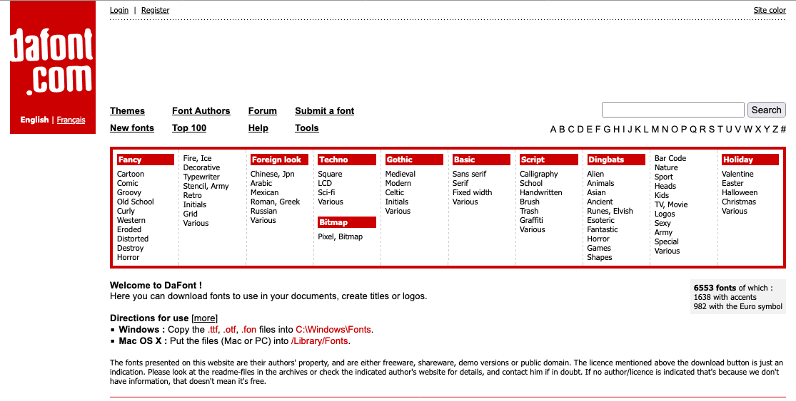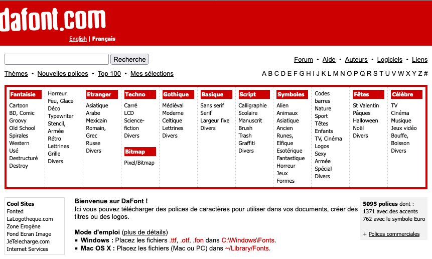 DaFont is a web platform hosting free fonts. It was launched in 2000 by Rodolphe Milan from Nîmes, France. Since June 2005, the logo uses Elliot Swonger, a freebie designed by Jason Ramirez a.k.a. Pennyzine in 2002. Initially shown in a single line on an angle, the logo was changed to a two-line version in April 2006. For the past 18 years, the logo remained unchanged.