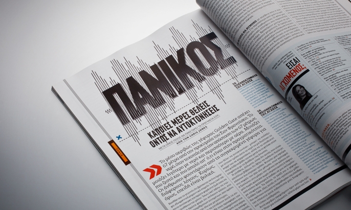 The Greek edition of Esquire magazine uses the Condensed weights of Parachute’s PF DIN Text for headlines and subheadings. It is complemented by PF Centro Sans, PF Centro Serif and Granger.