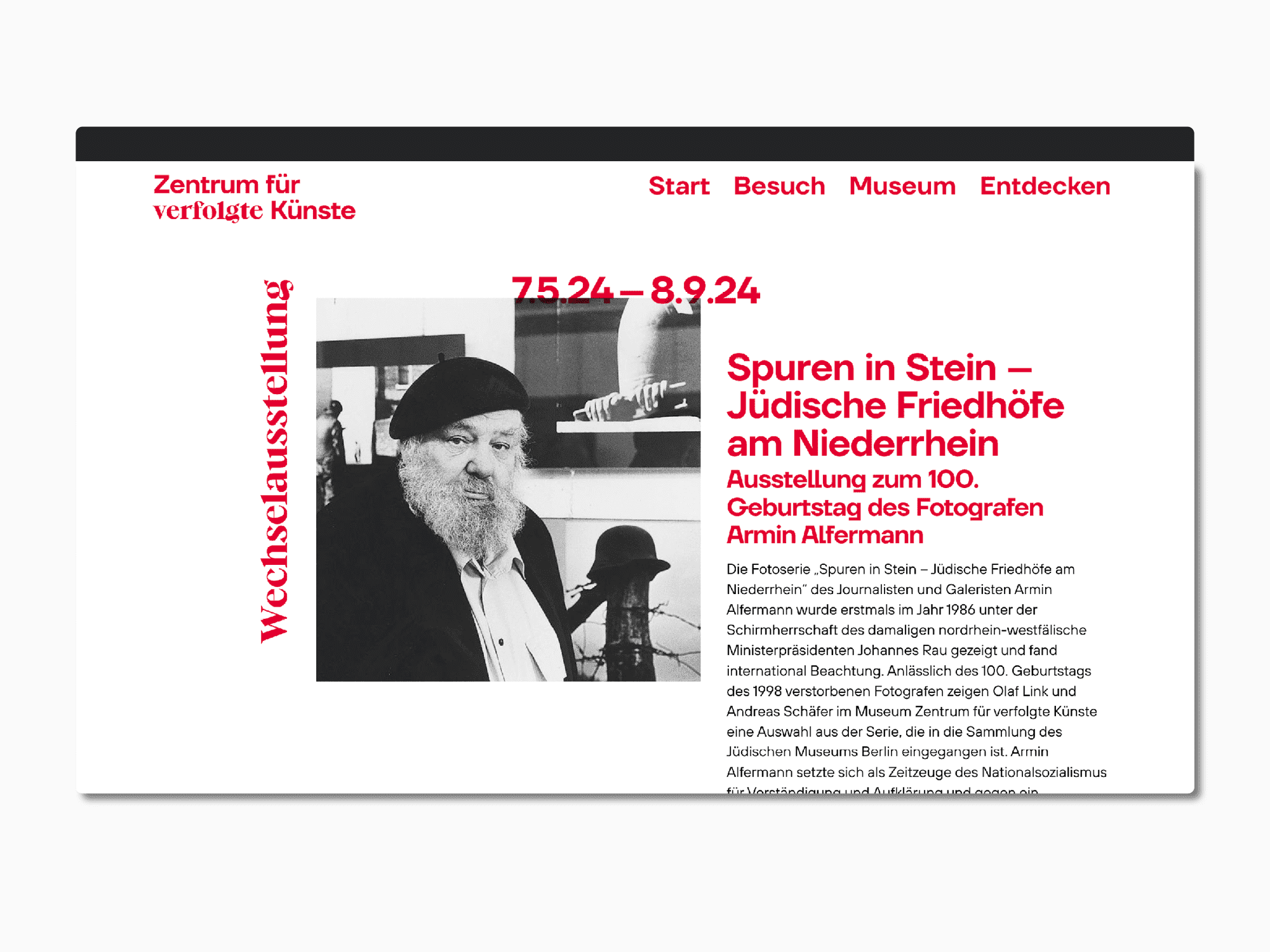 TT Firs Neue and TT Hoves Pro are part of the identity of Solingen’s Zentrum für verfolgte Künste, or Center for Persecuted Arts in English: