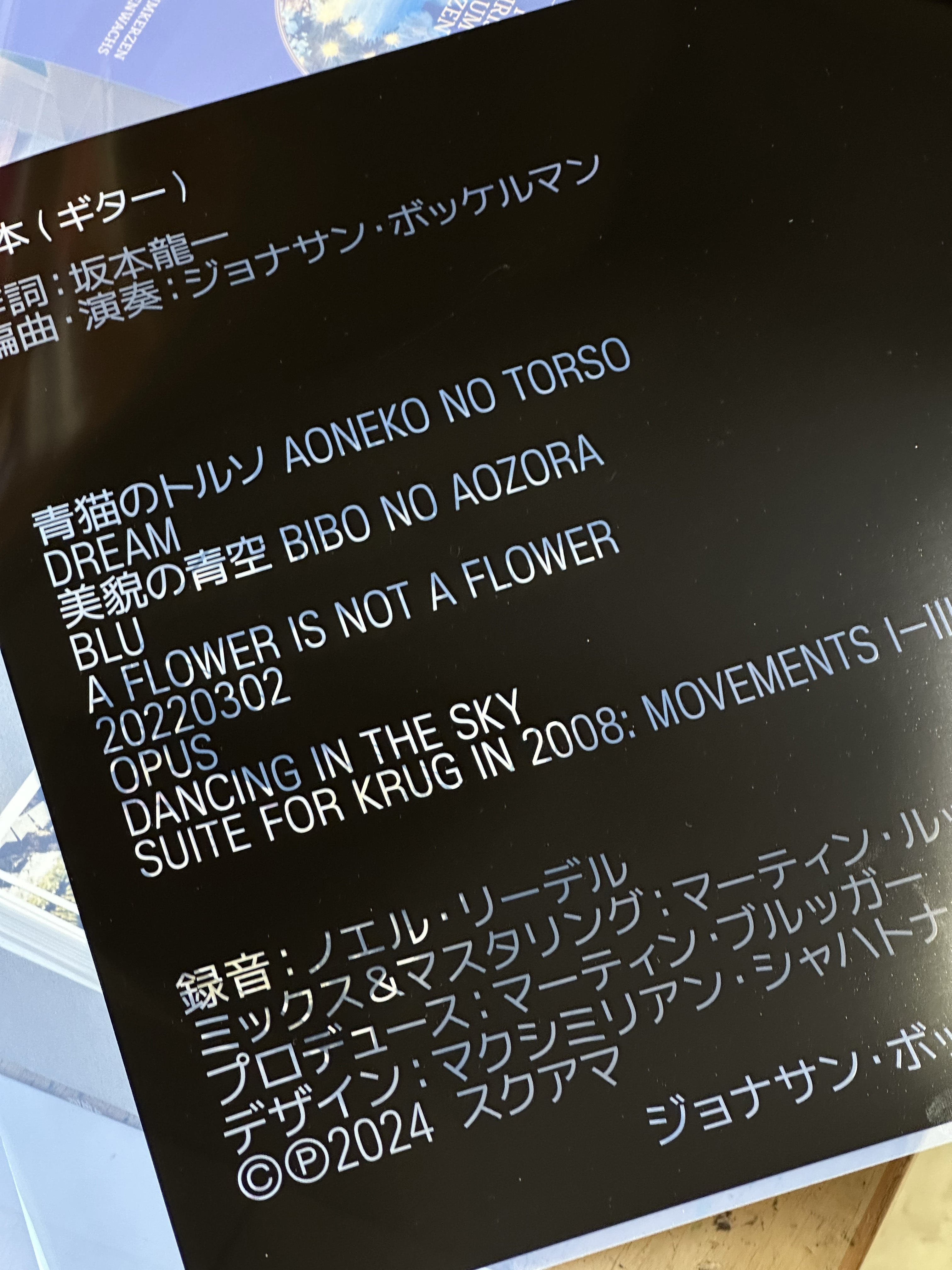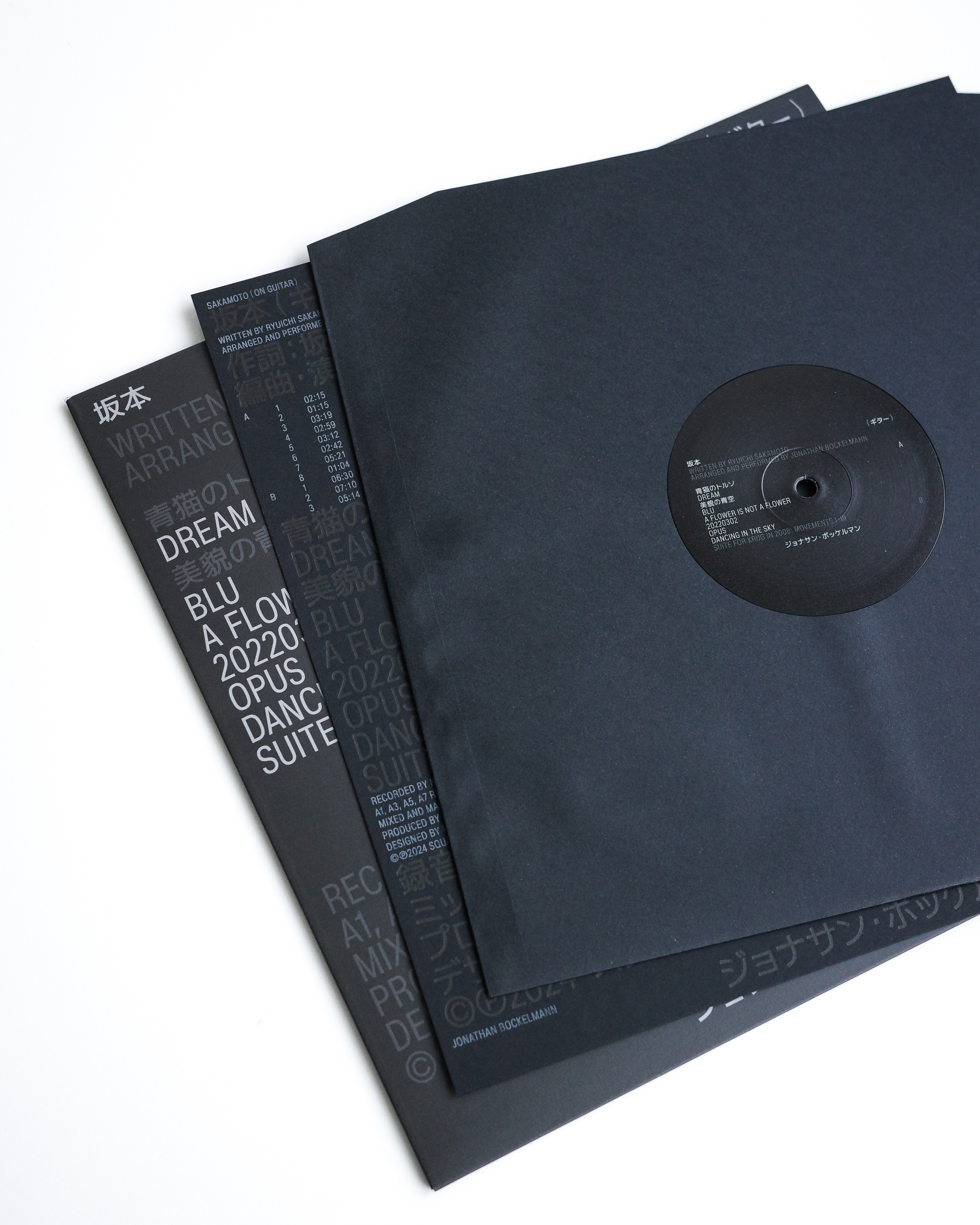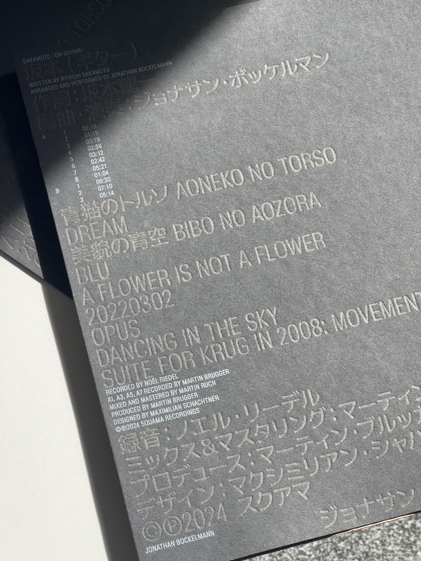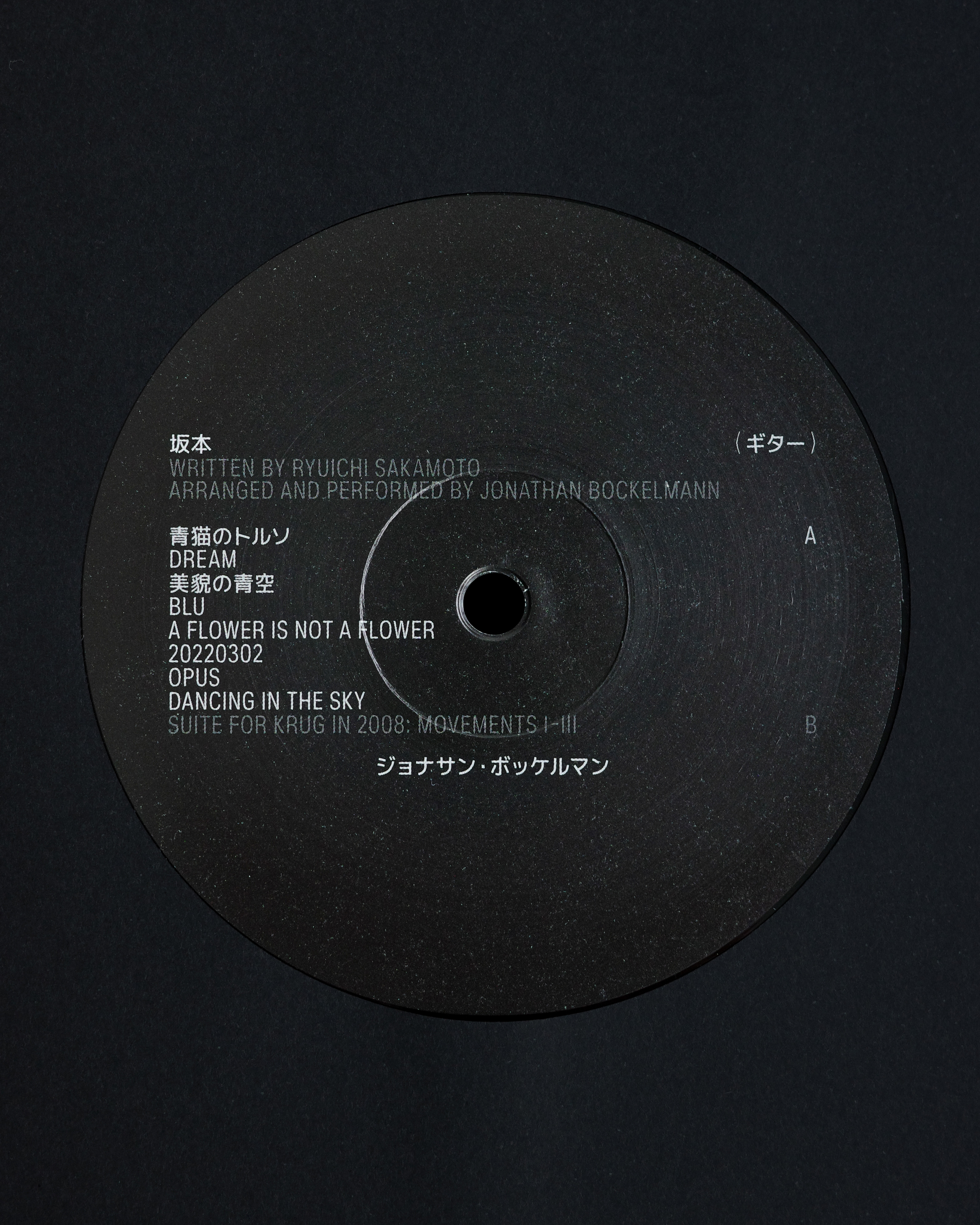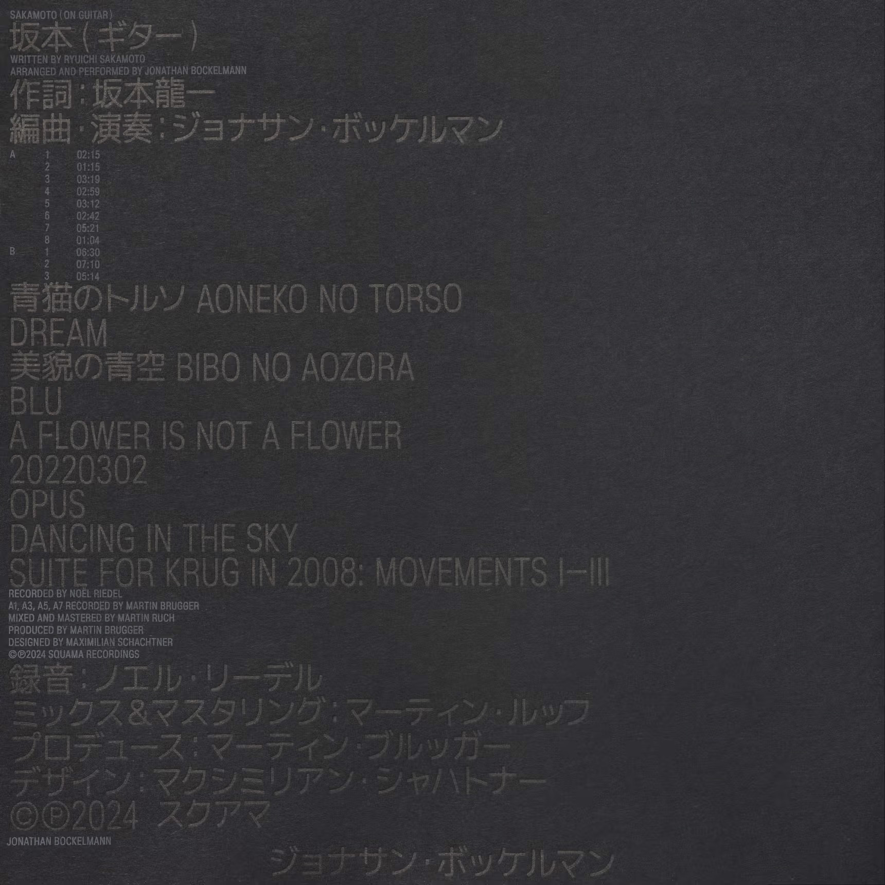 Jonathan Bockelmann is a classical guitarist and composer based in Munich who first made waves in 2023 with his debut album Childish Mind. His entry into composing were arrangements he had made of pieces by Japanese composer Ryuichi Sakamoto. Some of these have been released digitally in three editions and are now available on vinyl for the first time. The record comes in high quality packaging with an embossed art print and features both some of Sakamoto’s lesser-known works like the ‘Suite for Krug’ as well as iconic pieces like ‘Bibo No Aozora’.