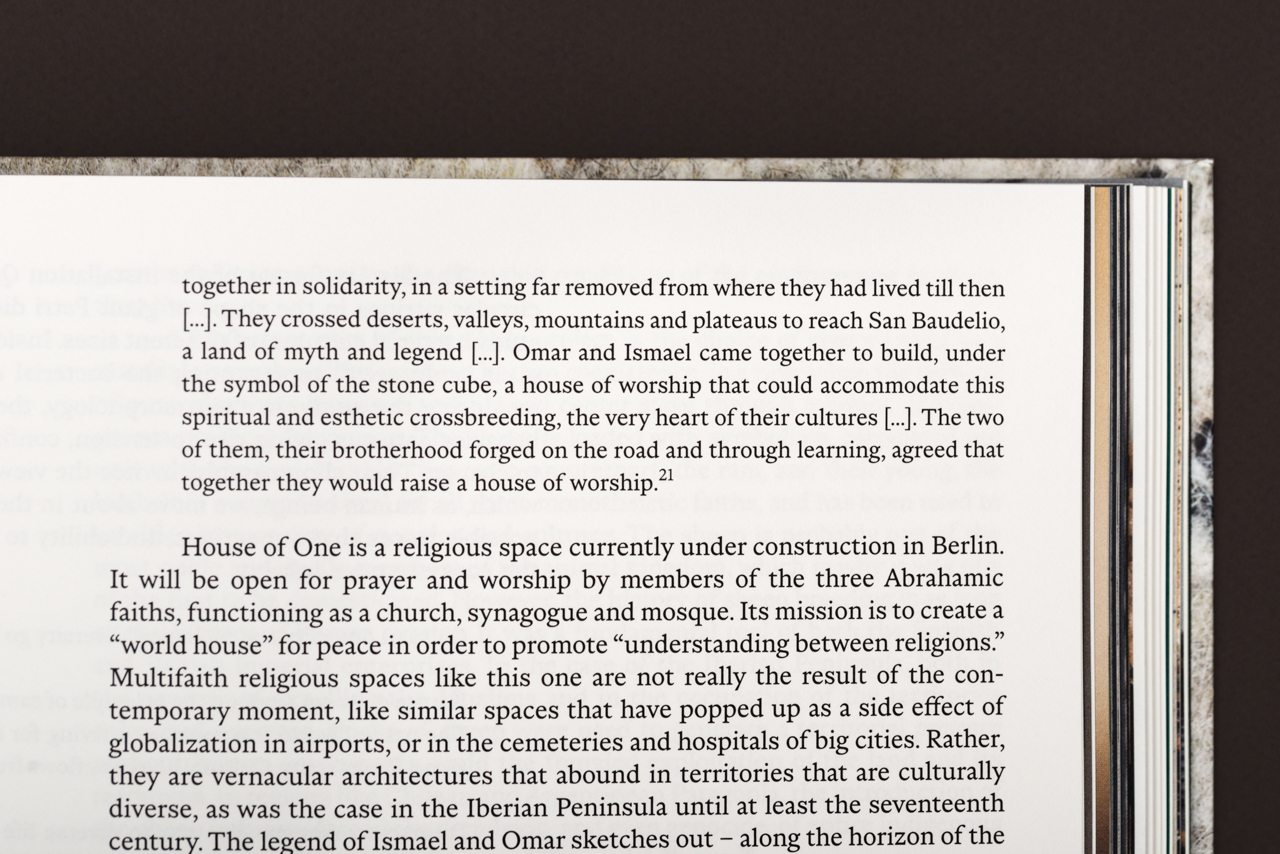 Typeset in ABC Marist, a typeface inspired by other designs in the Old Style genre that have been reinterpreted in different times in history, like Jenson and Golden Type. Besides its characteristic wide uppercase proportions, prominent serifs and high legibility, it felt appropriate to choose a contemporary revision of a type style from the past. Small texts like image captions are set in ABC Monument Grotesk.