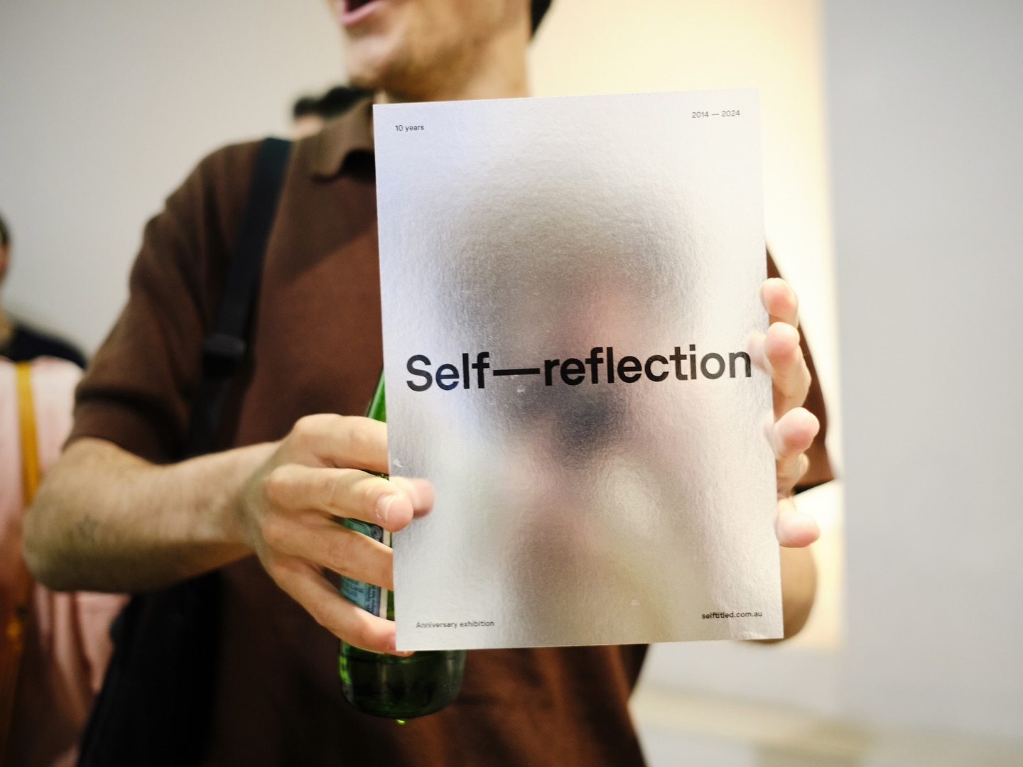 Graphic design studio Self-titled held a one-night exhibition to celebrate ten years of Self-titled, titled Self—reflection. The typeface used is Store Norske Ja from Skriftkompani.