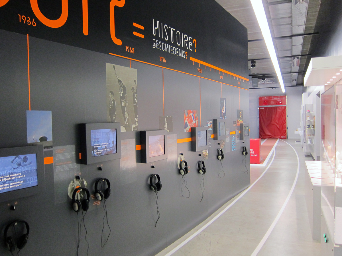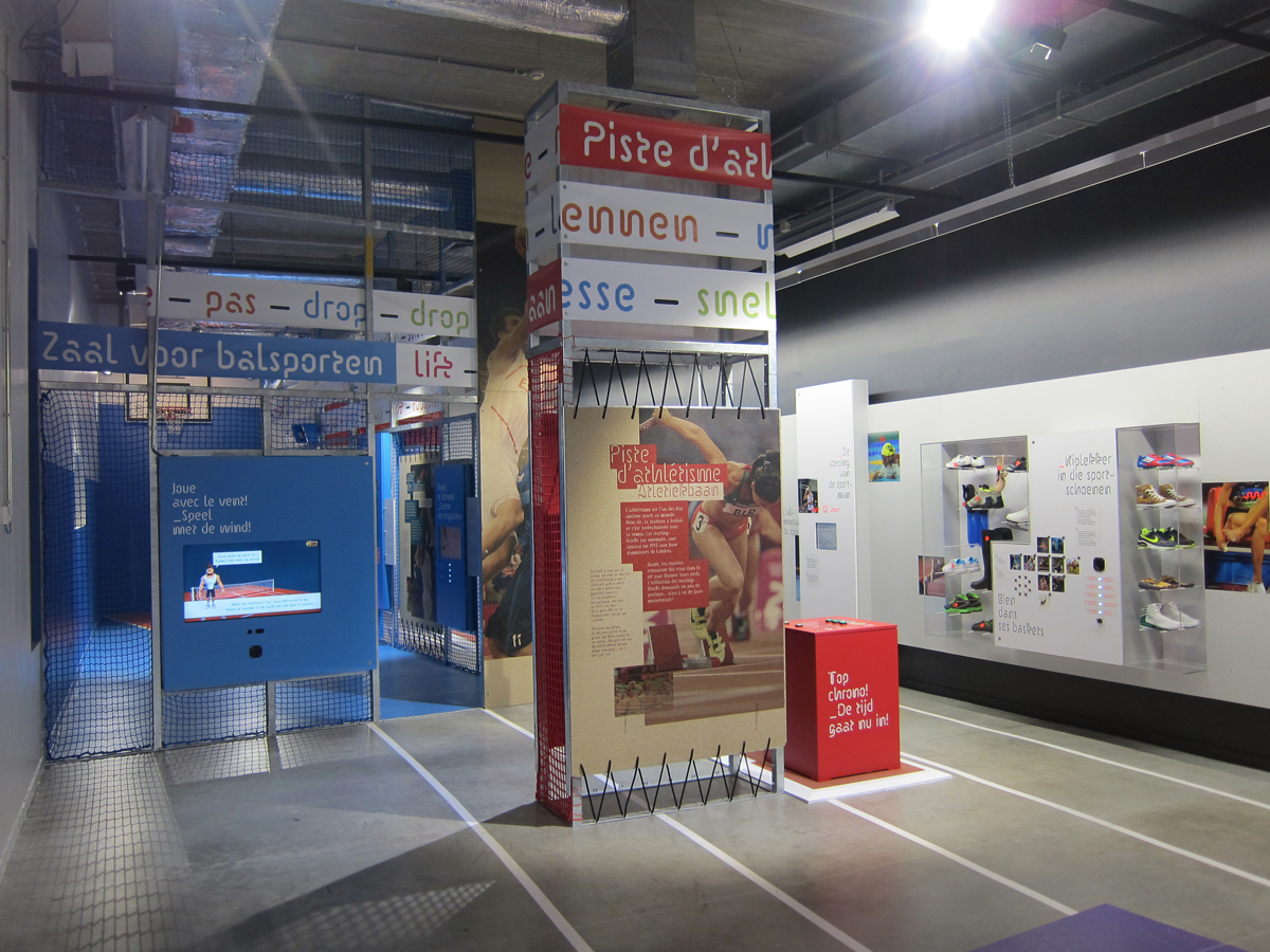 Exhibition about sport with a very nice use of Pipo, in thePass science museum in Frameries, Belgium, by duo Éric Verrier (scenography) and Bruno Souêtre (graphic design).