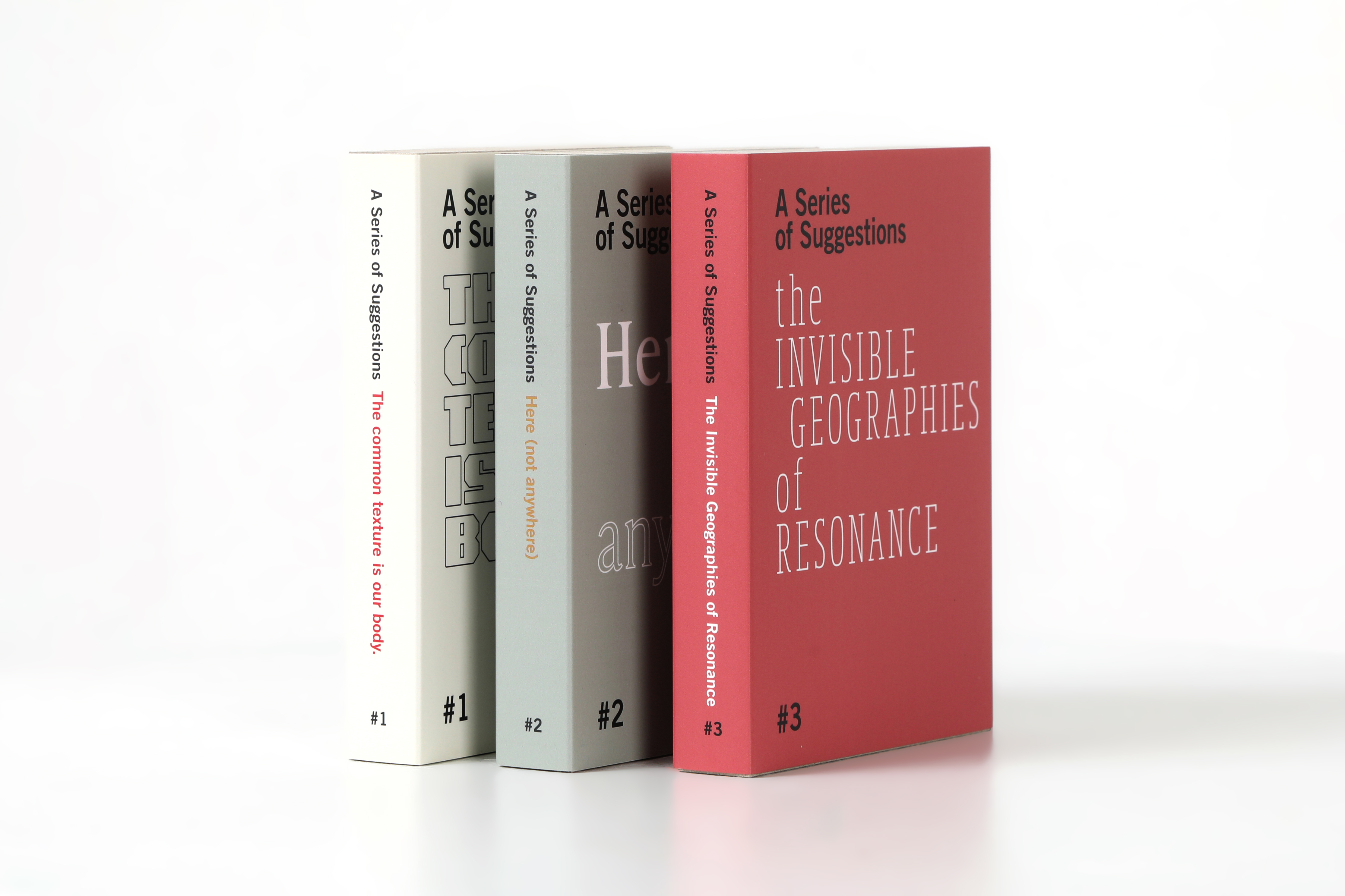 Each edition of A Series of Suggestions gives an insight into a particular collaboration at the base of the PhD project The Sound of a Shared Intimacy by Leonie Persyn and exhibits a constant dialogue between practice and discourse; between researcher and artist. With this format Persyn explored how suggestions can function as a possible research output and how they have the potential to reveal the collaborative thinking practice behind academic research and share it with an audience. A Series of Suggestions celebrates the fact that suggestions are never clear-cut answers or solutions for a problem and incorporates how they recap what has already been done while forecasting undiscovered paths in the act of unfolding.