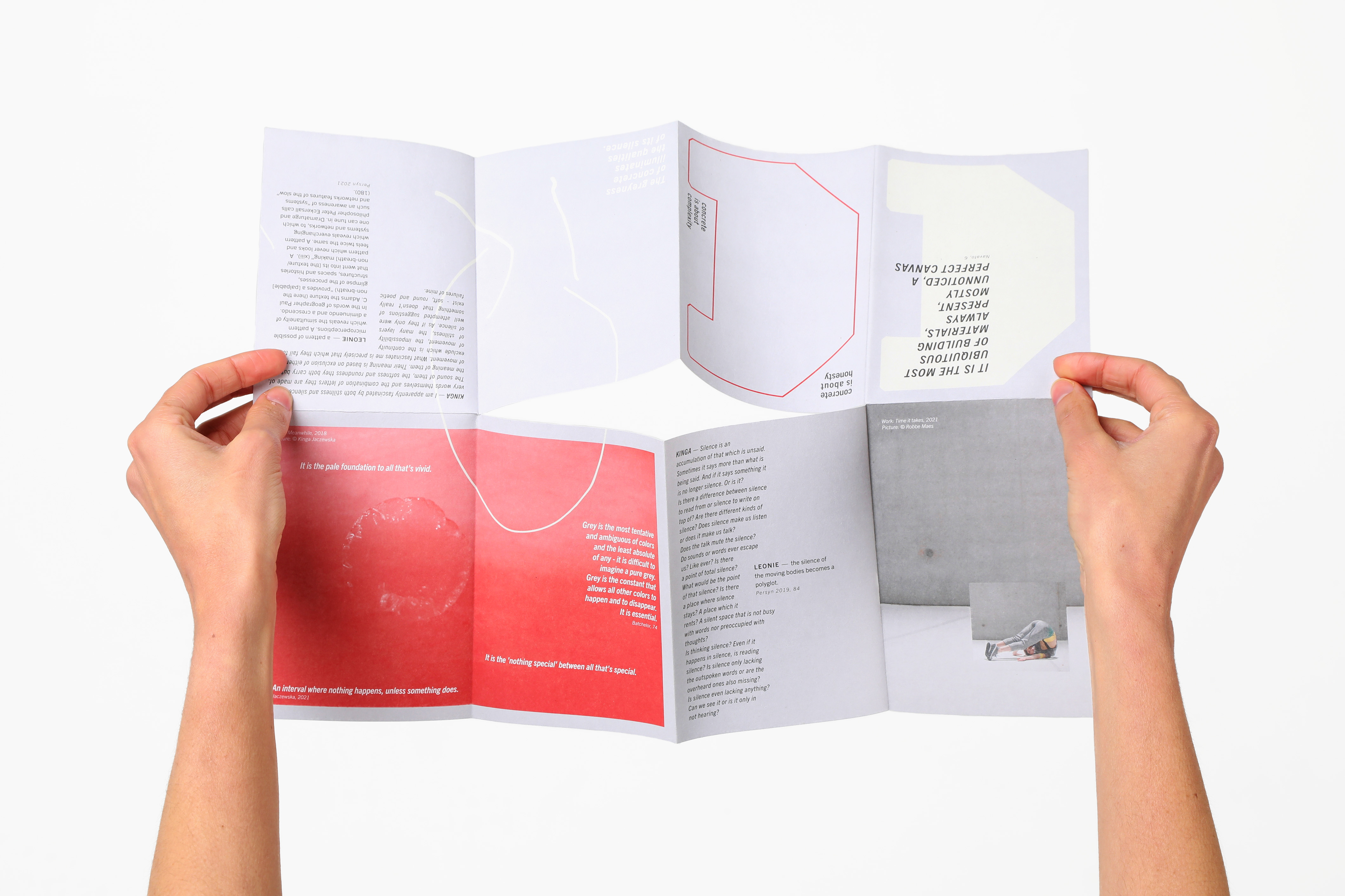 Since A Series of Suggestions is part of Leonie Persyn’s doctoral research The Sound of a Shared Intimacy at Ghent University, the typographic design needed to balance the demands of academic readability with the appeal of a visually engaging, story-driven format. The result is a typographic system incorporating different fonts, arranged within a rigid yet playful grid that invites readers to explore, unfold, and immerse themselves in the layered narratives within.
