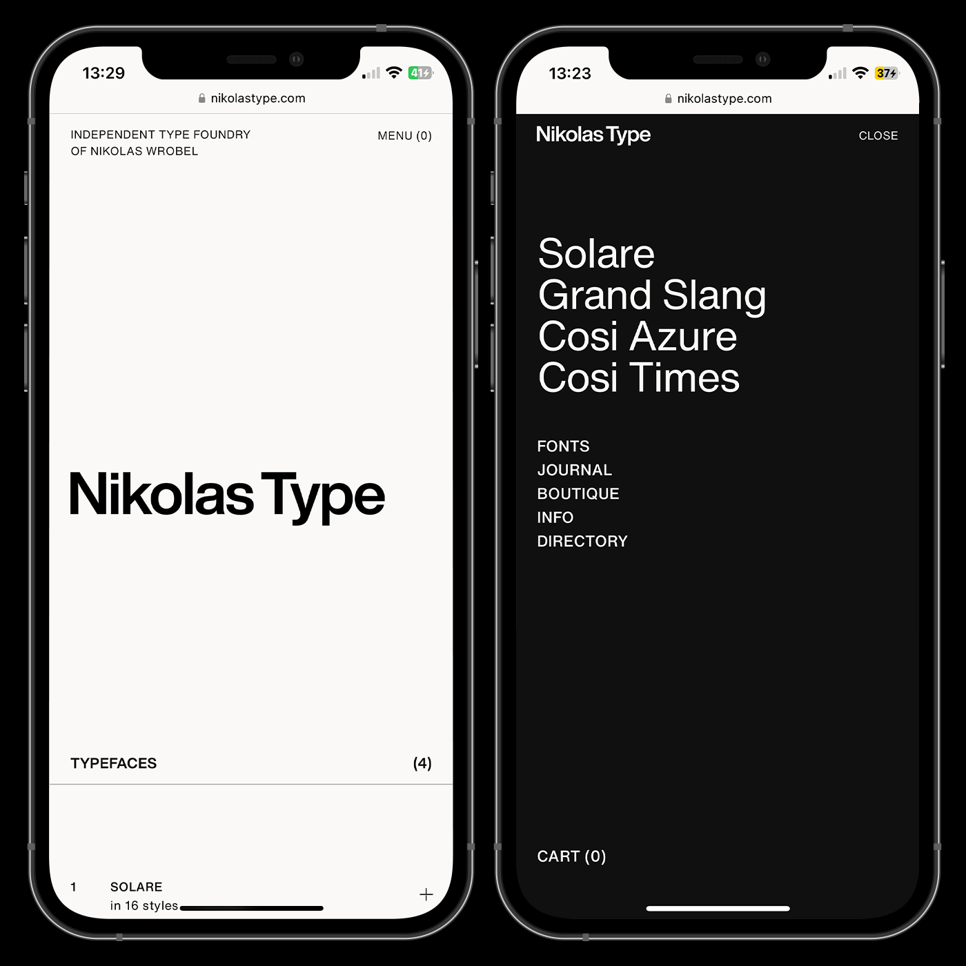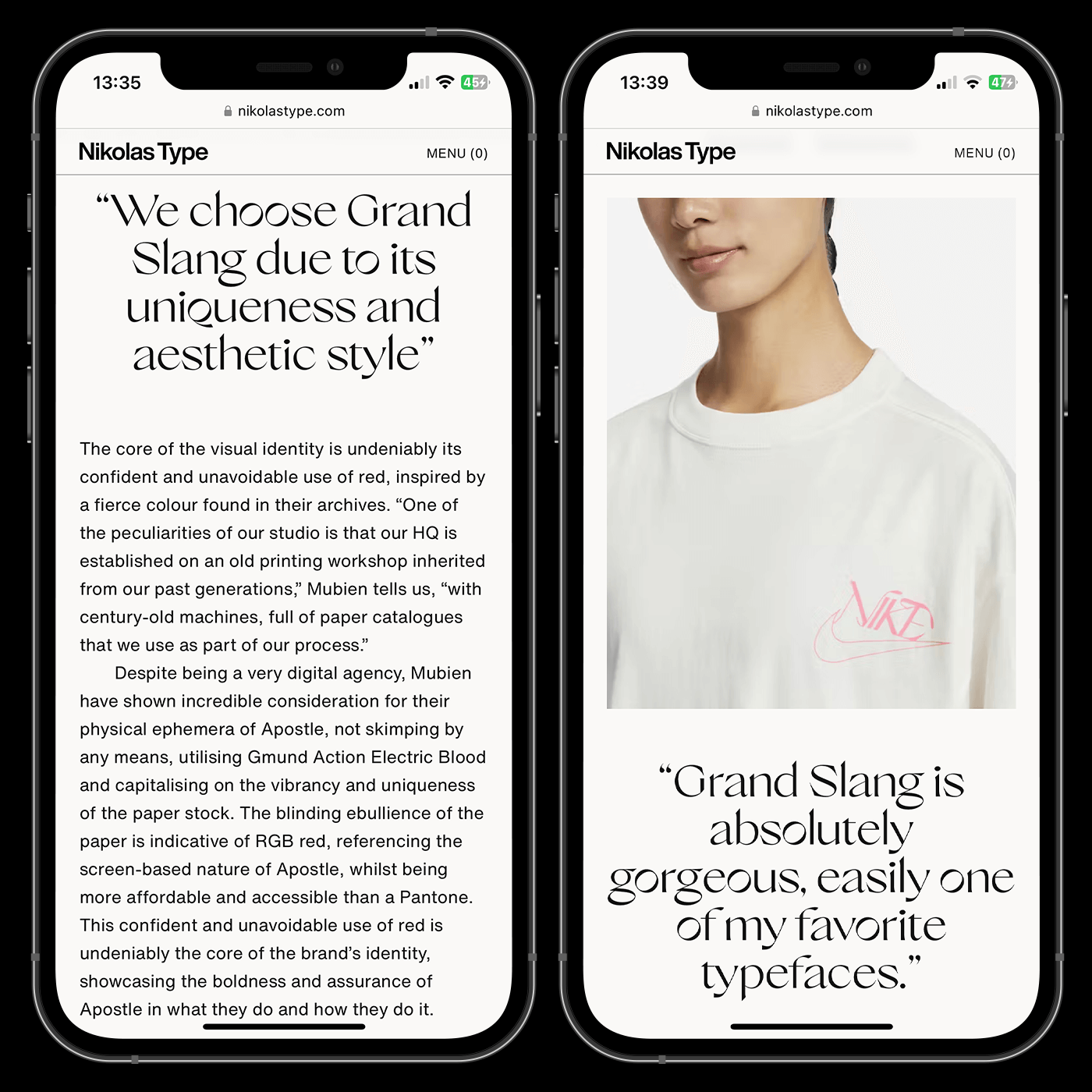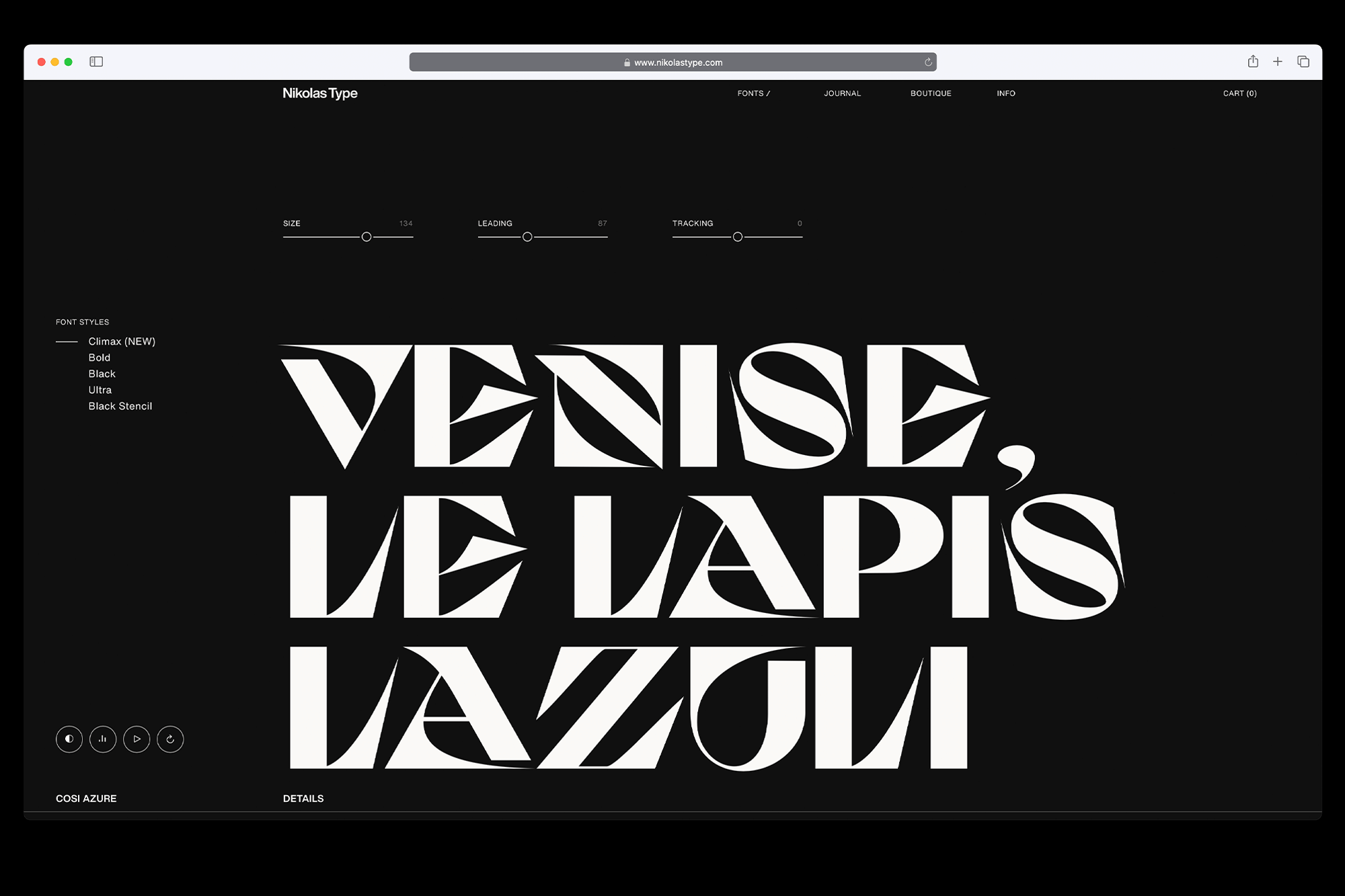 The blog section, called Journal, offers a curated collection of content, including examples of typefaces in use, articles, interviews with creators, and more. Limited-edition foundry merchandise is offered in the Boutique; the Directory section showcases clients / uses of Nikolas Type typefaces.