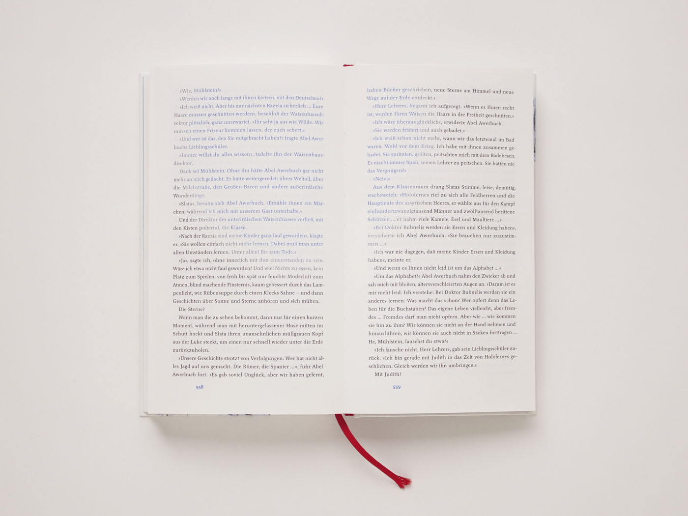 He cleverly used the advantages of FM screening for a subtle gradient effect: Across the book, several blue blots interfere with the otherwise black text and bring a pleasing vitality to the page.