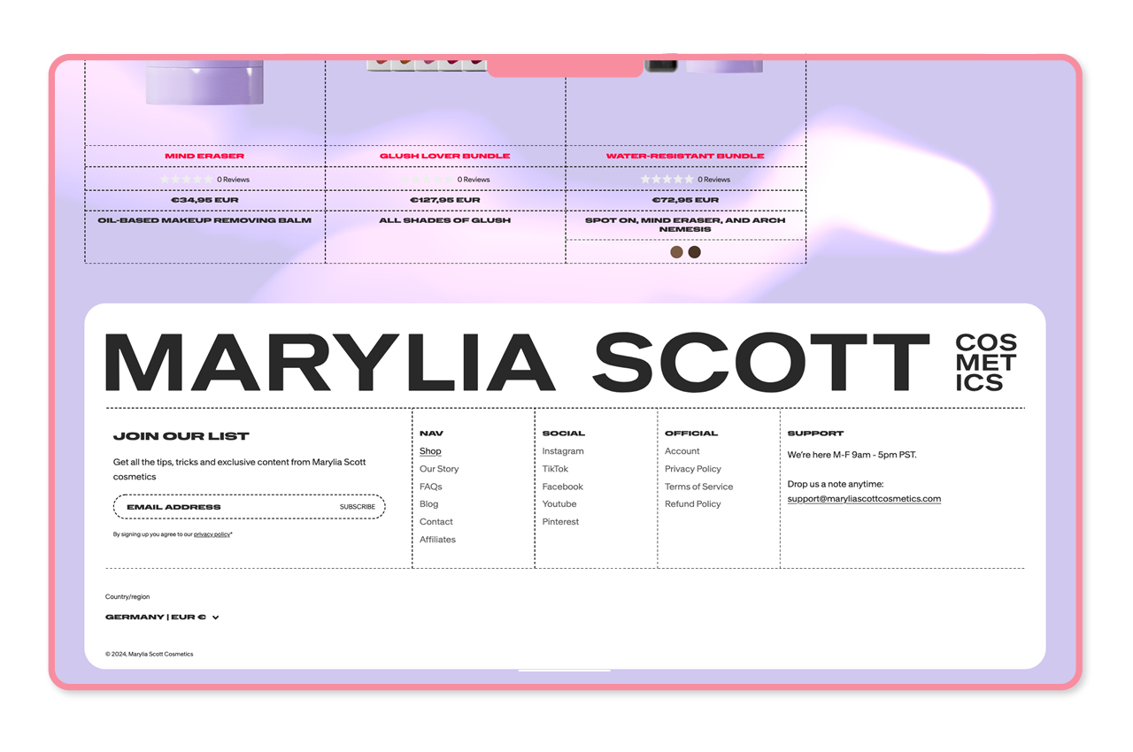 Marylia Scott is an influencer who launched her eponymous cosmetics brand in 2024. Her first products were her signature waterproof faux freckles and brow gel. Scott states in one of her videos that she was an art director “in a previous life” and that she rebranded her whole company by herself.