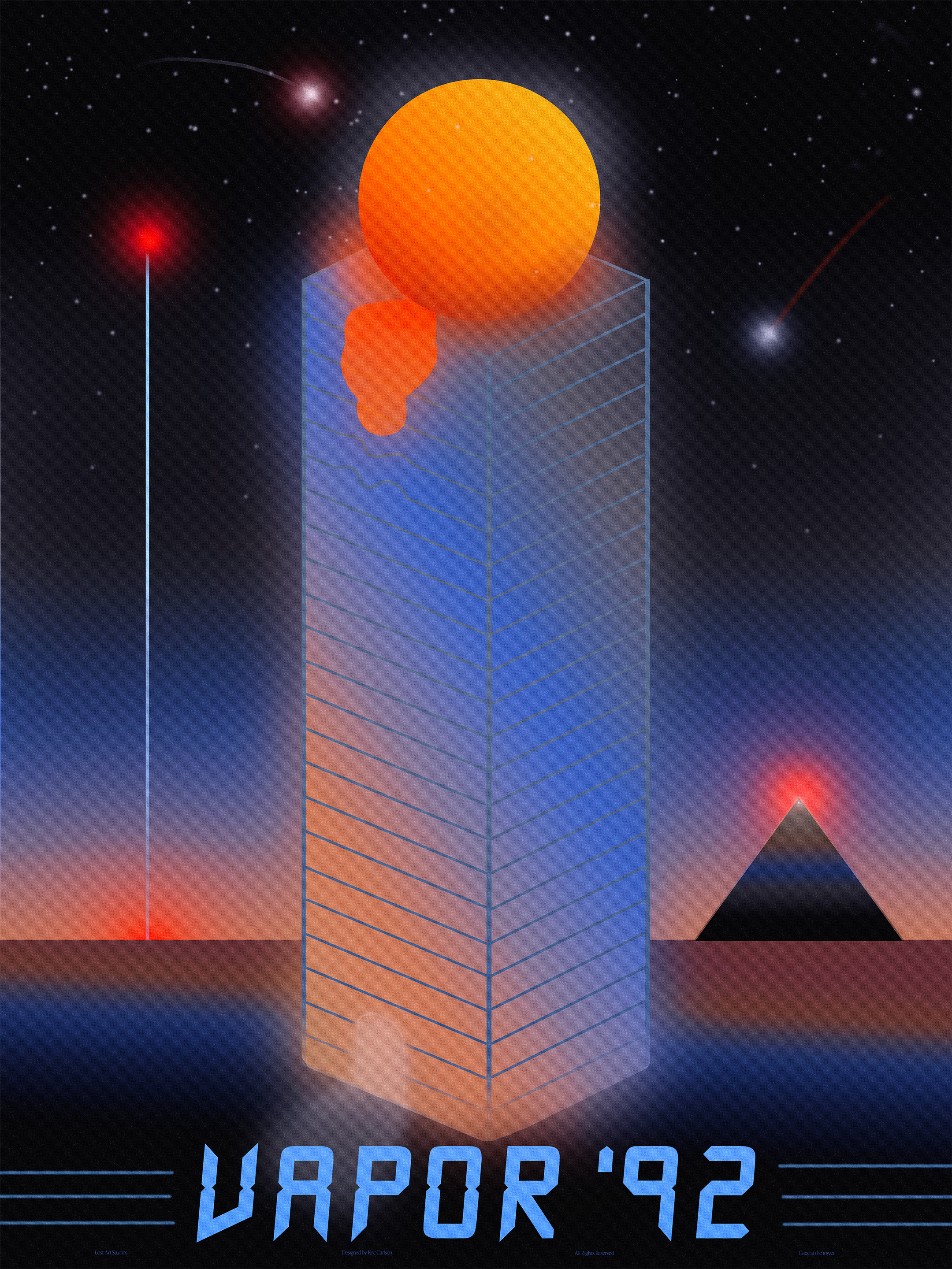 Vapor ’92 poster Contributed by Eric Carlson on Dec 21st, 2024. Artwork published in 2024. Source: lostartvintageathletics.com Eric Carlson. License: All Rights Reserved. This poster design uses the Watch Outline font (filled in in this case) to pair with the retro Vaporwave design. The neon colors and new age atmosphere of the design evokes the strange psychedelia of vaporwave and cyberpunk designs. The poster is available from Lost Art Vintage Athletics. Typefaces More about Watch OutlineGet Watch Outline Formats Posters/Flyers (5879) Topics Art (4789) Designers/Agencies Eric Carlson (5) Tagged withposters (1447)vaporwave (7)cyberpunk (13)retro-futuristic (36)1980s style (94)self-initiated projects (441)gradients (850)night (33)sky (23)stars (374)pyramids (6)comets (3)spheres/globes (78) Artwork location United States (10074) California (316) San Diego (35) In SetsSolidified (Florian Hardwig) (23) Post a comment Name Email – will not be published Website Your response Submit Comment More in Art Stedelijk Museum identity (2012)2012Mevis & Van DeursenContributed by Andreas Kofler Blog L’atlante di e meraviglie poster2022Panama Papers OfficeContributed by Virgile Flores Homecoming by Warren King2025Mark BrautigamContributed by Hrvoje Živčić Sponsor More in Posters/Flyers Teatro Nacional Dona Maria II2019R2 DesignContributed by Feliciano Type Staff Pick Campus by Google2017MultiAdaptorContributed by Richard Baird Staff Pick “Love Your Mother” poster1973Doyle Dane BernbachJerry RotondiContributed by Nick Sherman Romanian Design Week Concept Storec. 2022Claudia DraghiaSebastian PrenRadu ManeliciContributed by Claudia Draghia More Fonts In Use Glasgow Garland Galt Talk poster2013Ken Garland & AssociatesAdrian ShaughnessyUnit EditionsContributed by Stephen Coles Staff Pick Salt Cathedral ft. Lee “Scratch” Perry album art2019Jose BerrioContributed by Jose Berrio Staff Pick Escales découvertesc. 2016CivilitiJulie MargotVlanContributed by Typotheque Staff Pick Indivisa2022FootballcoContributed by Lily Ludford Staff Pick Friz Quadrata specimen poster for VGC1966Herb LubalinShelley SacksContributed by Stephen Coles Staff Pick Bricktown Sound Dance Party2018Crystal ZapataContributed by Benoît Bodhuin Staff Pick Neue Nationalgalerie reopening campaign2021Stan HemaPeer HempelContributed by Stan Hema Staff Pick Artrosil B1 adc. 1955Franco GrignaniContributed by Stephen Coles Staff Pick